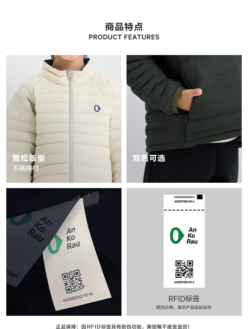 【 】Kids Lightweight Reversible Thin down Jacket for Outdoor Use in Winter | Ankorau an Gao Ruo