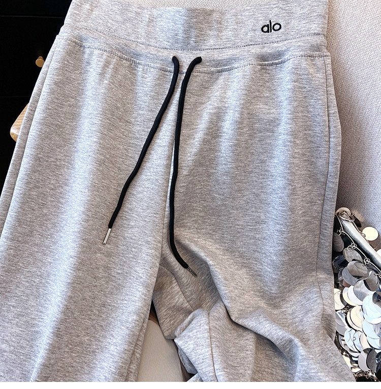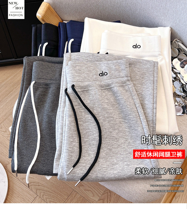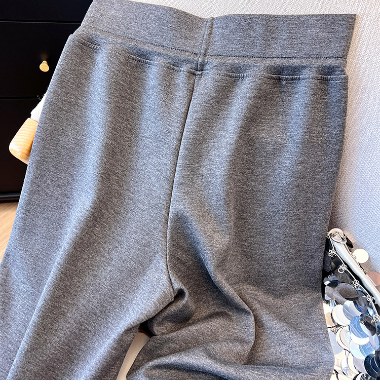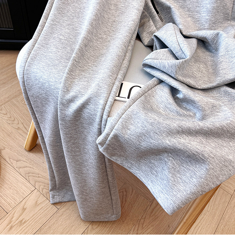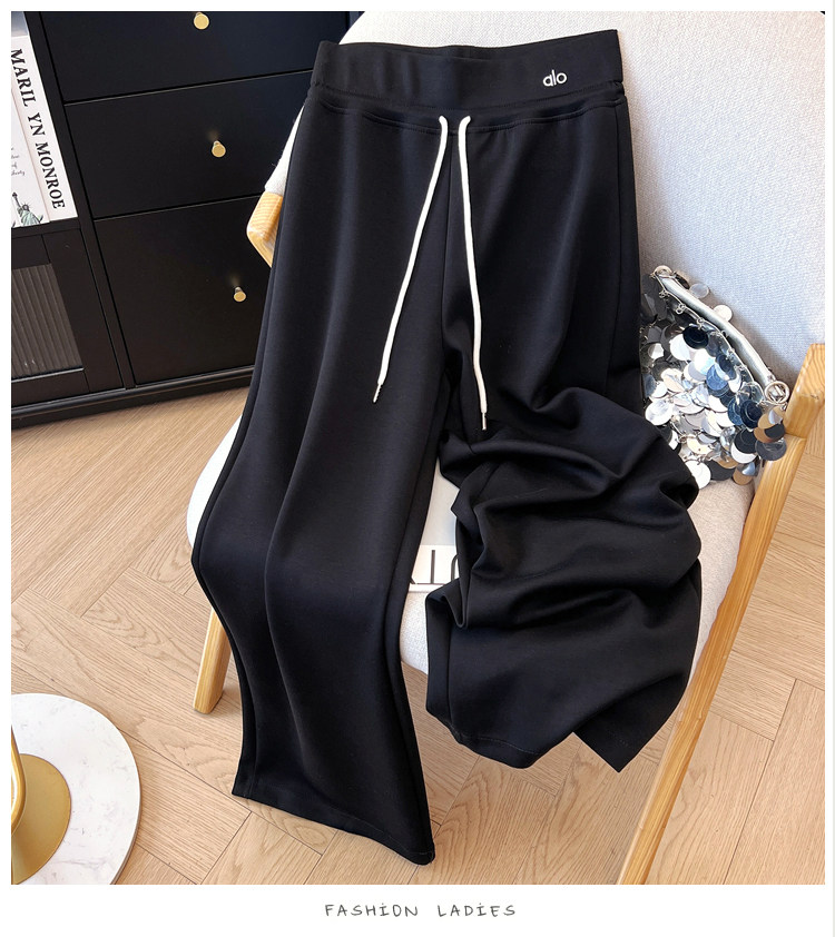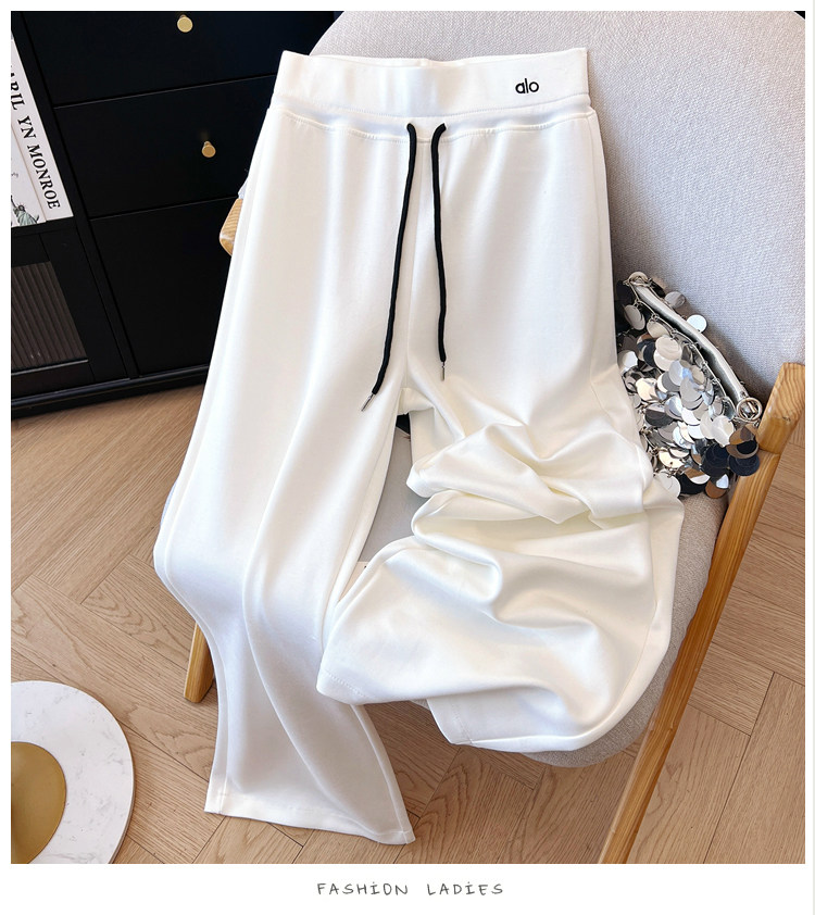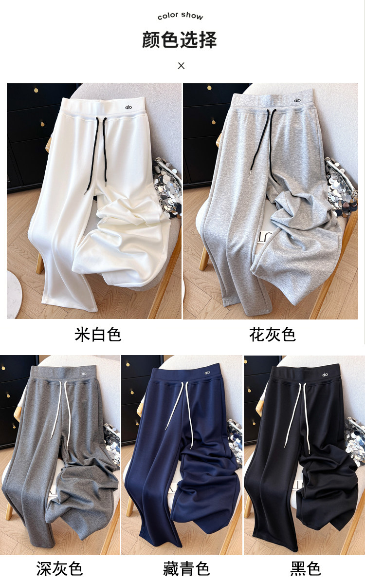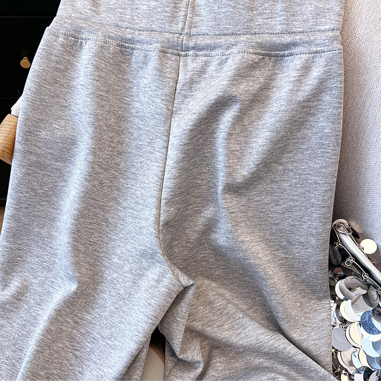 150cm Petite Gray American-Style Sweatpants for Women, Spring and Autumn, High-Waisted, Drawstring, Drapey, Embroidered, Straight-Leg Wide-Leg Pants, Size XS