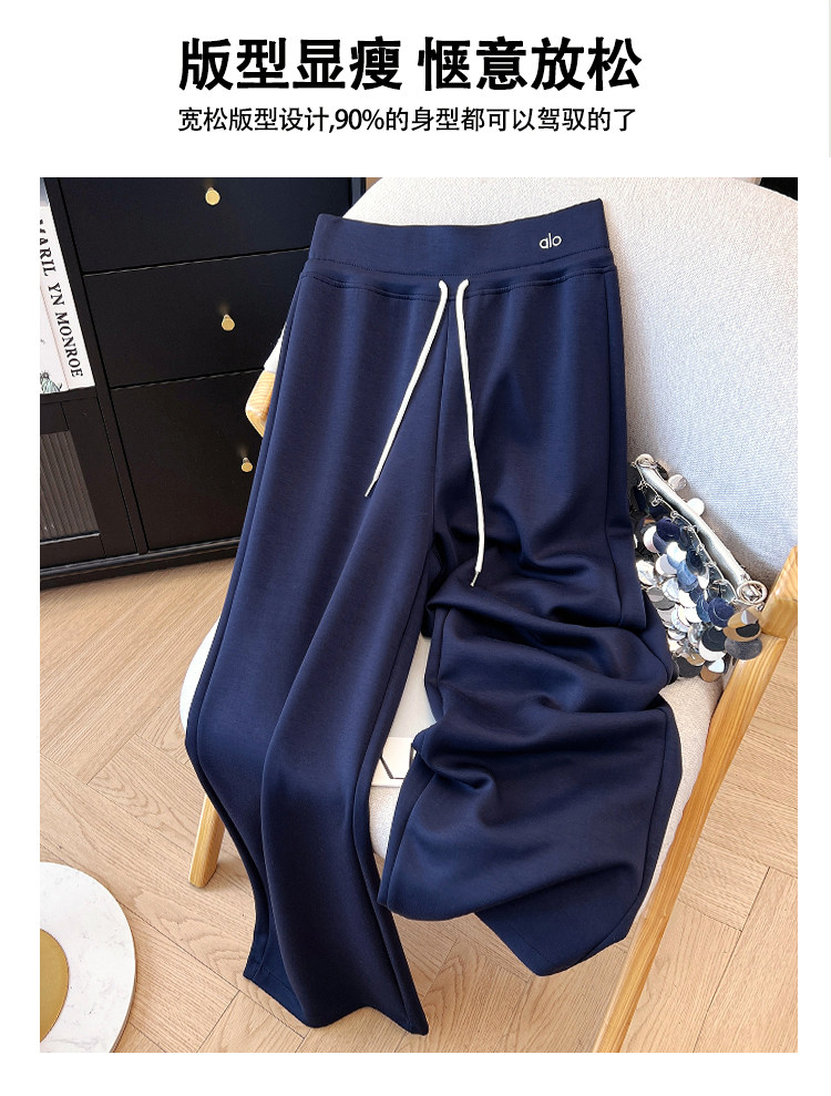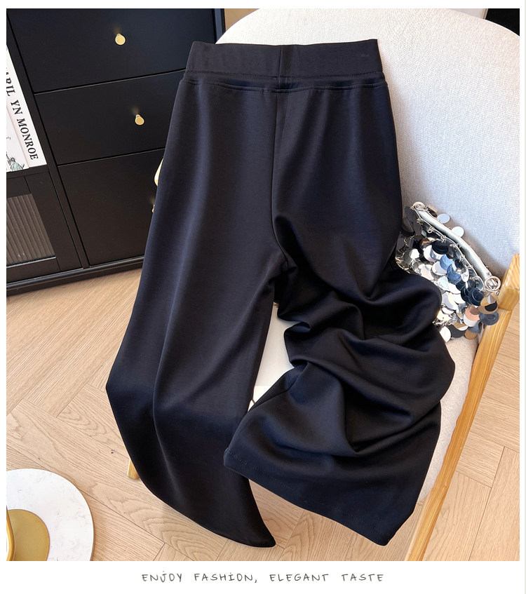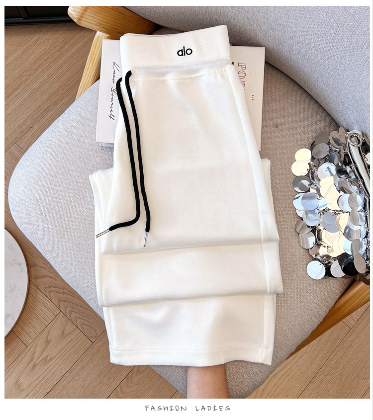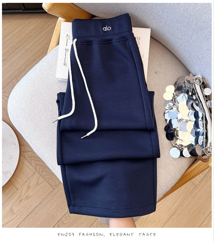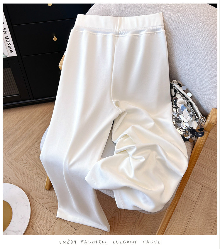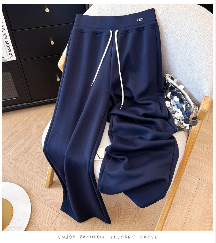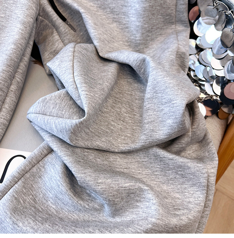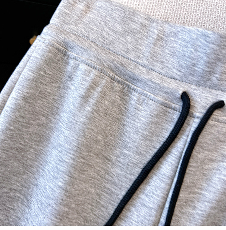 150cm Petite Gray American-Style Sweatpants for Women, Spring and Autumn, High-Waisted, Drawstring, Drapey, Embroidered, Straight-Leg Wide-Leg Pants, Size XS