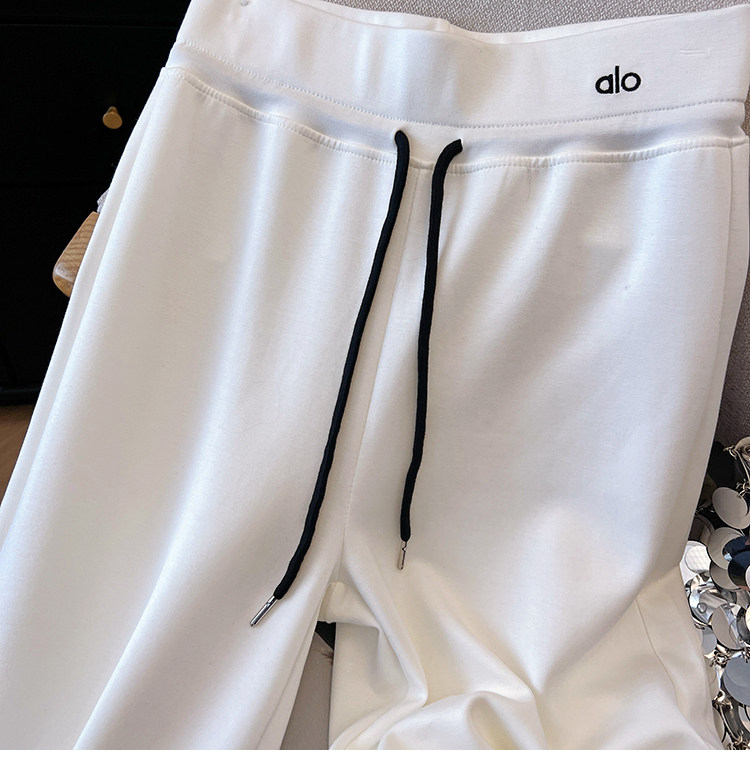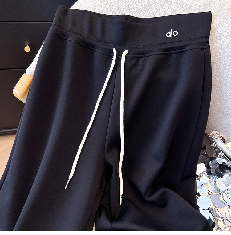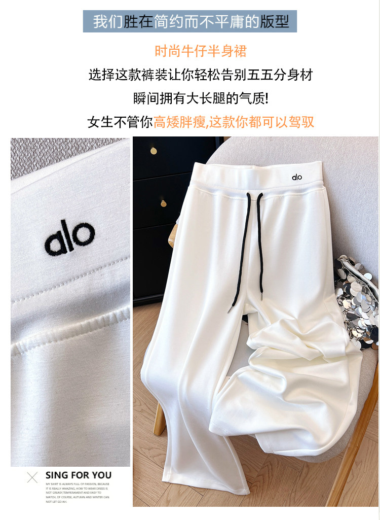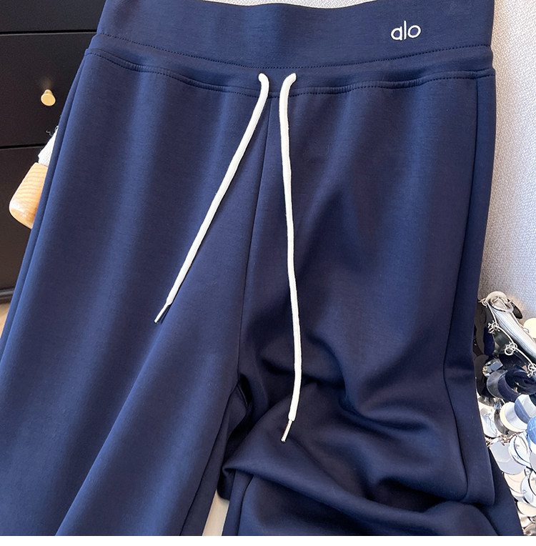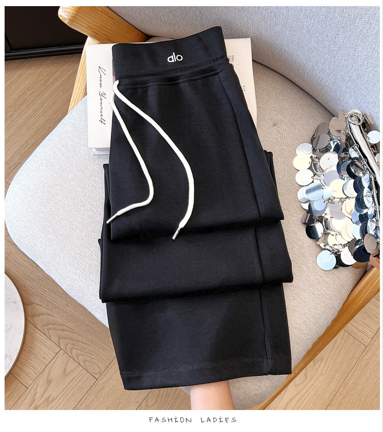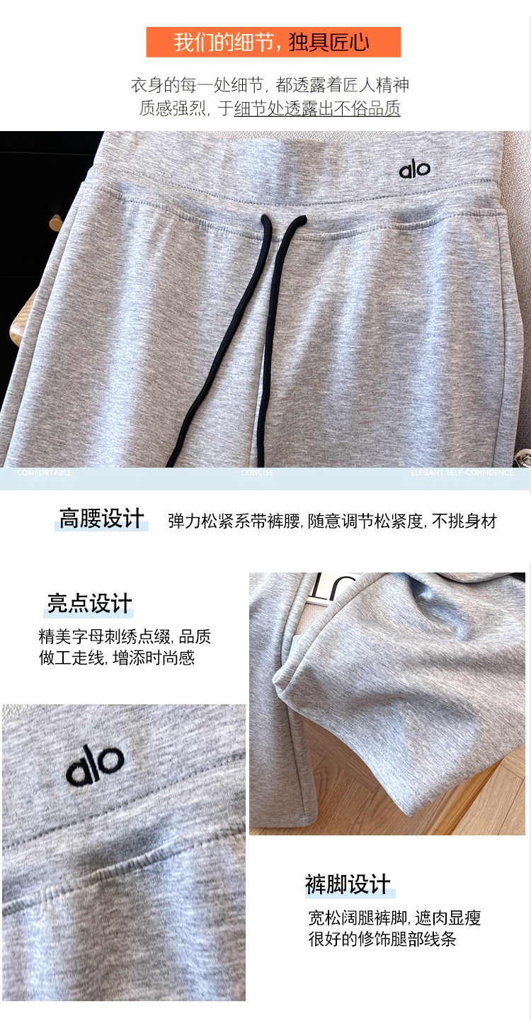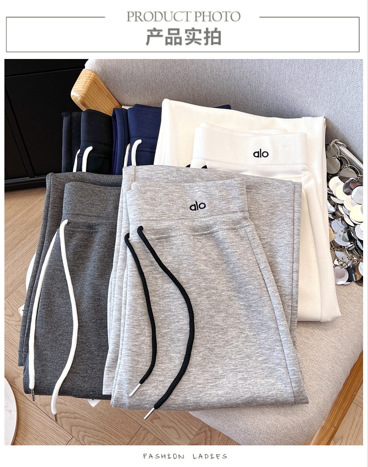 150cm Petite Gray American-Style Sweatpants for Women, Spring and Autumn, High-Waisted, Drawstring, Drapey, Embroidered, Straight-Leg Wide-Leg Pants, Size XS