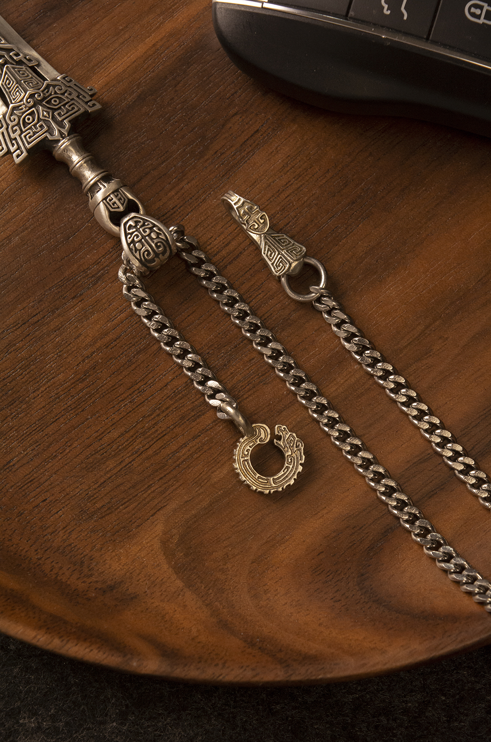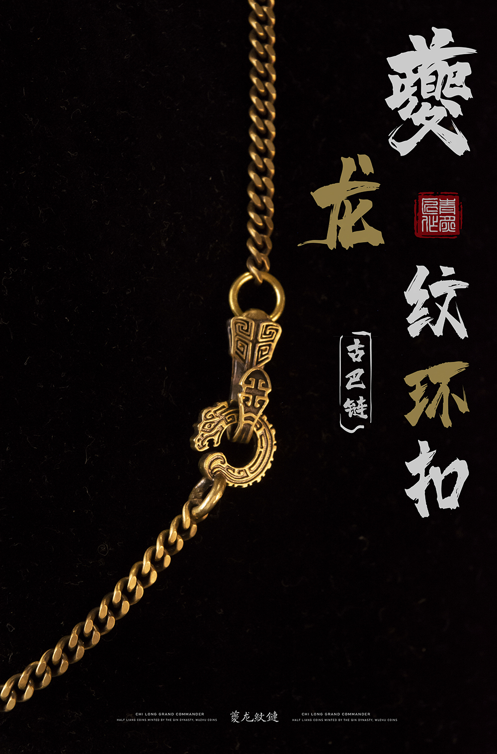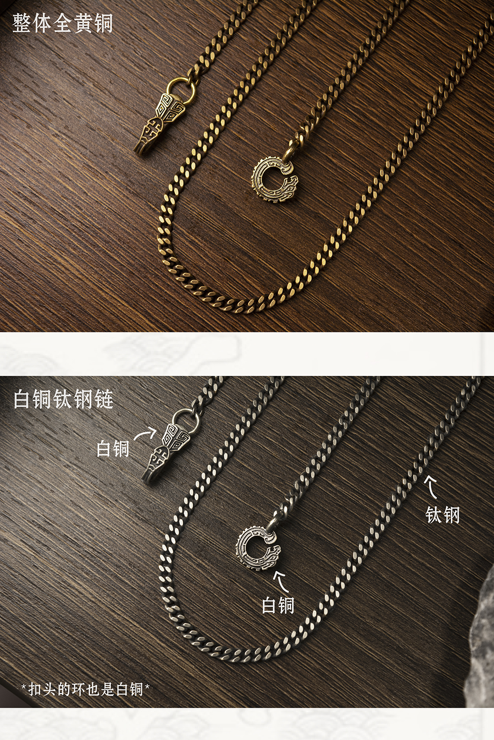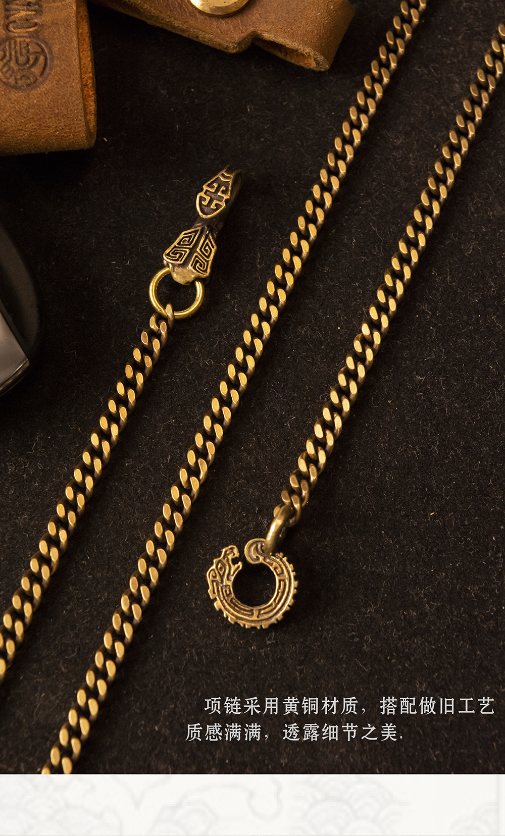Turtle Pattern Chain | Qingzhi Original Cuban Chain Flat Chain Brass White Copper Necklace Retro National Style Pendant Taijiao Chain