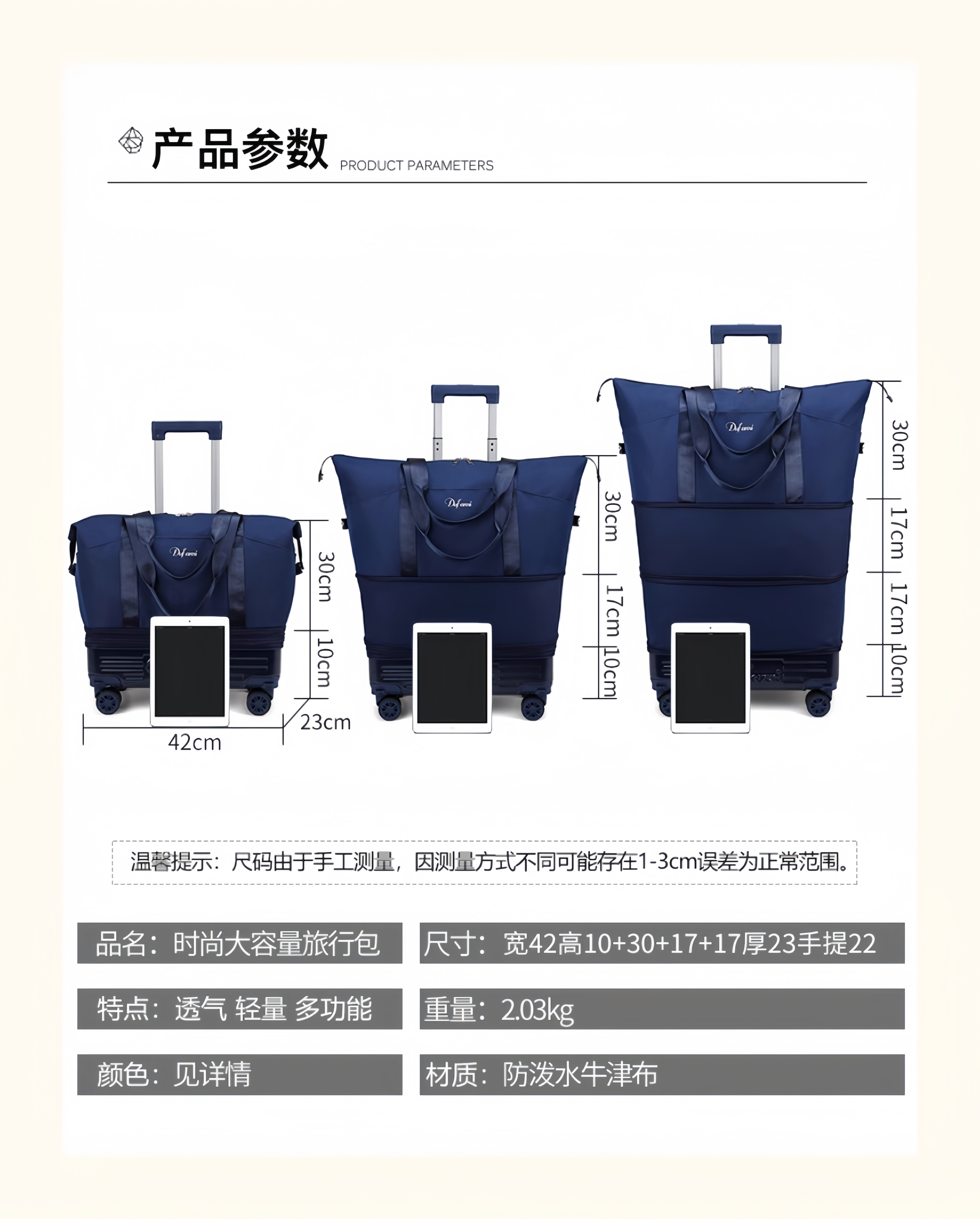 Travel Bag, Large Capacity, Foldable Luggage Bag, Lightweight Trolley Bag, Sturdy and Durable, Special Boarding Bag for Short-Distance Business Trips