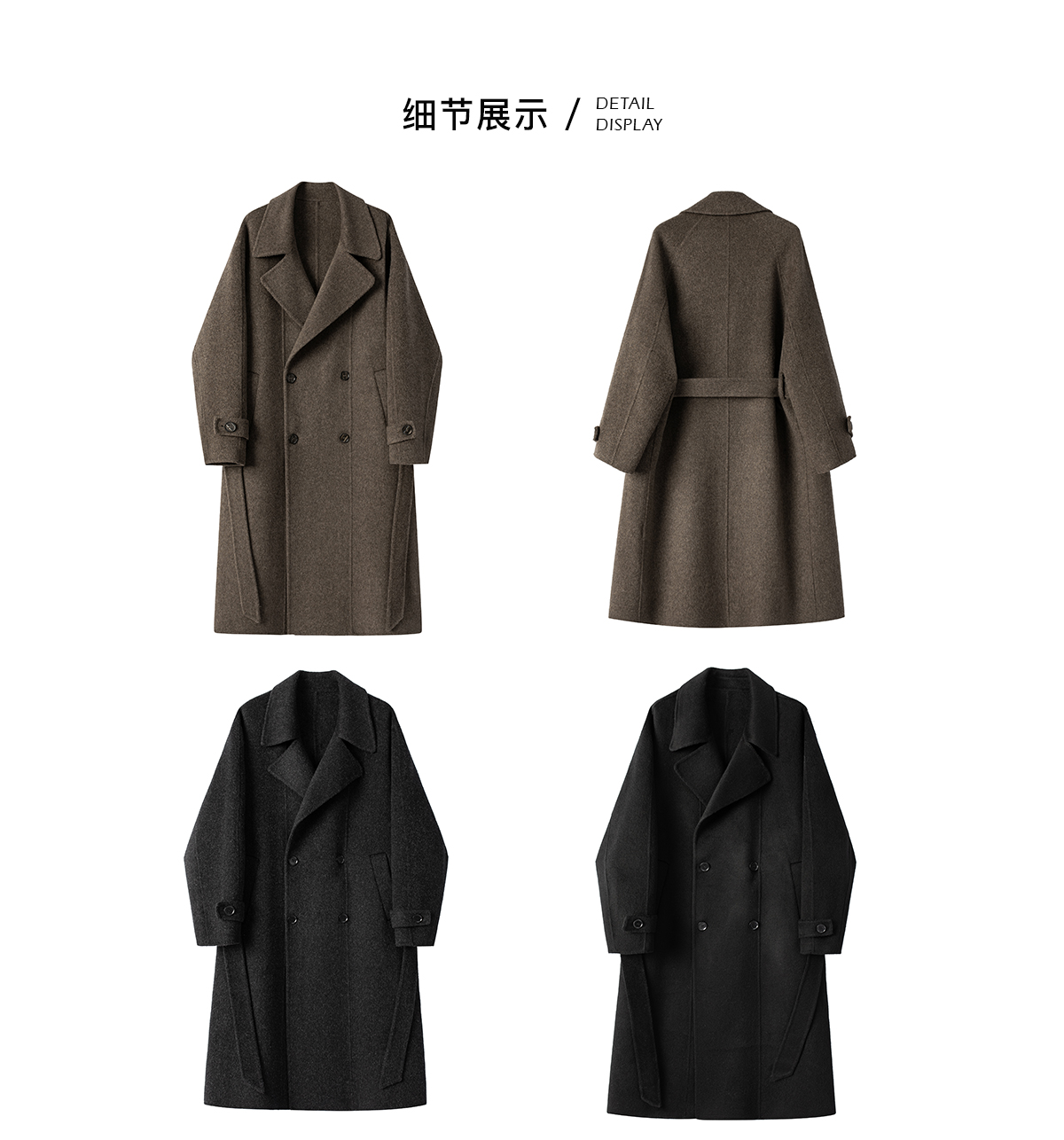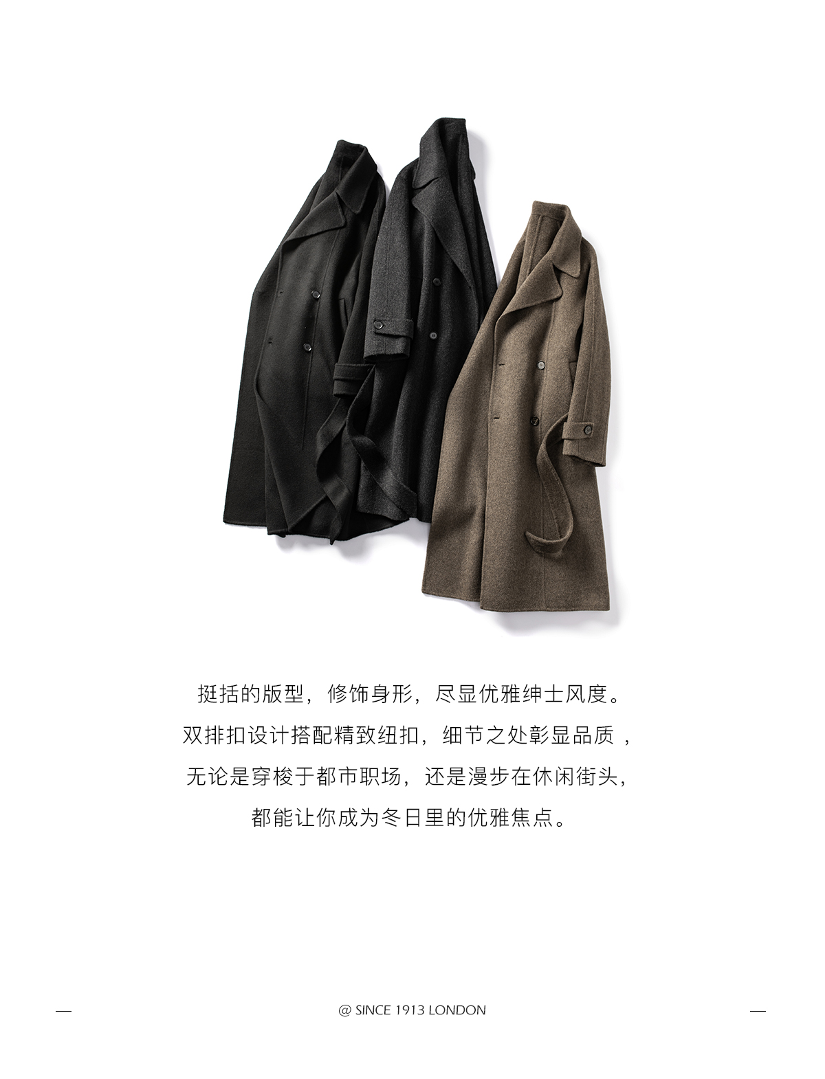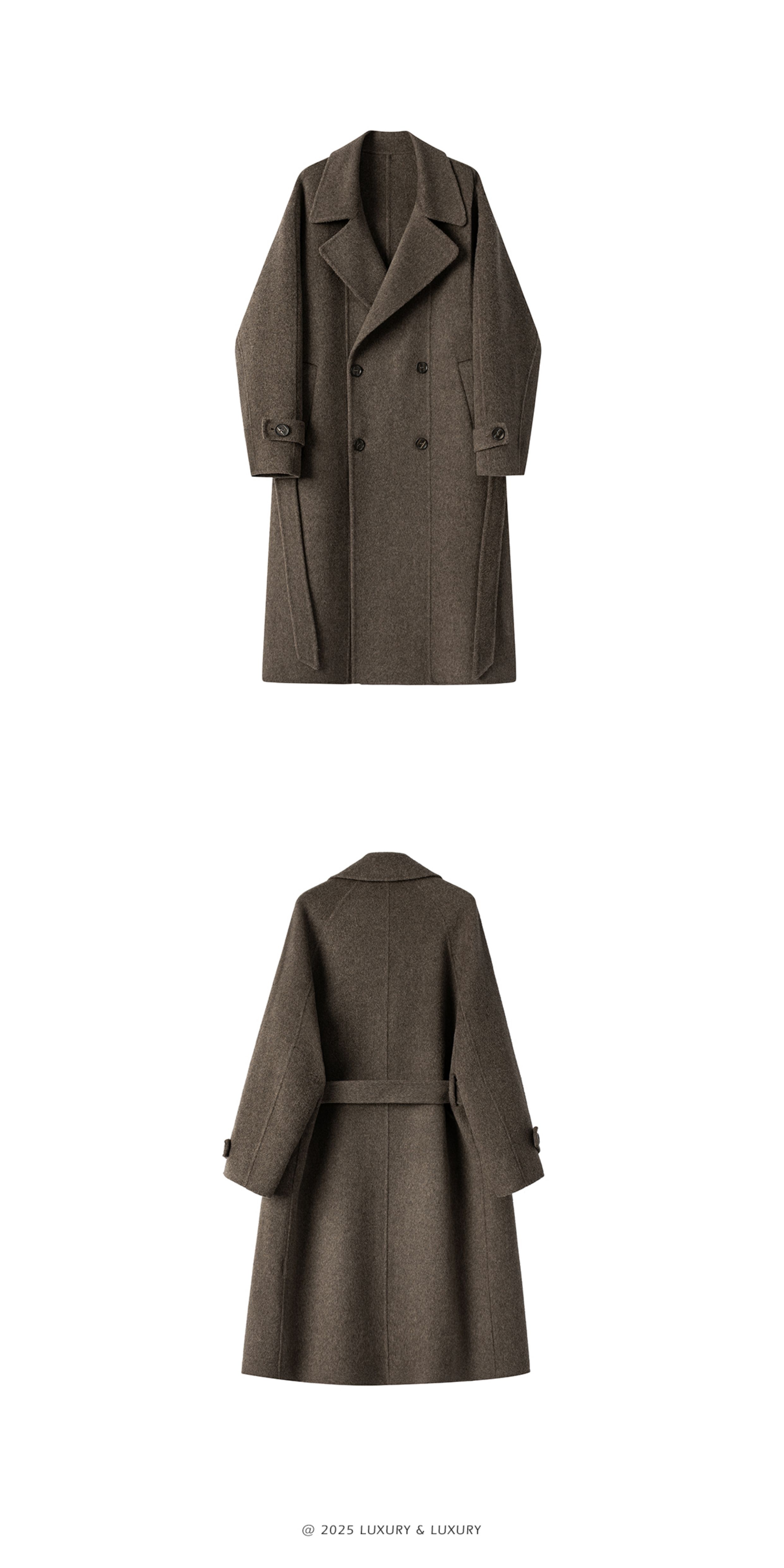 British Little Fox 25 Autumn/Winter Three-Dimensional Line Golden Ratio 100% Merino Wool Long Double-Sided Woolen Belted Coat
