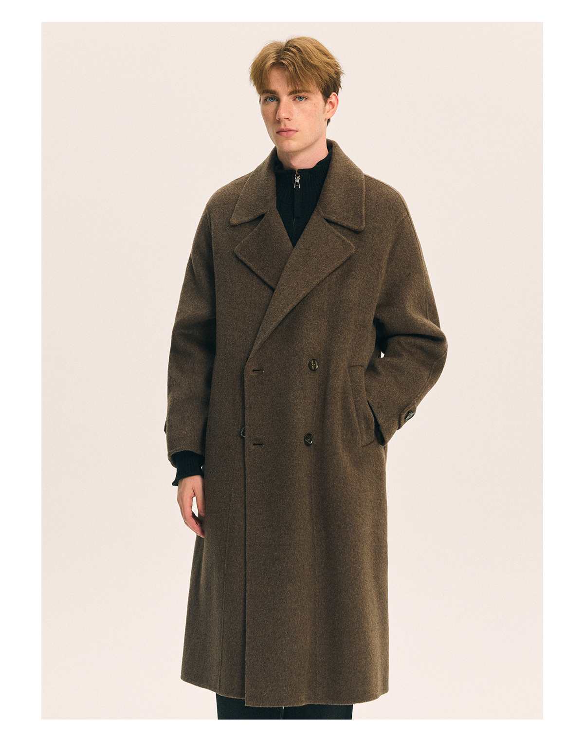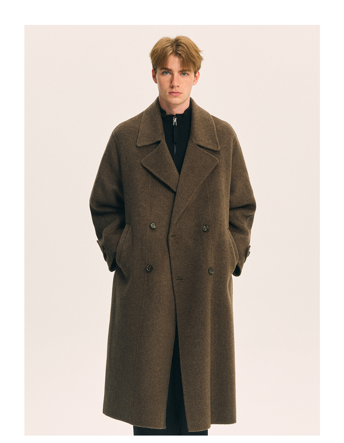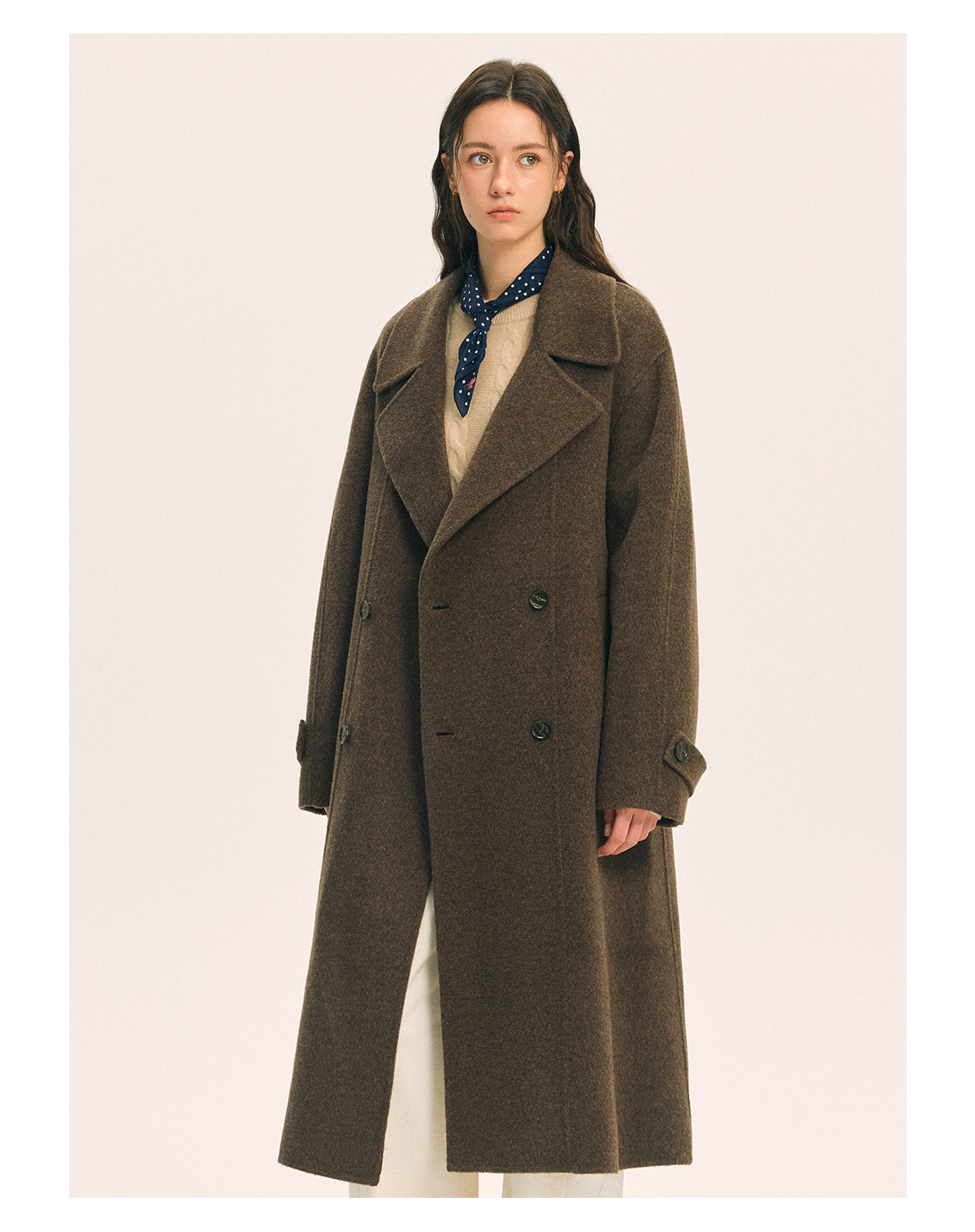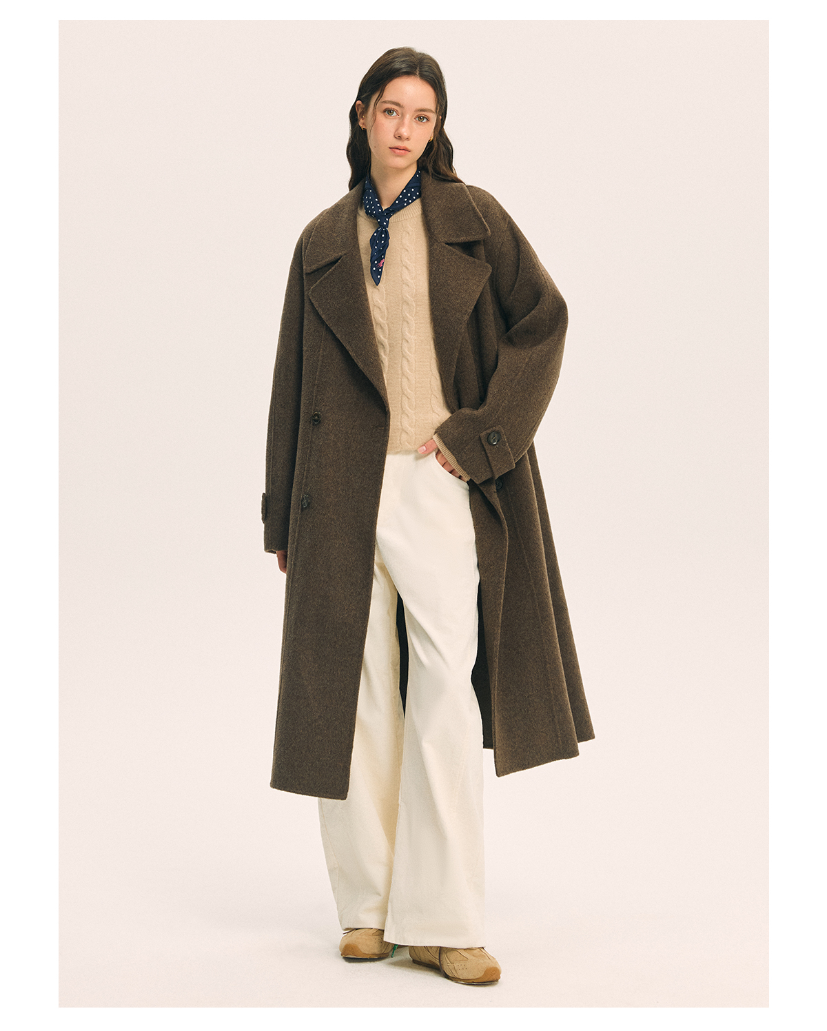 British Little Fox 25 Autumn/Winter Three-Dimensional Line Golden Ratio 100% Merino Wool Long Double-Sided Woolen Belted Coat