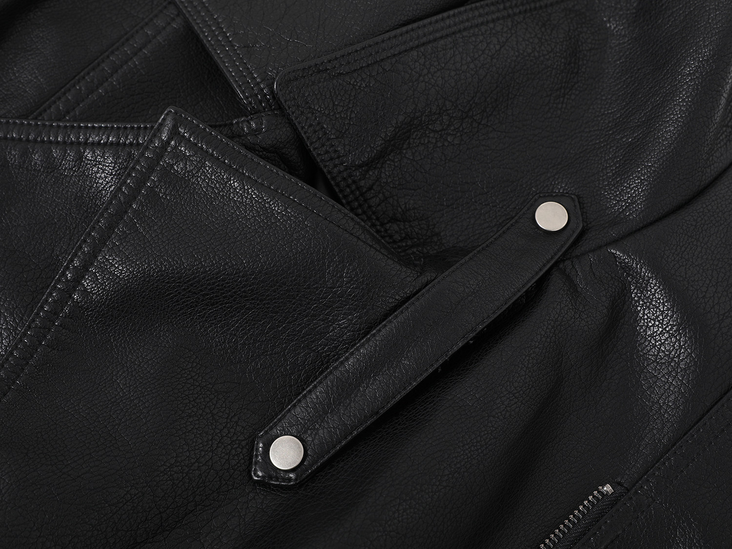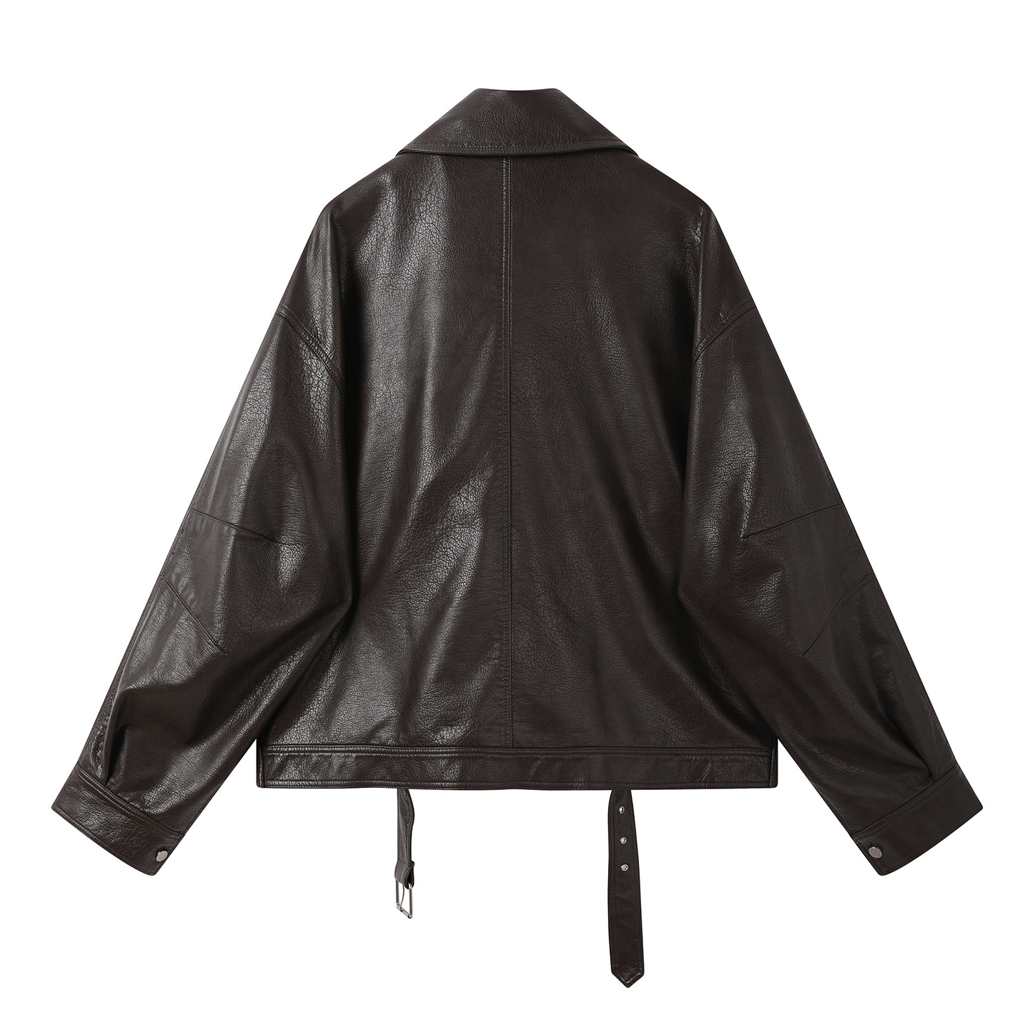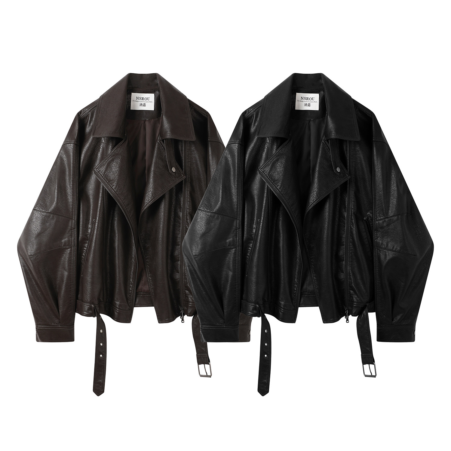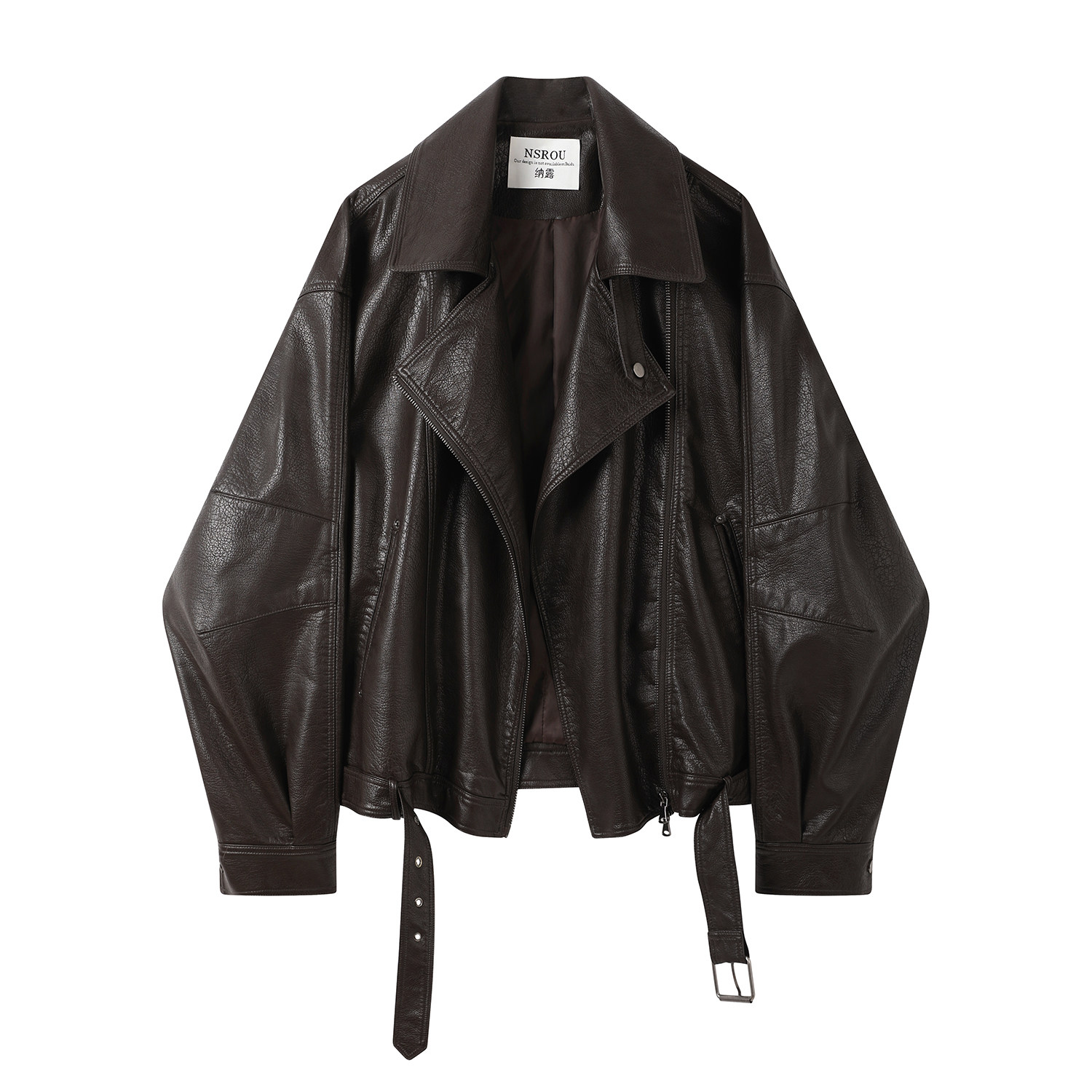 Vintage Melard Cool Style Lapel Leather Jacket for Women, Autumn American Short Loose Versatile Biker Jacket