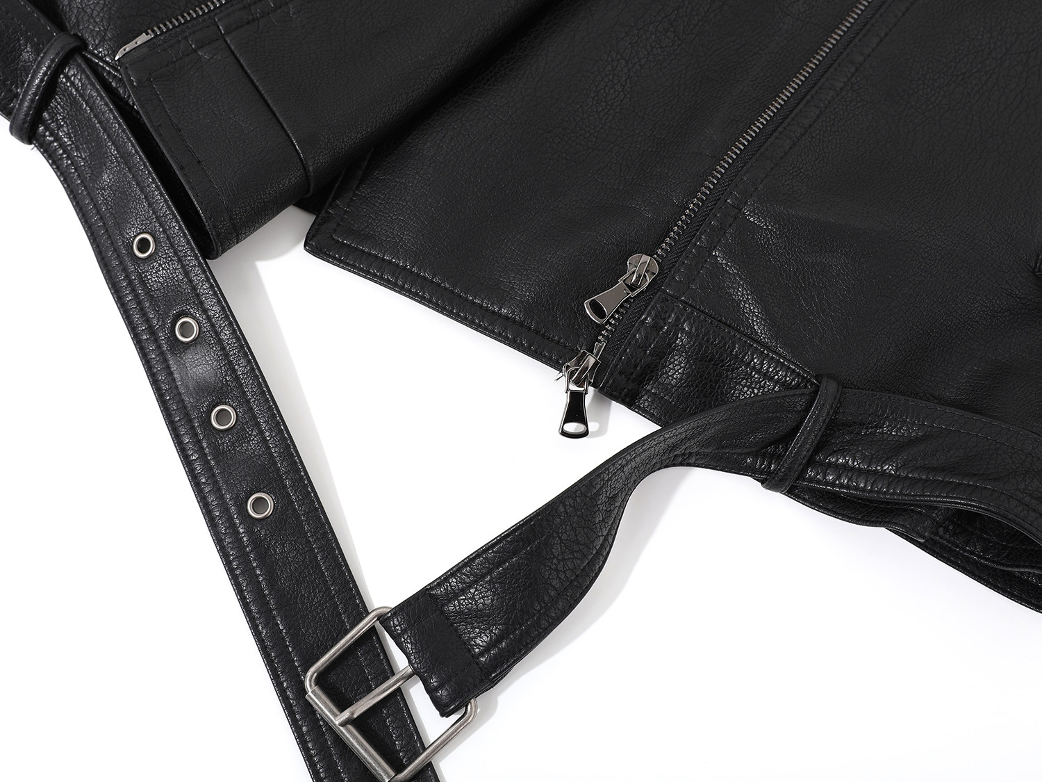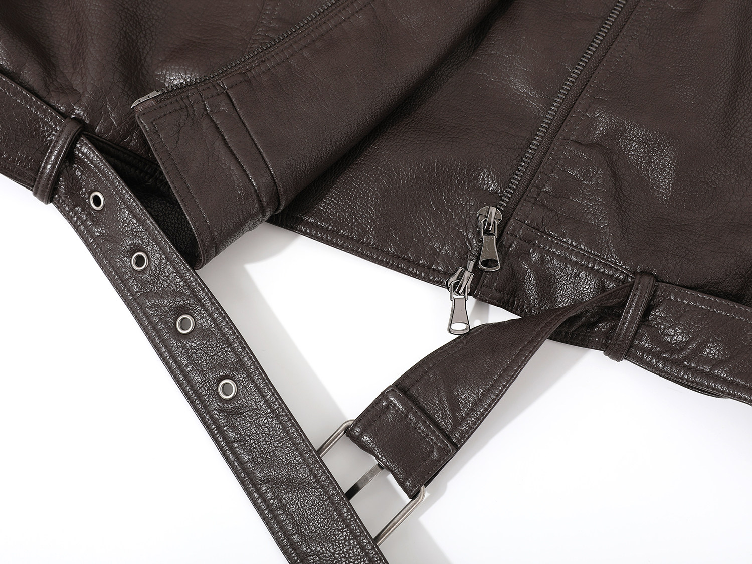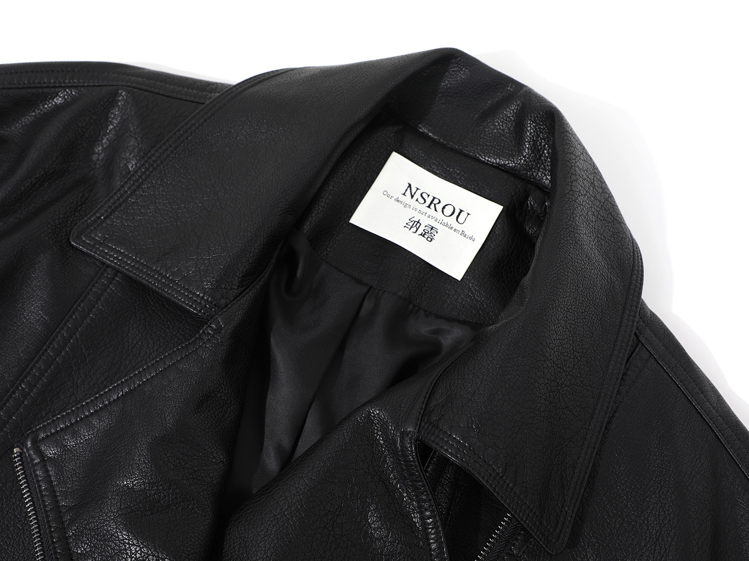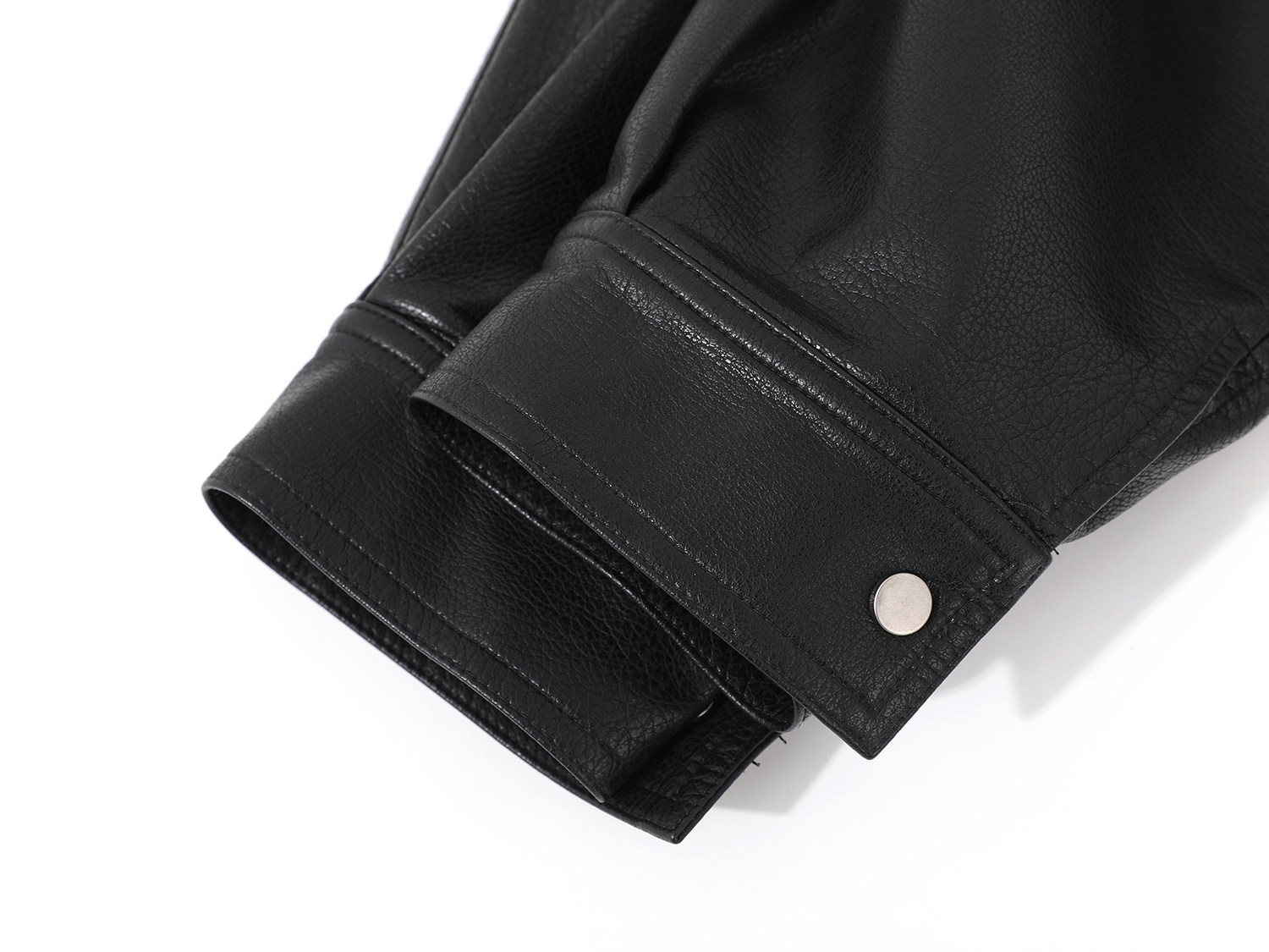 Vintage Melard Cool Style Lapel Leather Jacket for Women, Autumn American Short Loose Versatile Biker Jacket
