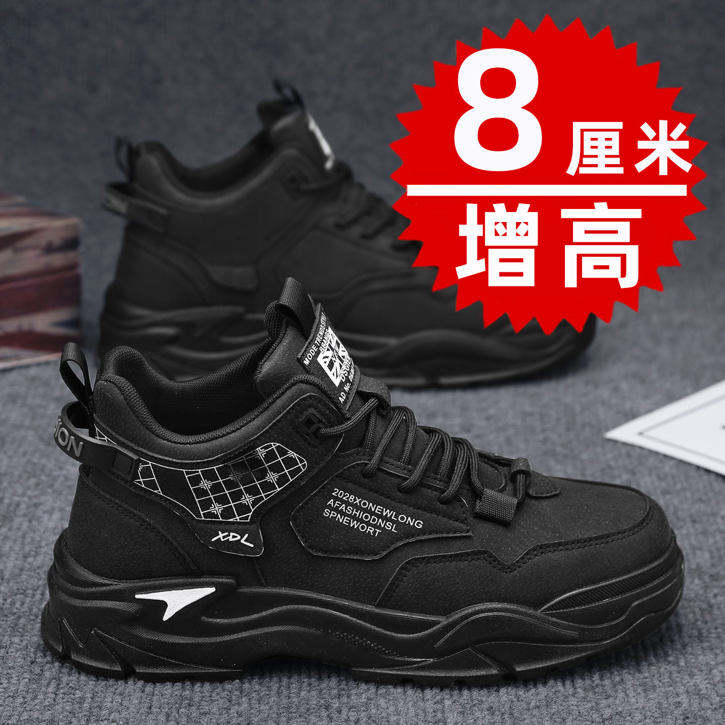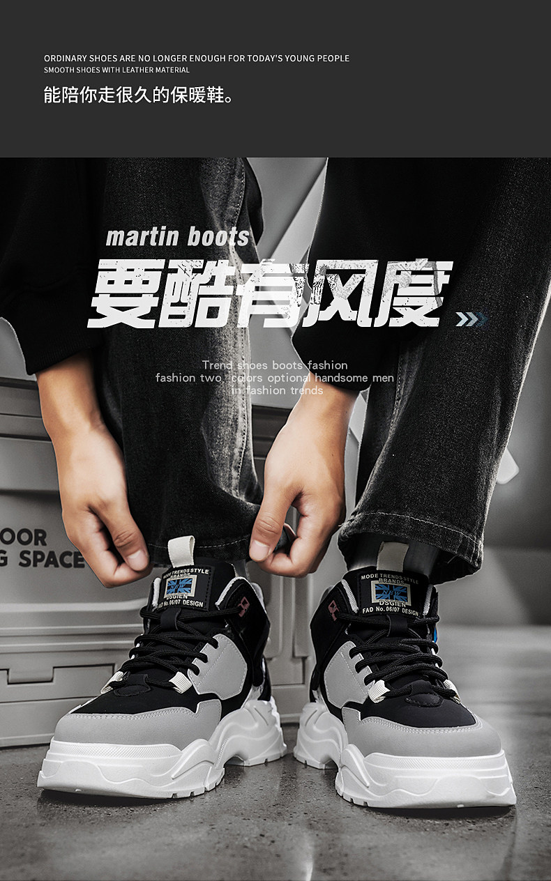 Winter New Men's Shoes Martin Boots Men's Height-Increasing Shoes 10cm Korean Style Casual High-Top Sneakers Men's Internal Height Increase