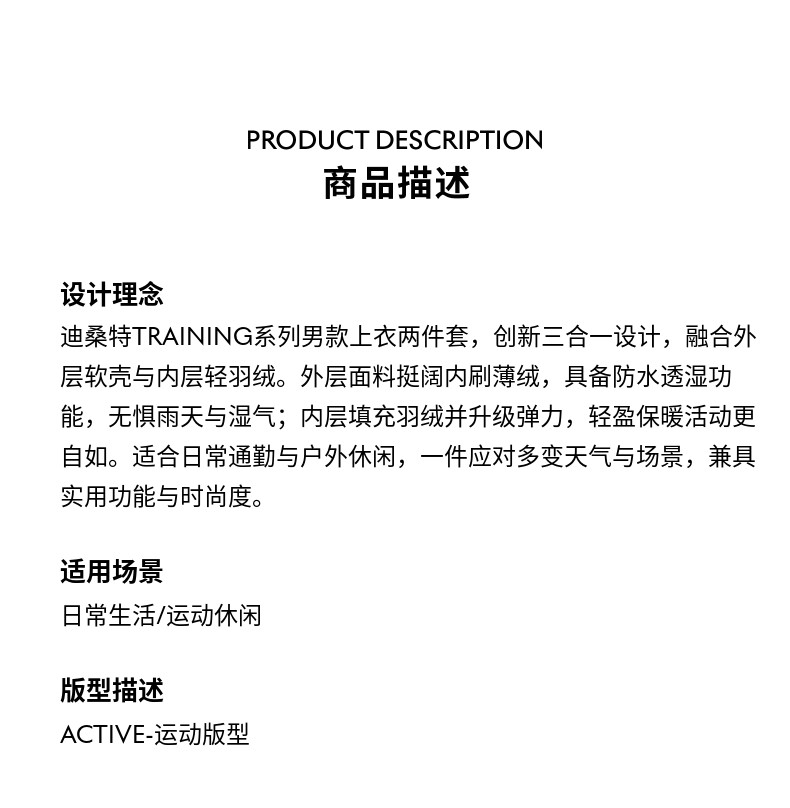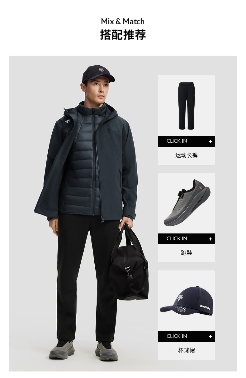 Descente Desante Lightweight down Inner Layer Soft Shell Outer Layer Men's Waterproof and Breathable Three-In-One Top Two-Piece Set