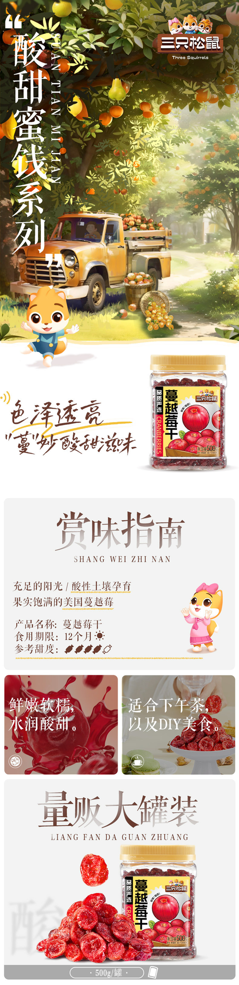 【 Three Squirrels, Cranberry Dried 500g 】 Instant Pregnan