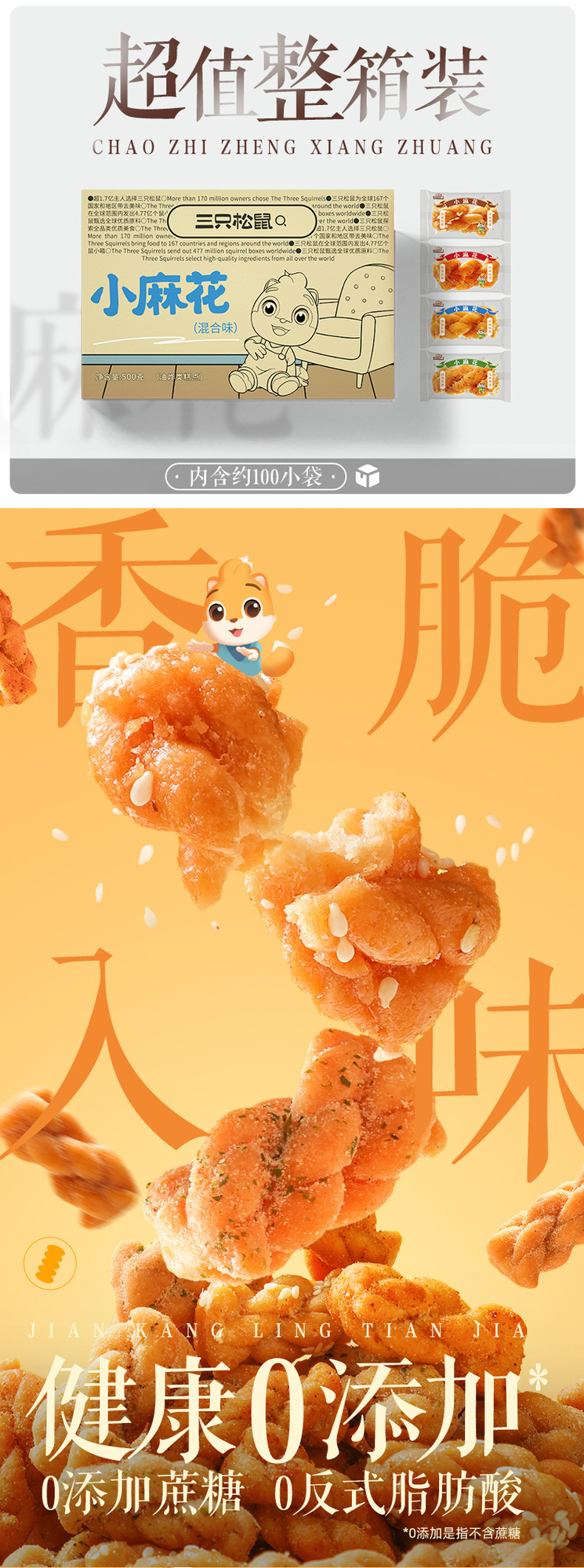 [Three Squirrels Little Fried Dough Twists/Mixed Flavor/500
