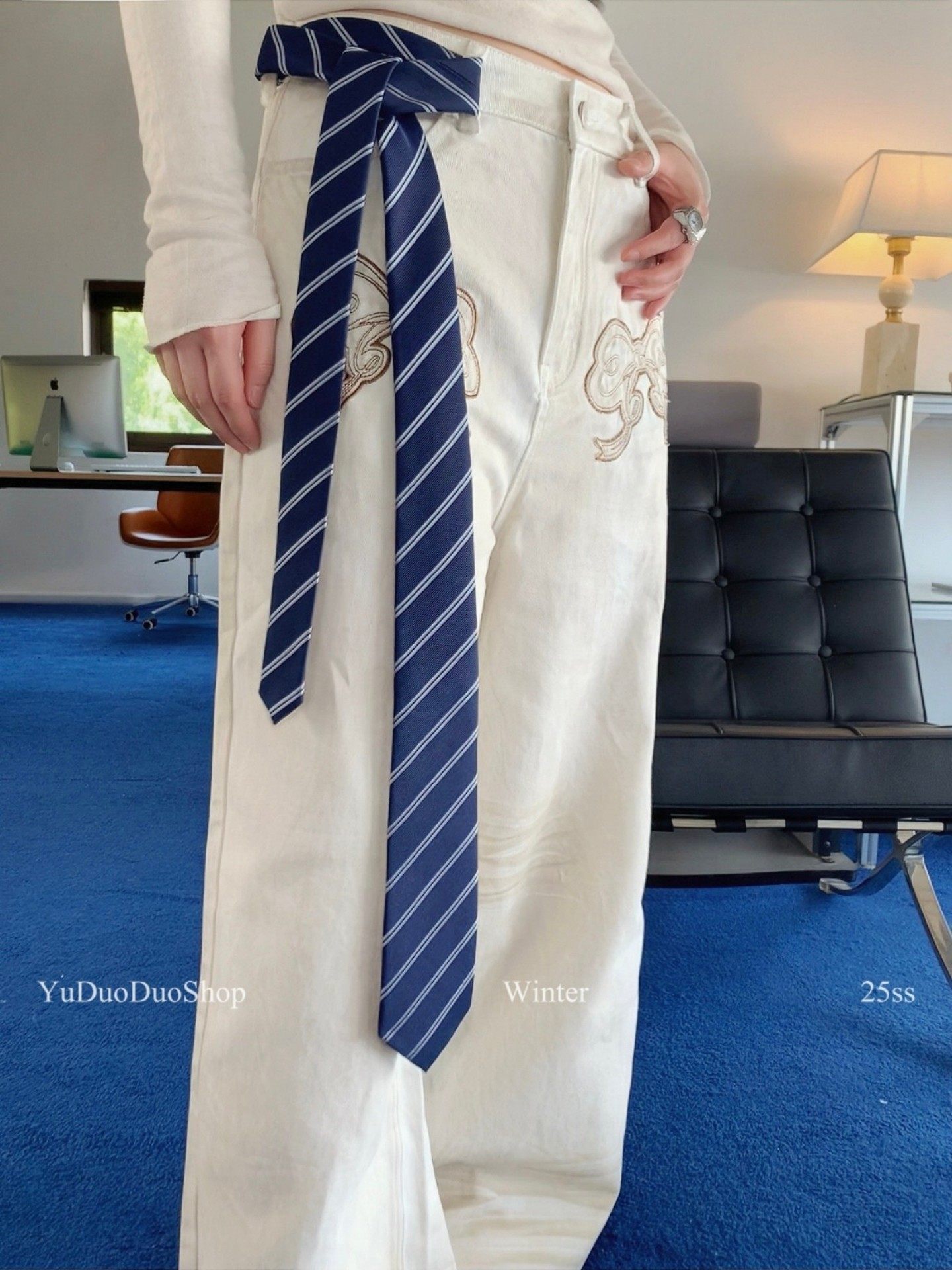 2025 American Retro Hand-Tied Striped Tie for Women, Spicy Girl College Style Belt Accessory, High-End Pants Decoration Trend