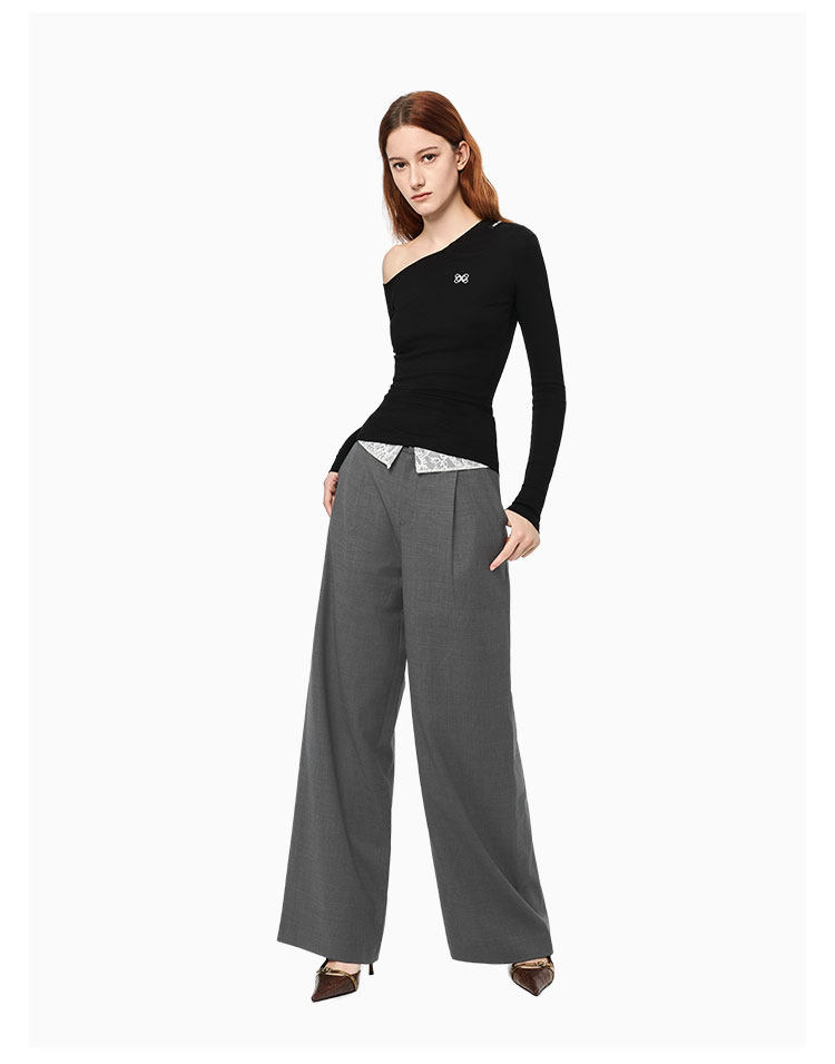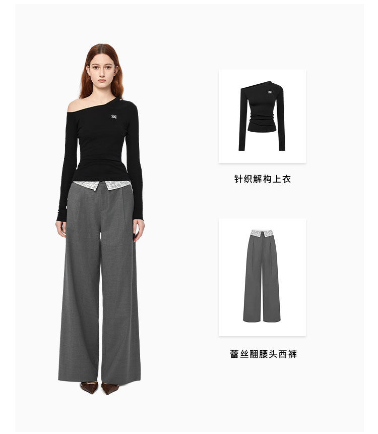 Ann Andelman Official Direct Sales Versatile Casual Trousers for Daily Commuting, Straight-Leg Lace Waistband Suit Pants