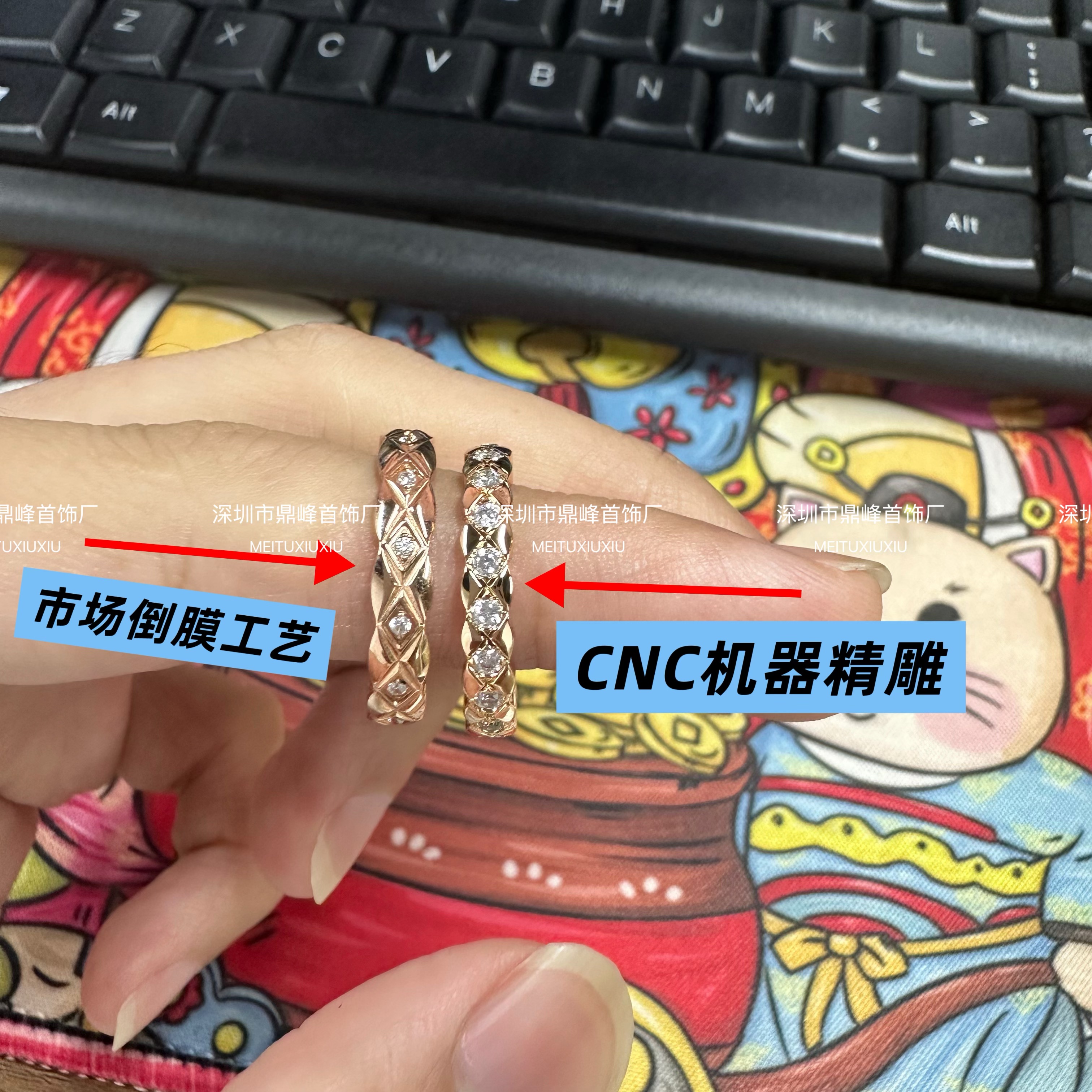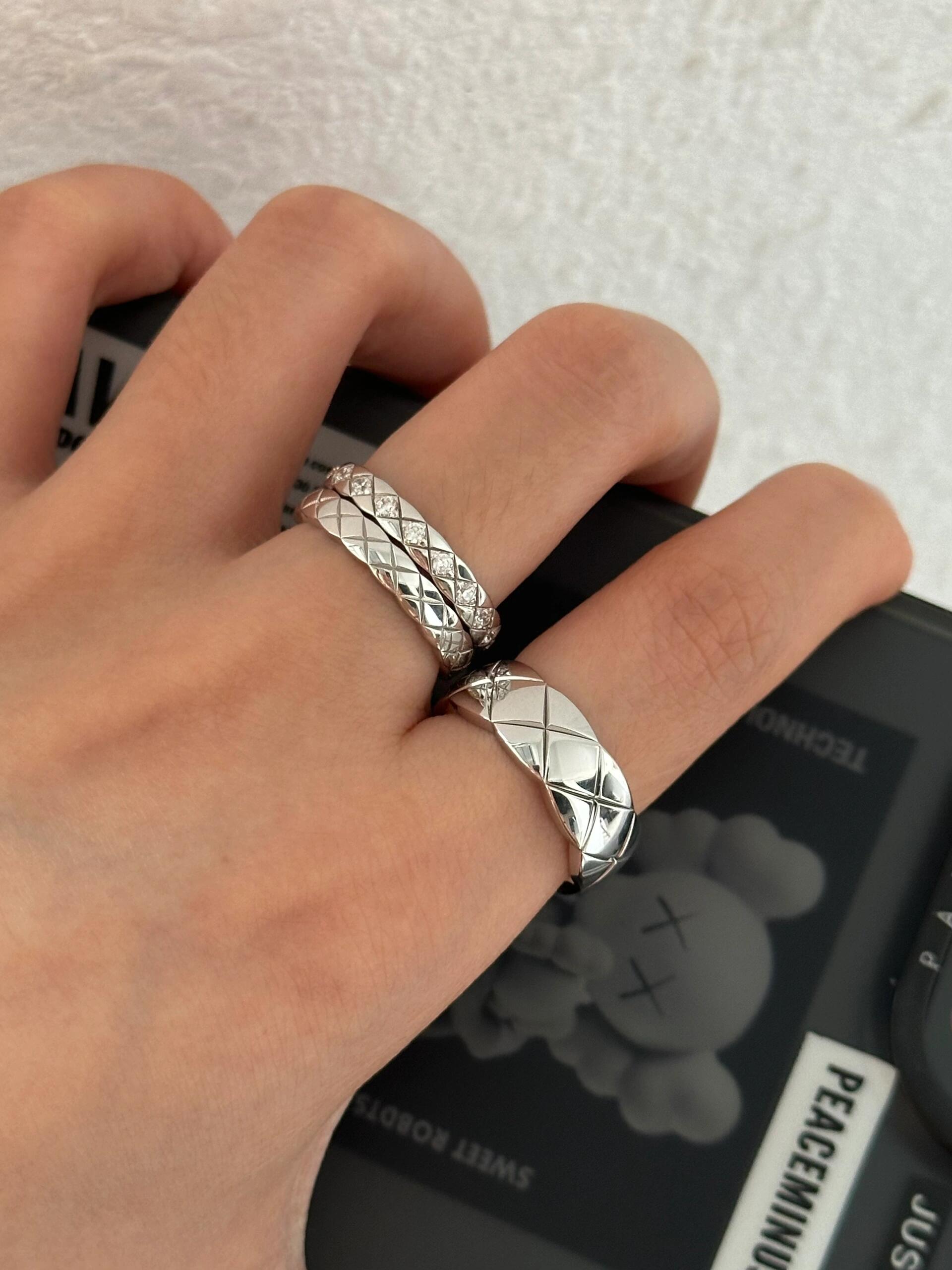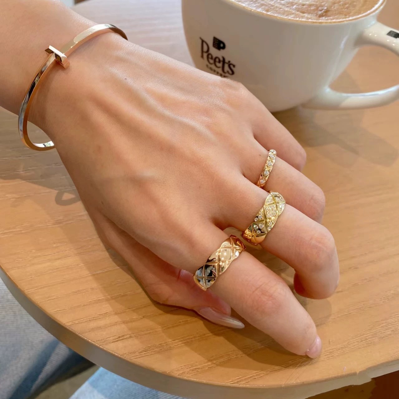 Correct Version of the Chanel-Style Cococruch Diamond-Pattern Ring for Women, 18K Rose Gold Classic Wide Ring, Same Style as Jennie