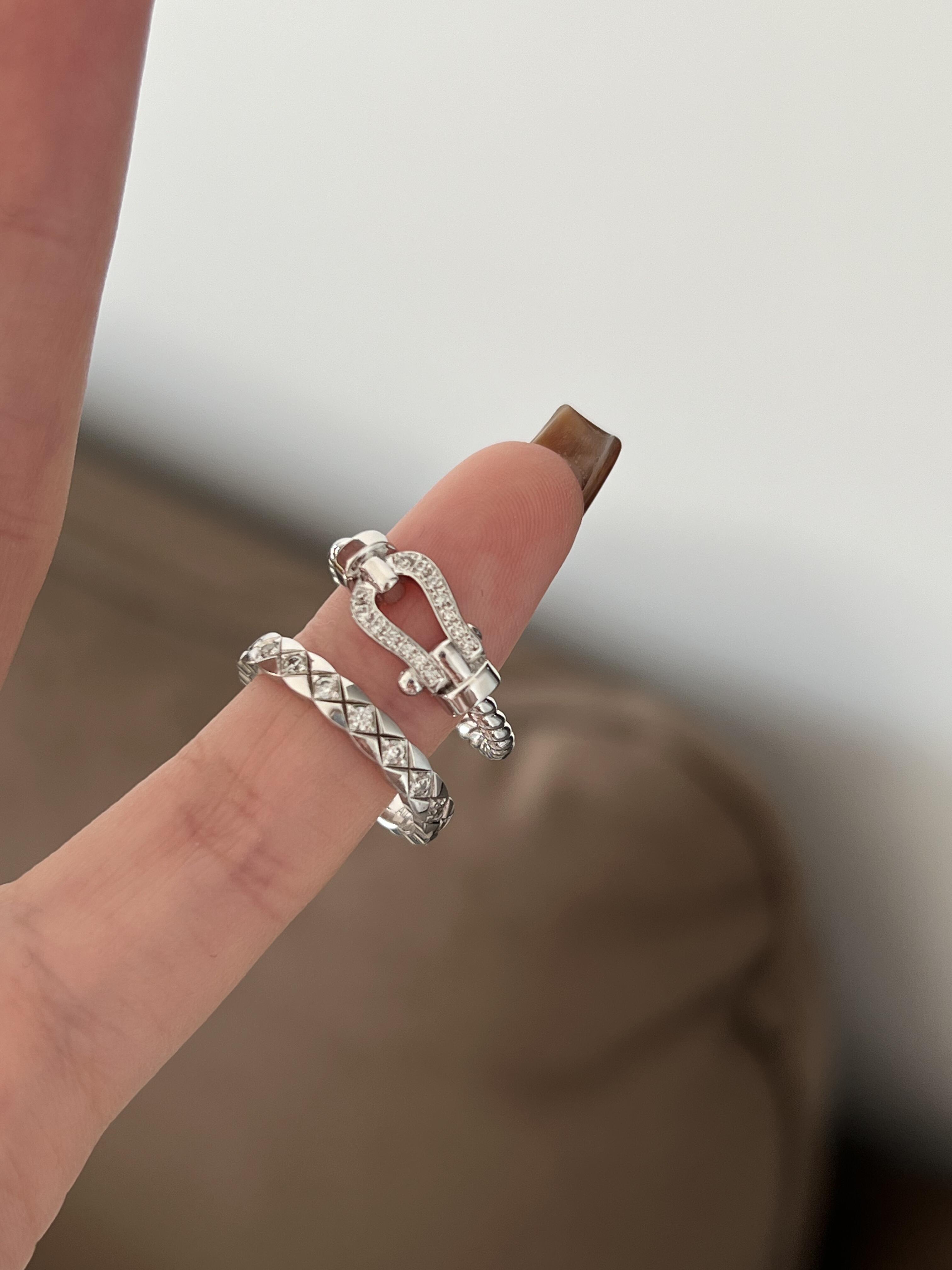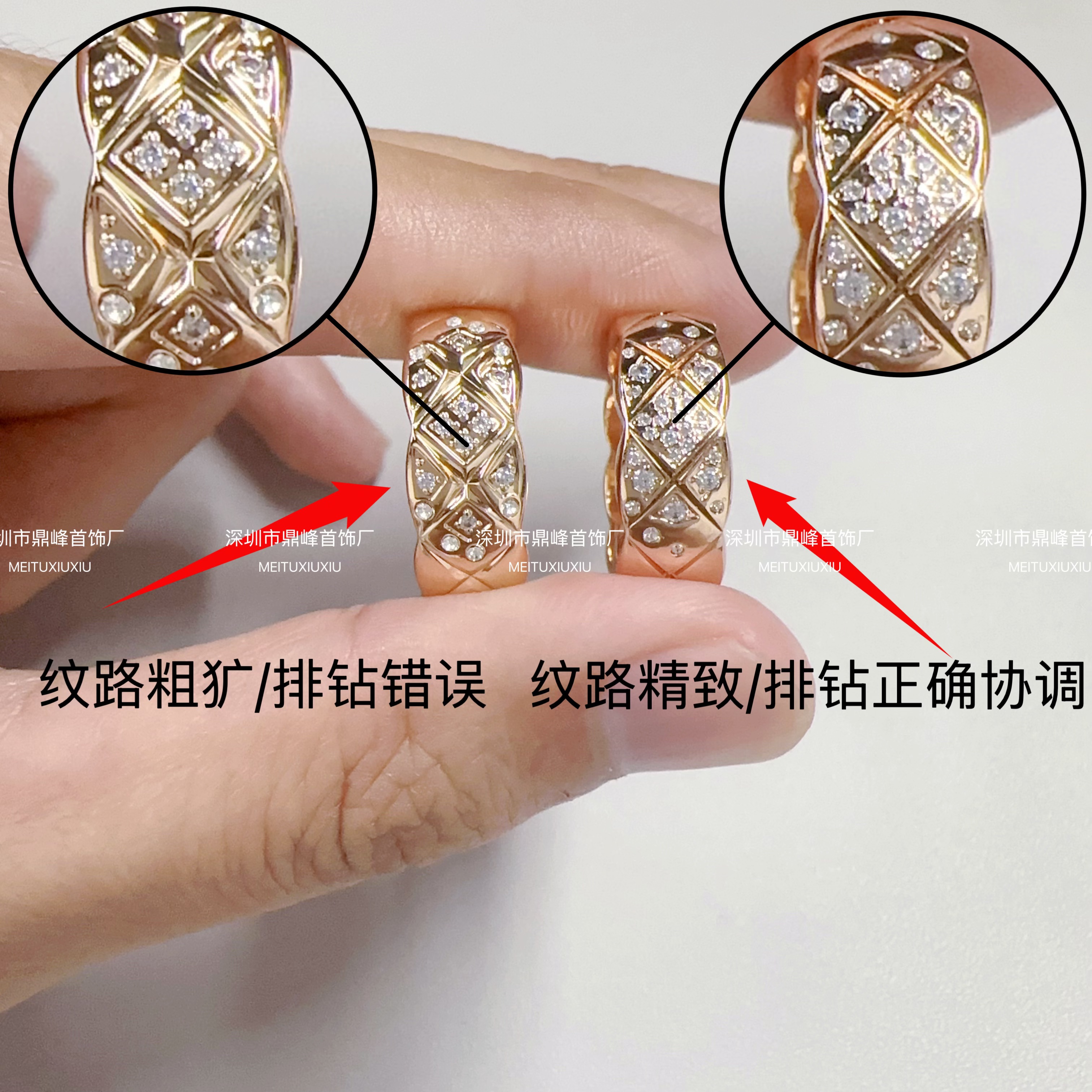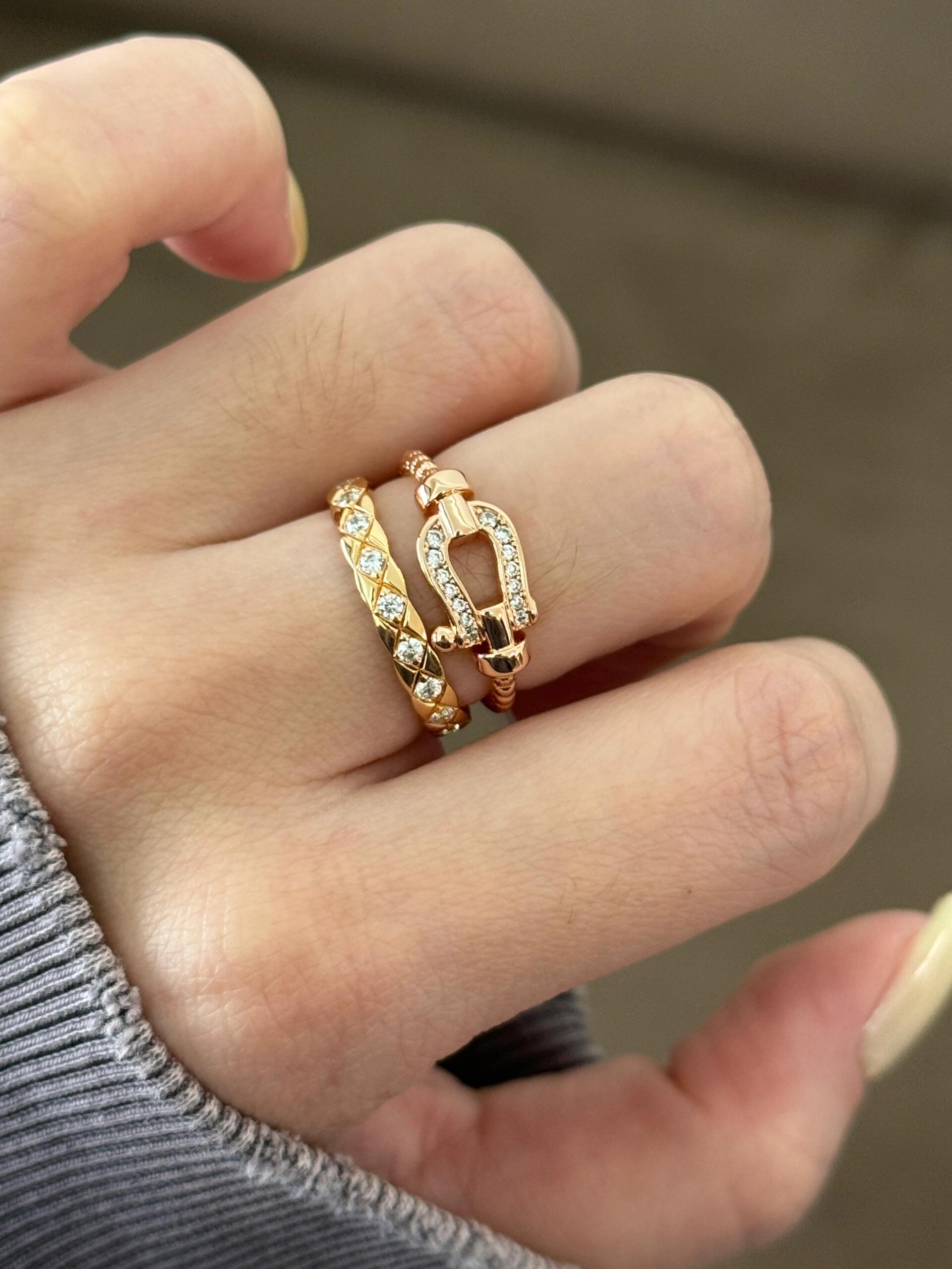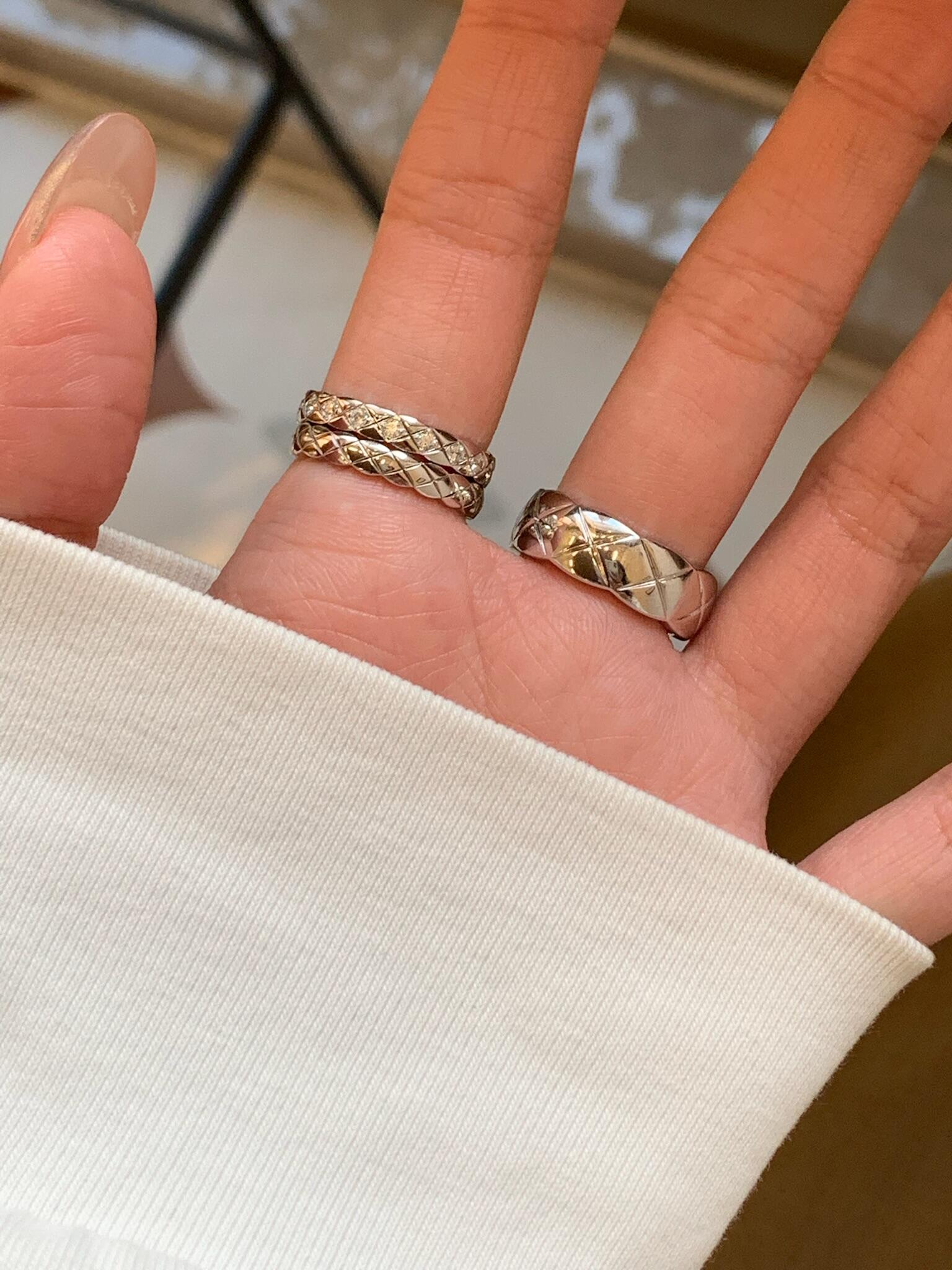 Correct Version of the Chanel-Style Cococruch Diamond-Pattern Ring for Women, 18K Rose Gold Classic Wide Ring, Same Style as Jennie