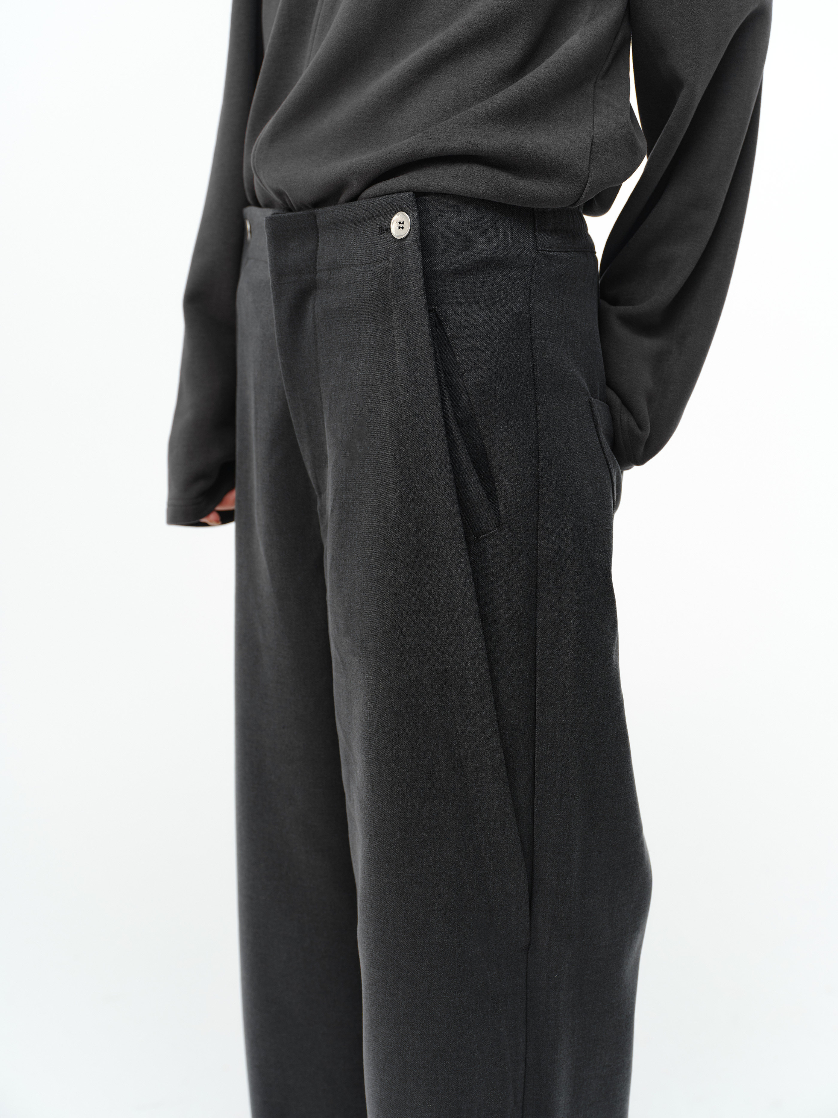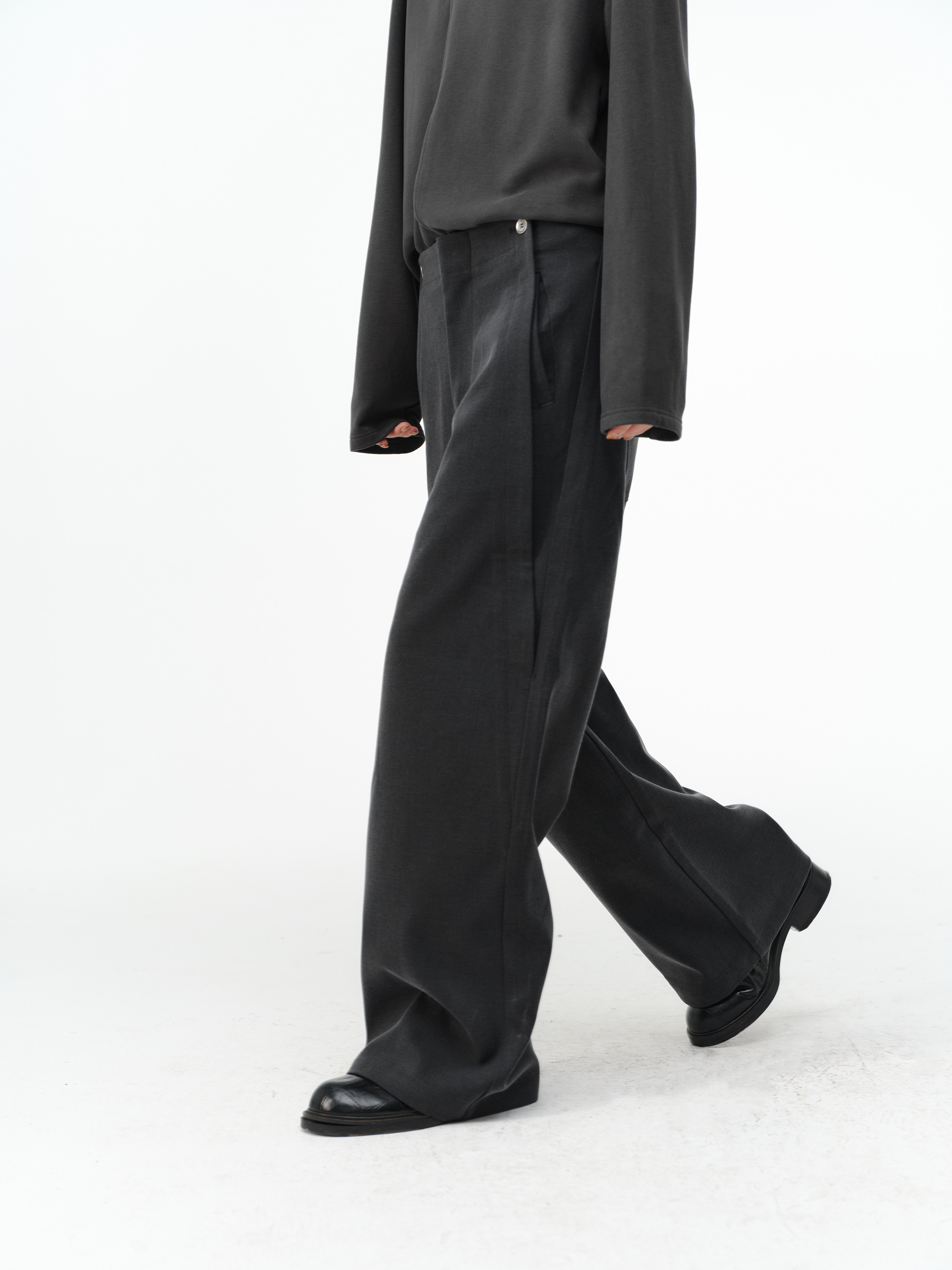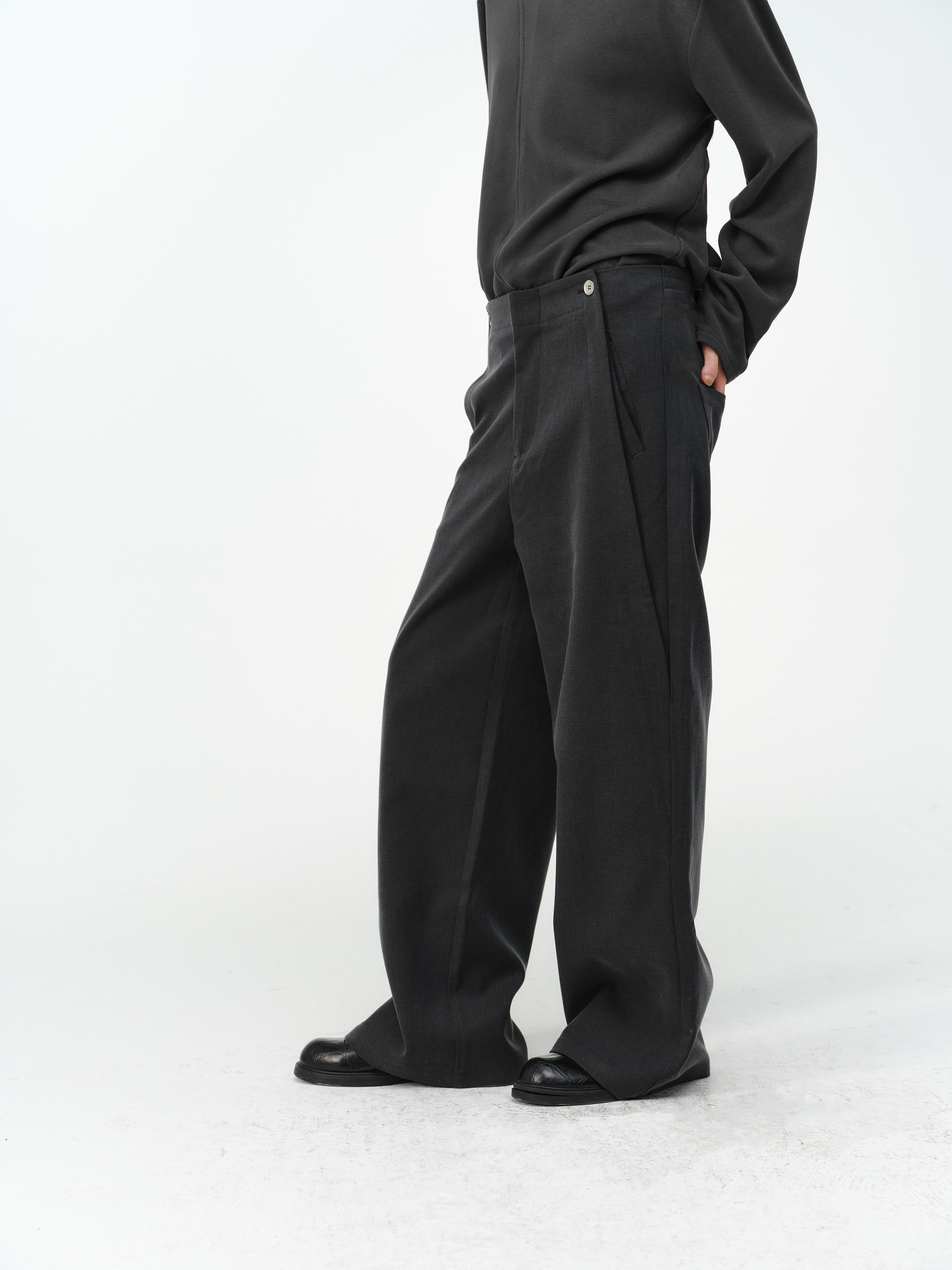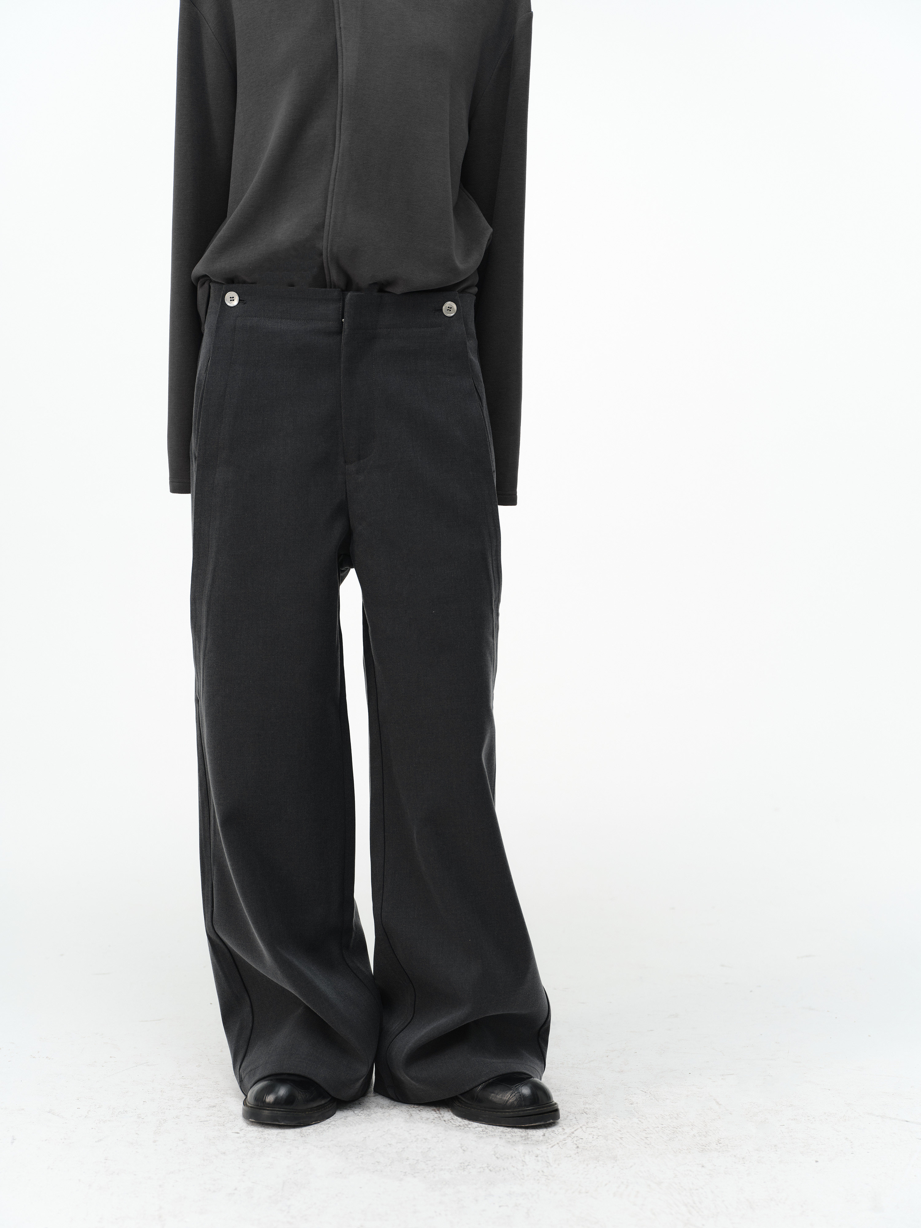 「Kiov.S」Wool Lyocell Loose Button Wide-Leg Trousers Two-Color Pants