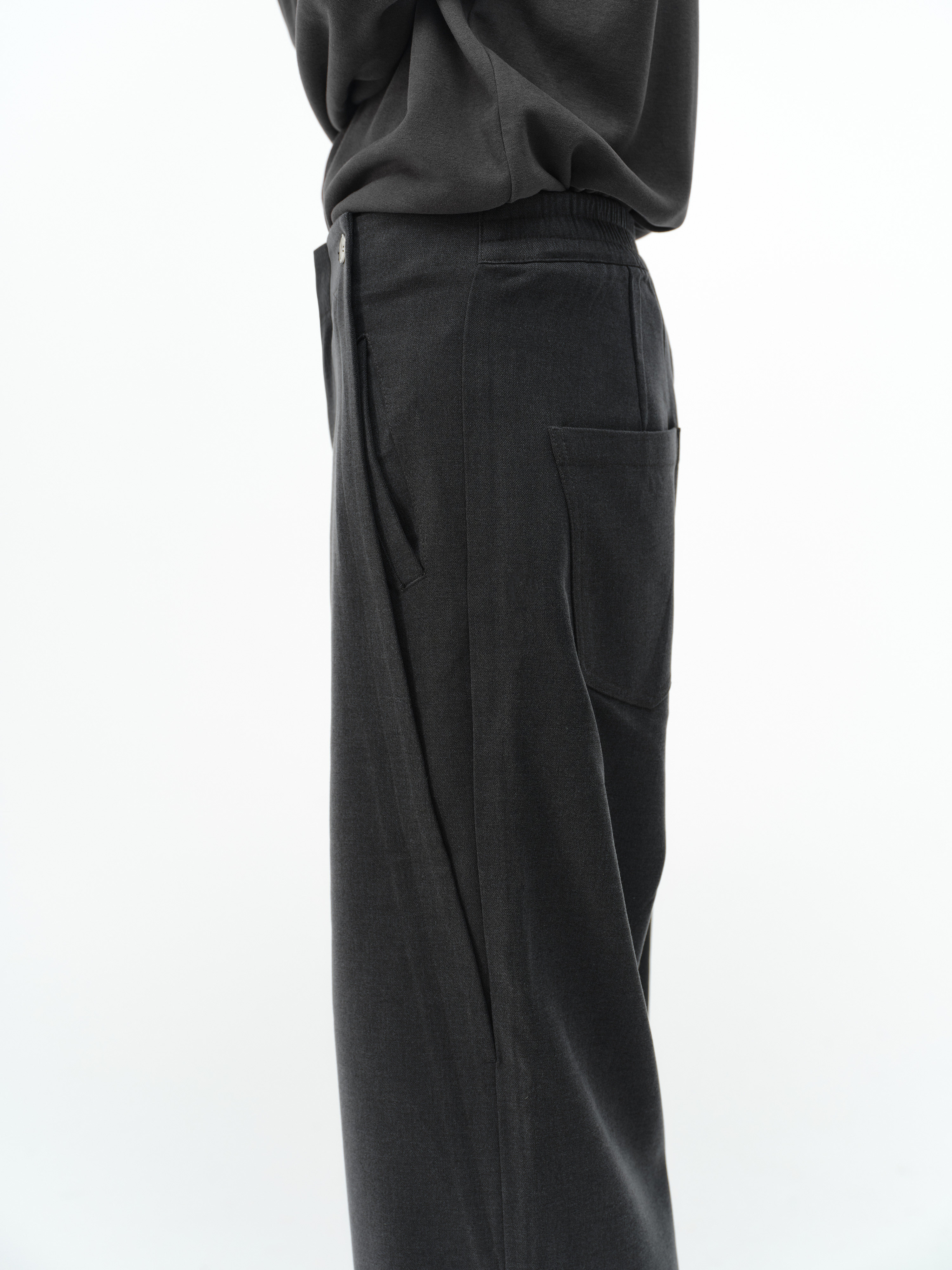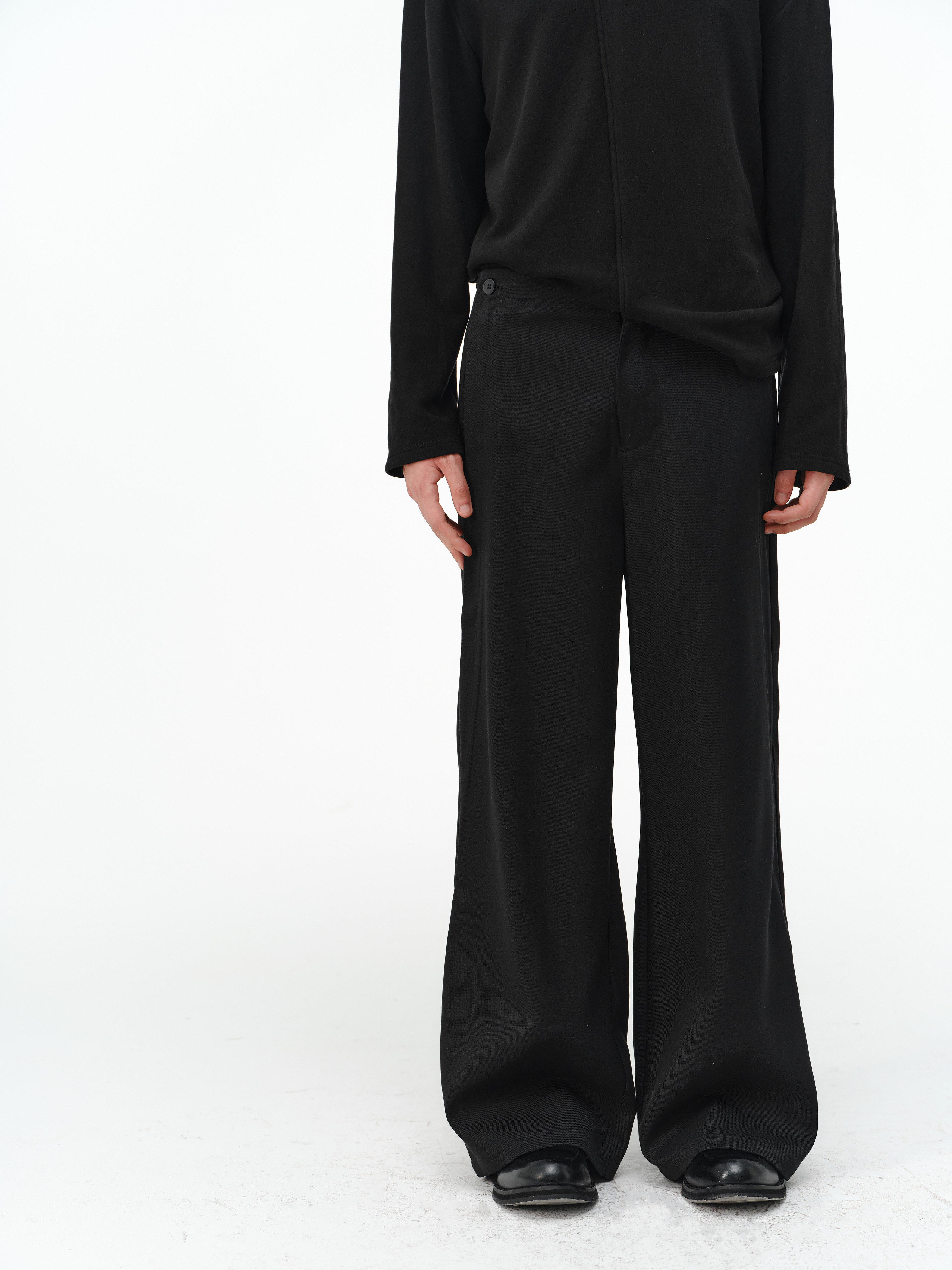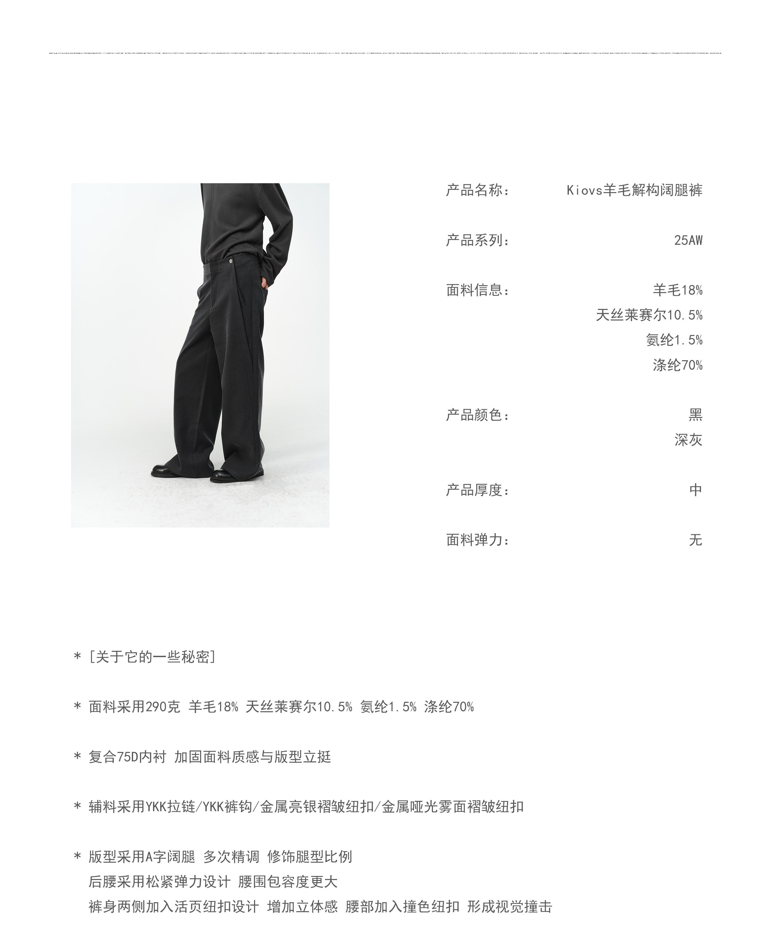 「Kiov.S」Wool Lyocell Loose Button Wide-Leg Trousers Two-Color Pants