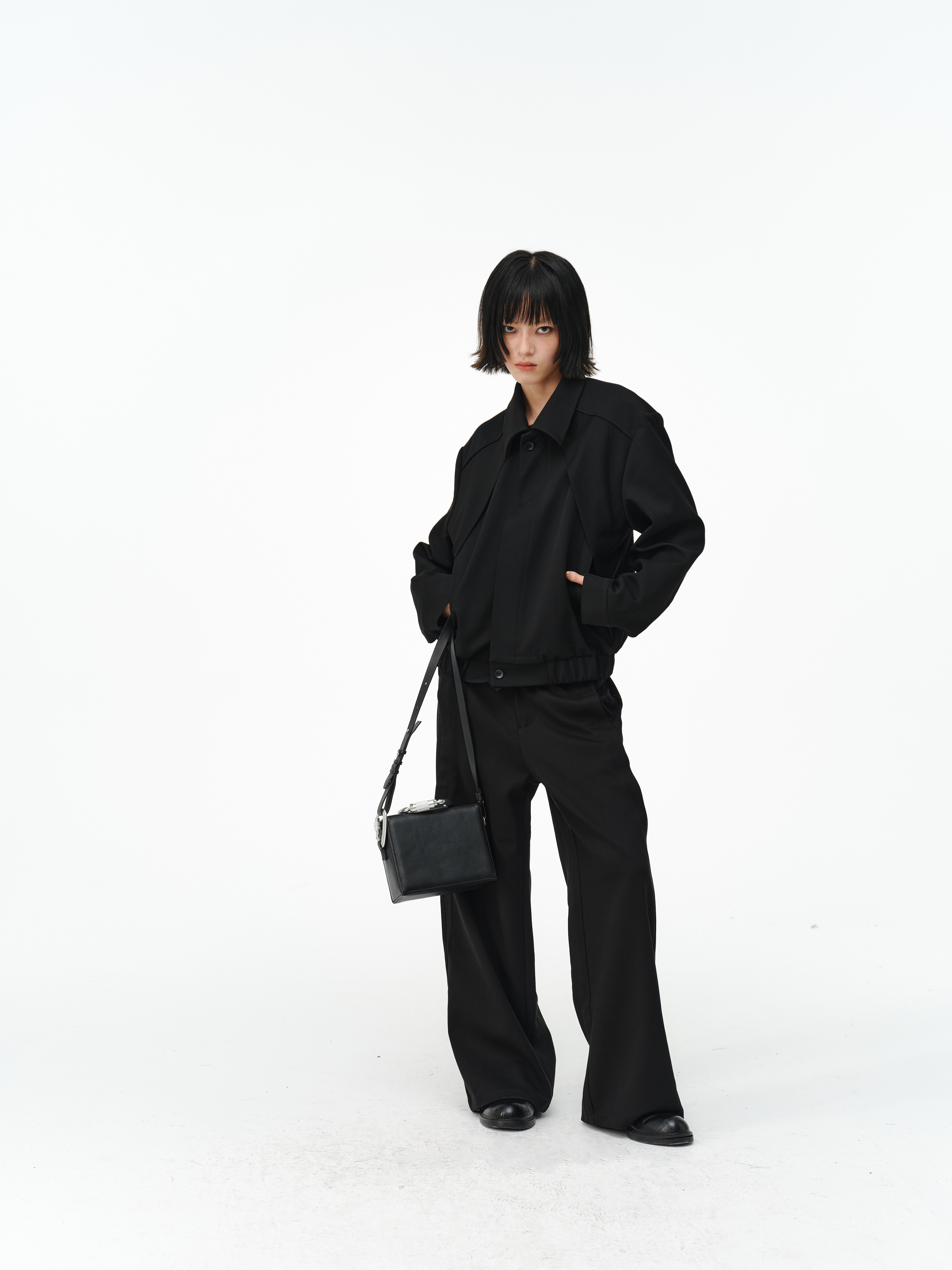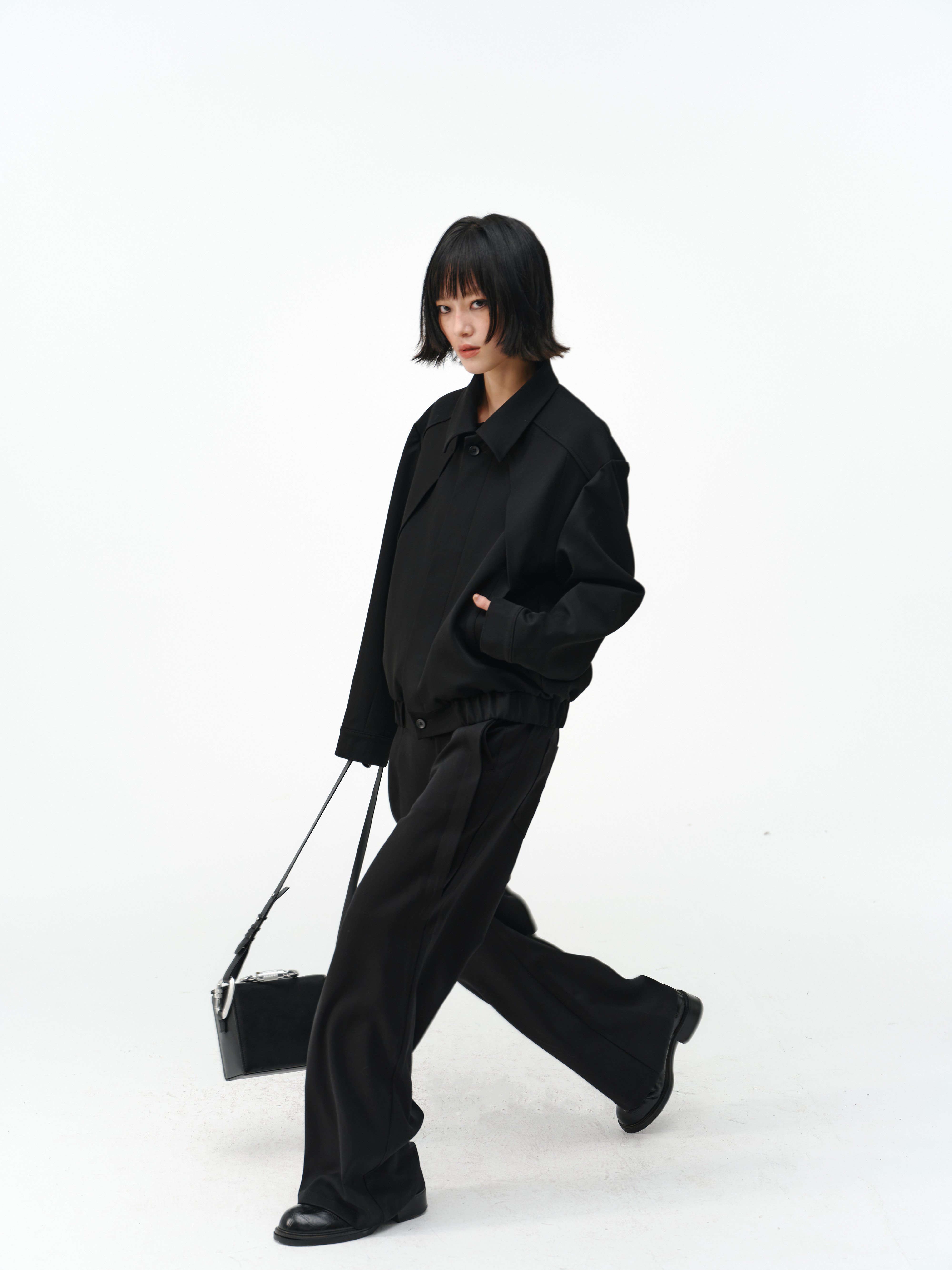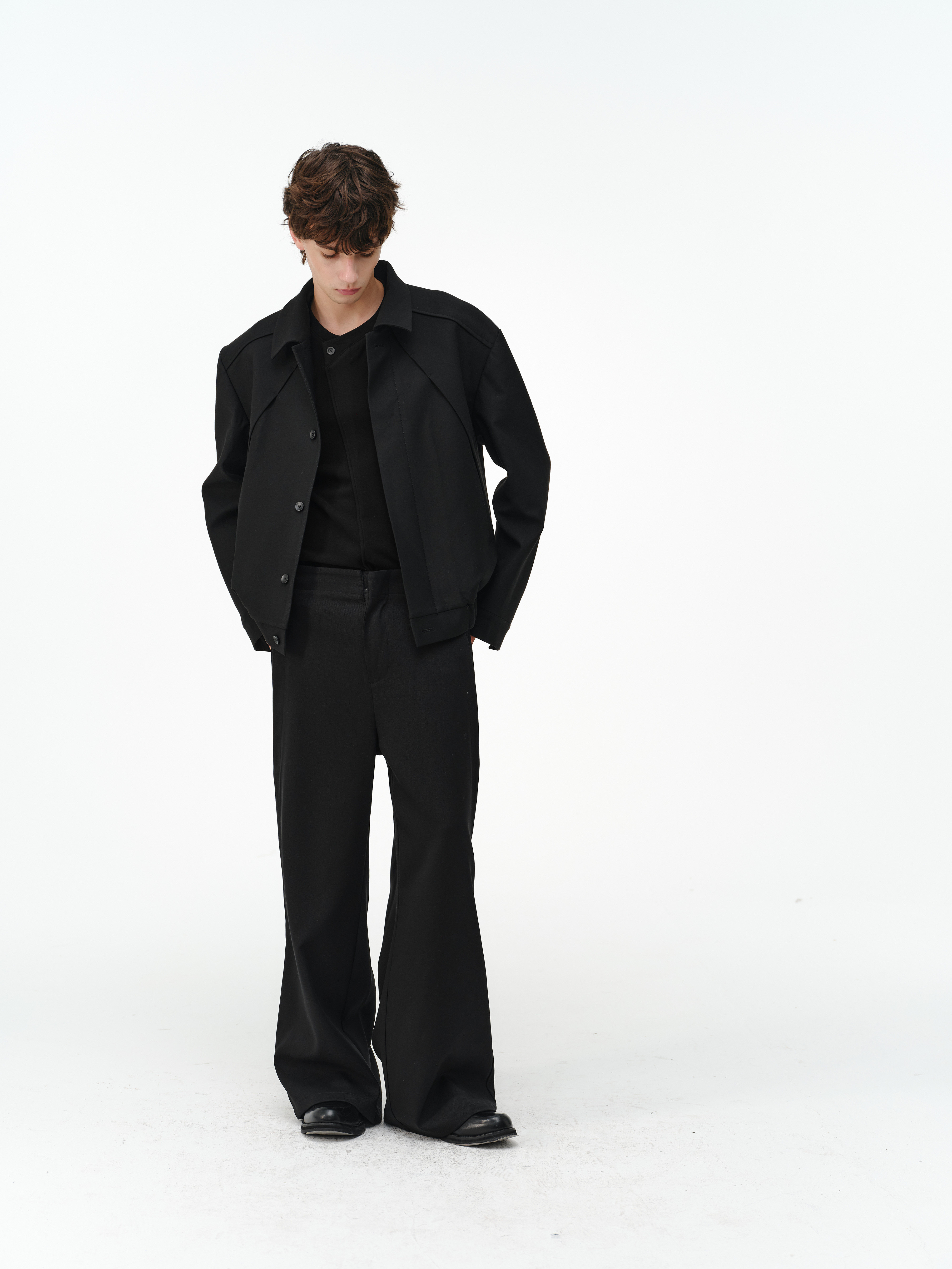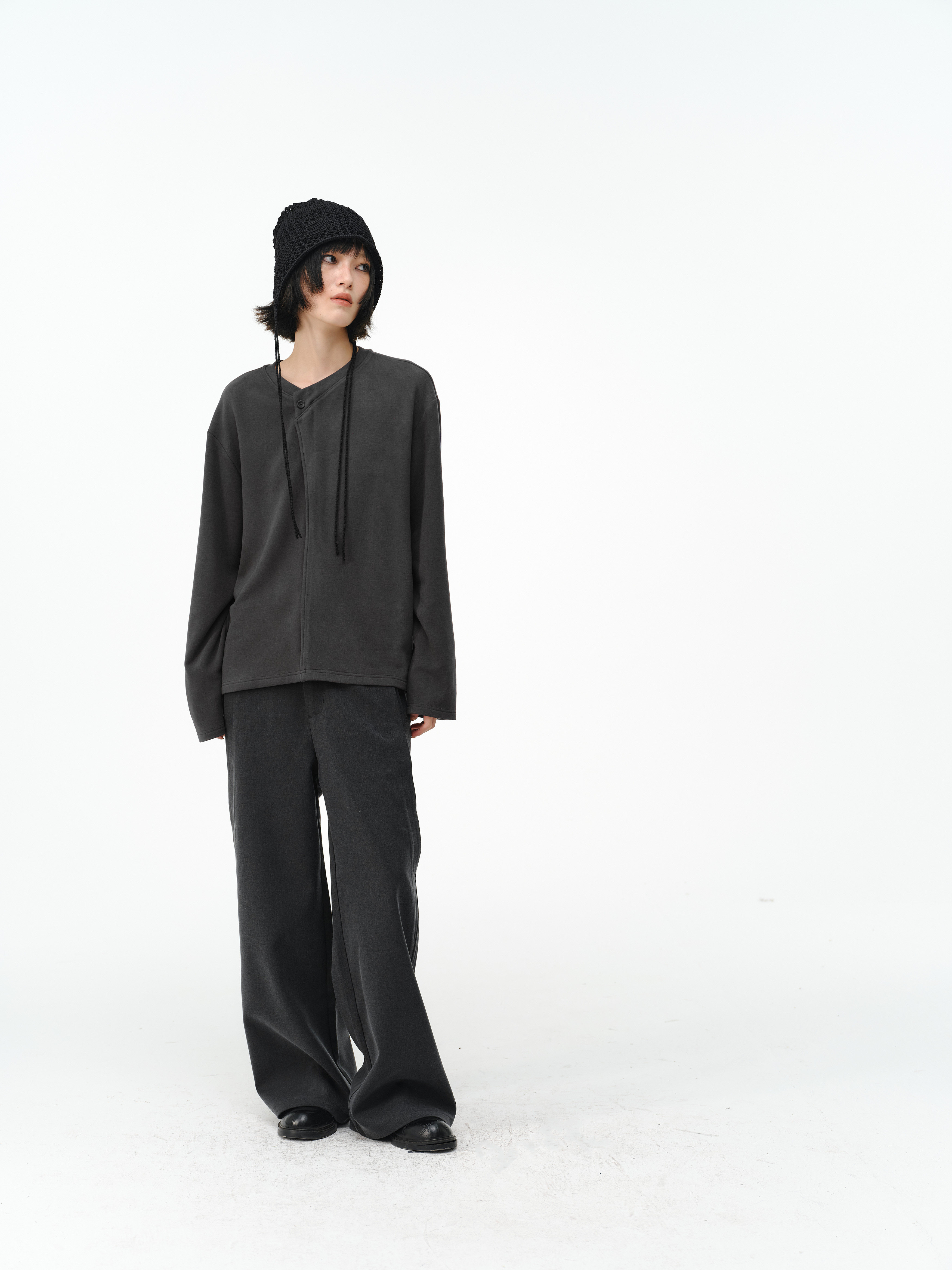 「Kiov.S」Wool Lyocell Loose Button Wide-Leg Trousers Two-Color Pants
