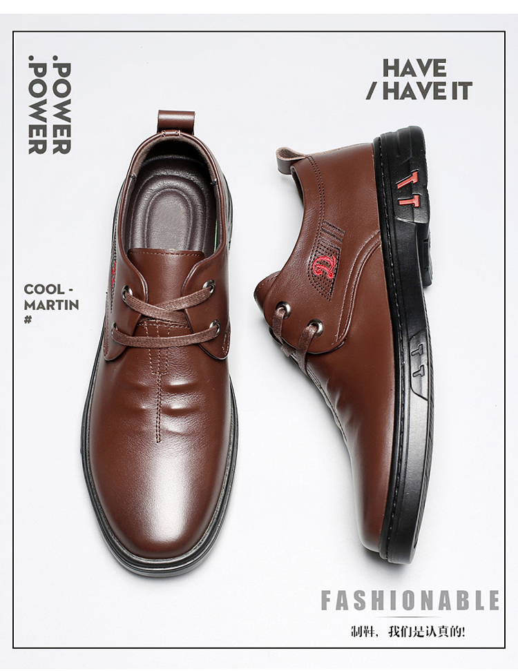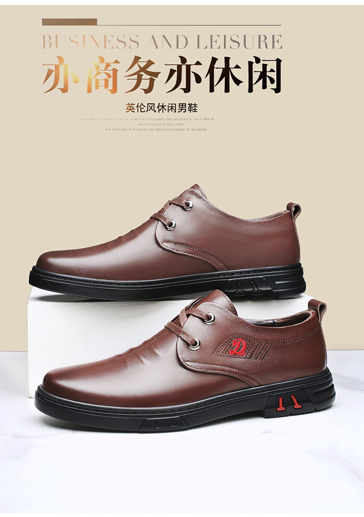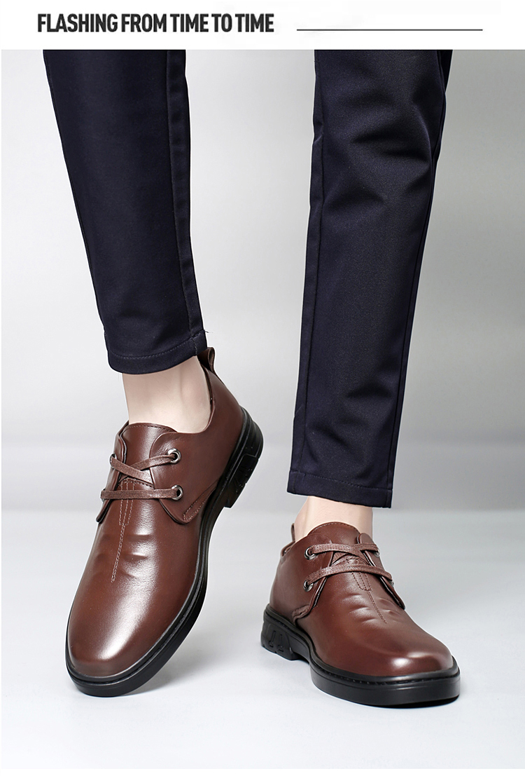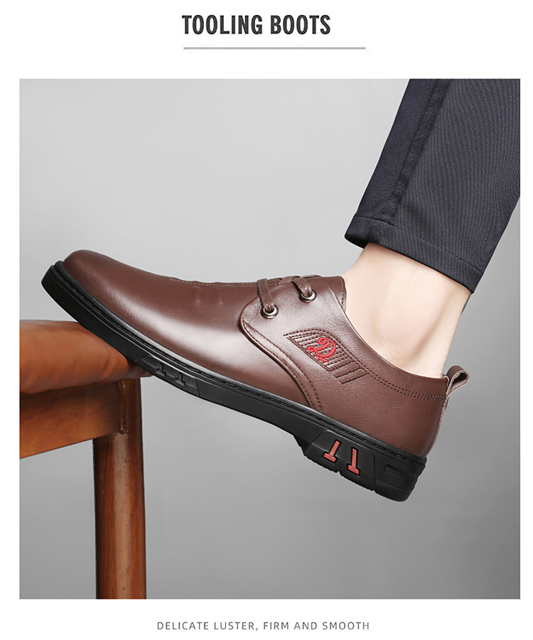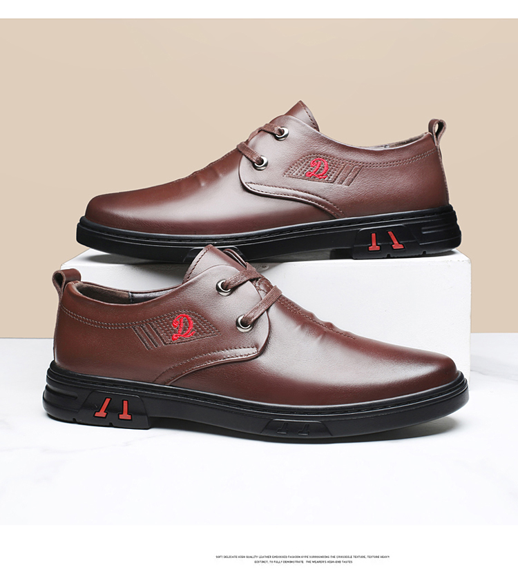 Woodpecker Men's Shoes, New Autumn Casual Leather Shoes, Men's Business Genuine Leather Breathable Soft-Soled Lace-Up Large Size Dad Shoes
