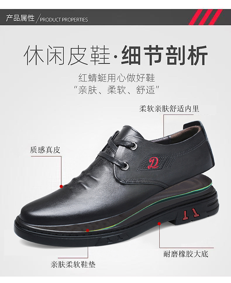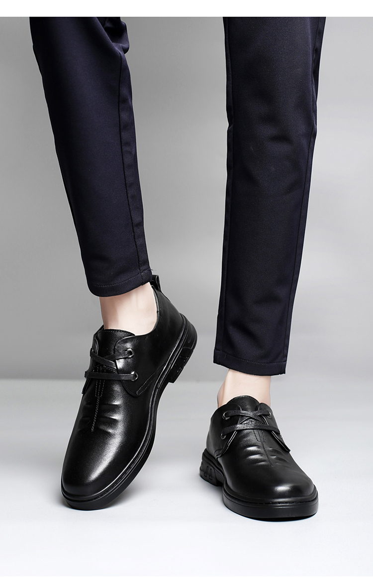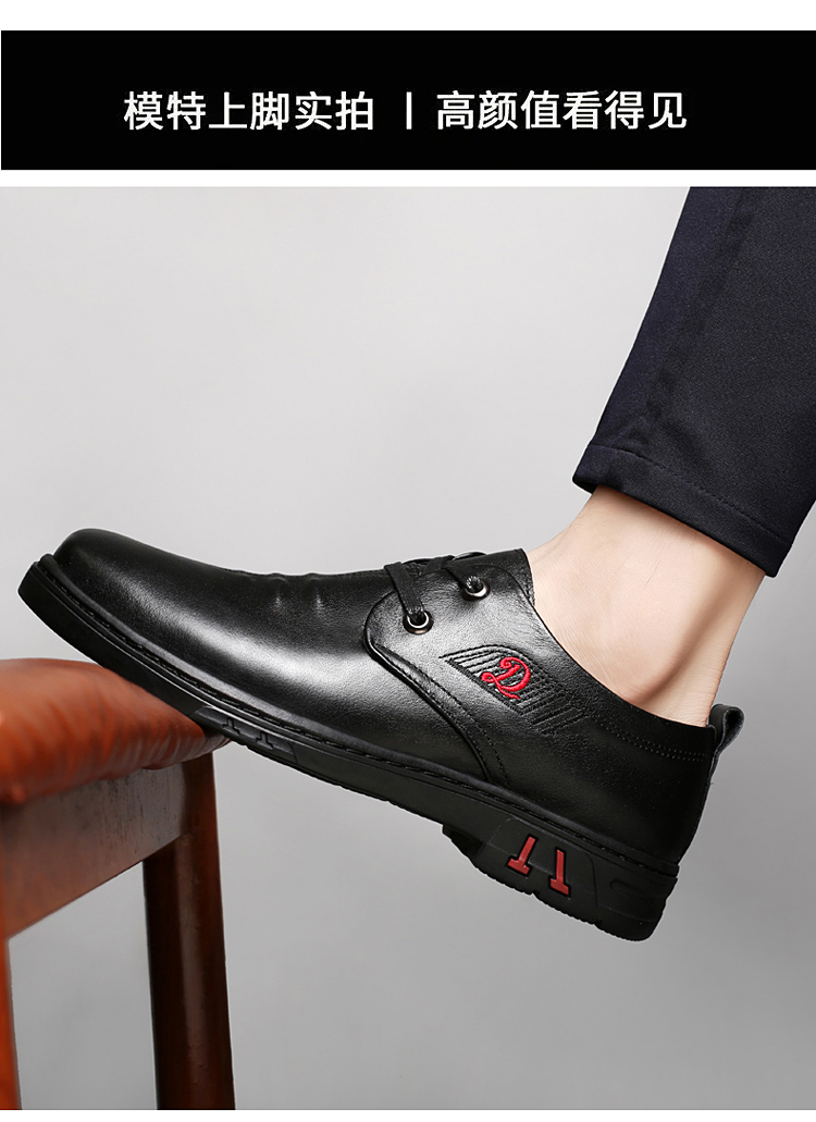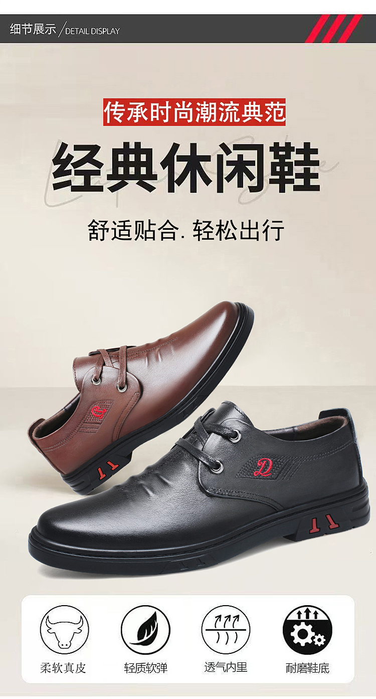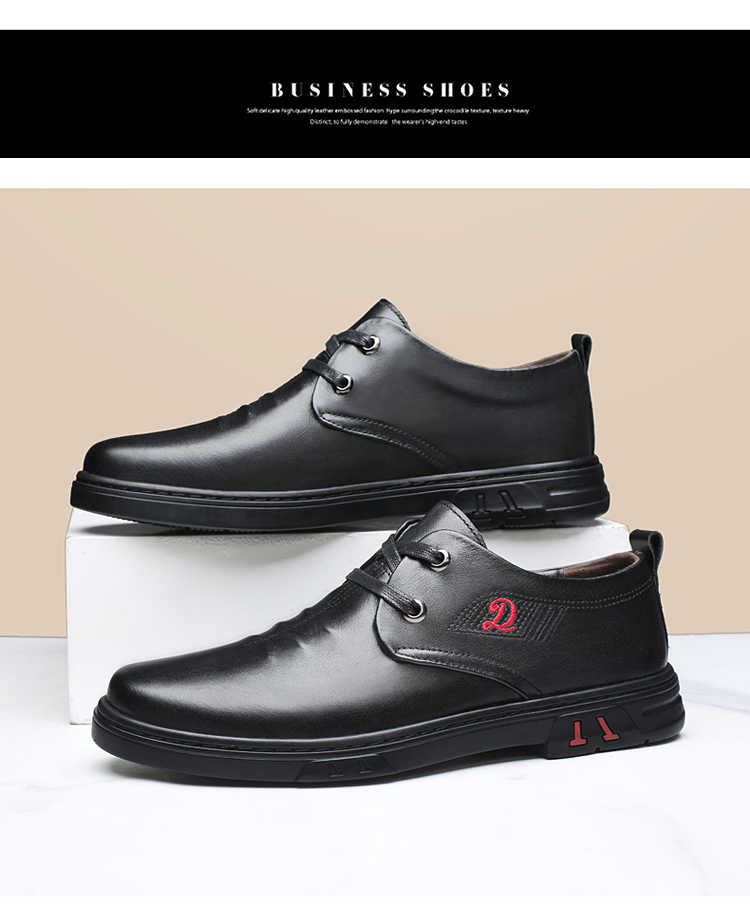 Woodpecker Men's Shoes, New Autumn Casual Leather Shoes, Men's Business Genuine Leather Breathable Soft-Soled Lace-Up Large Size Dad Shoes