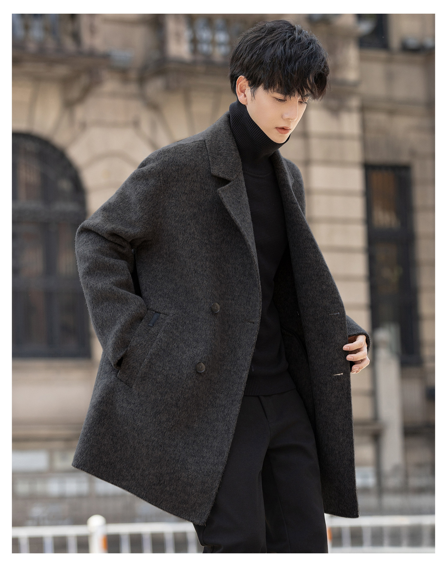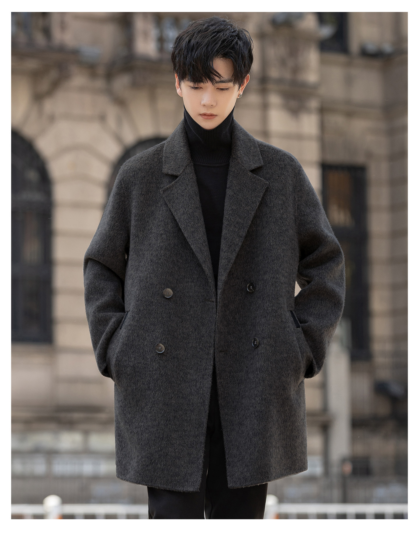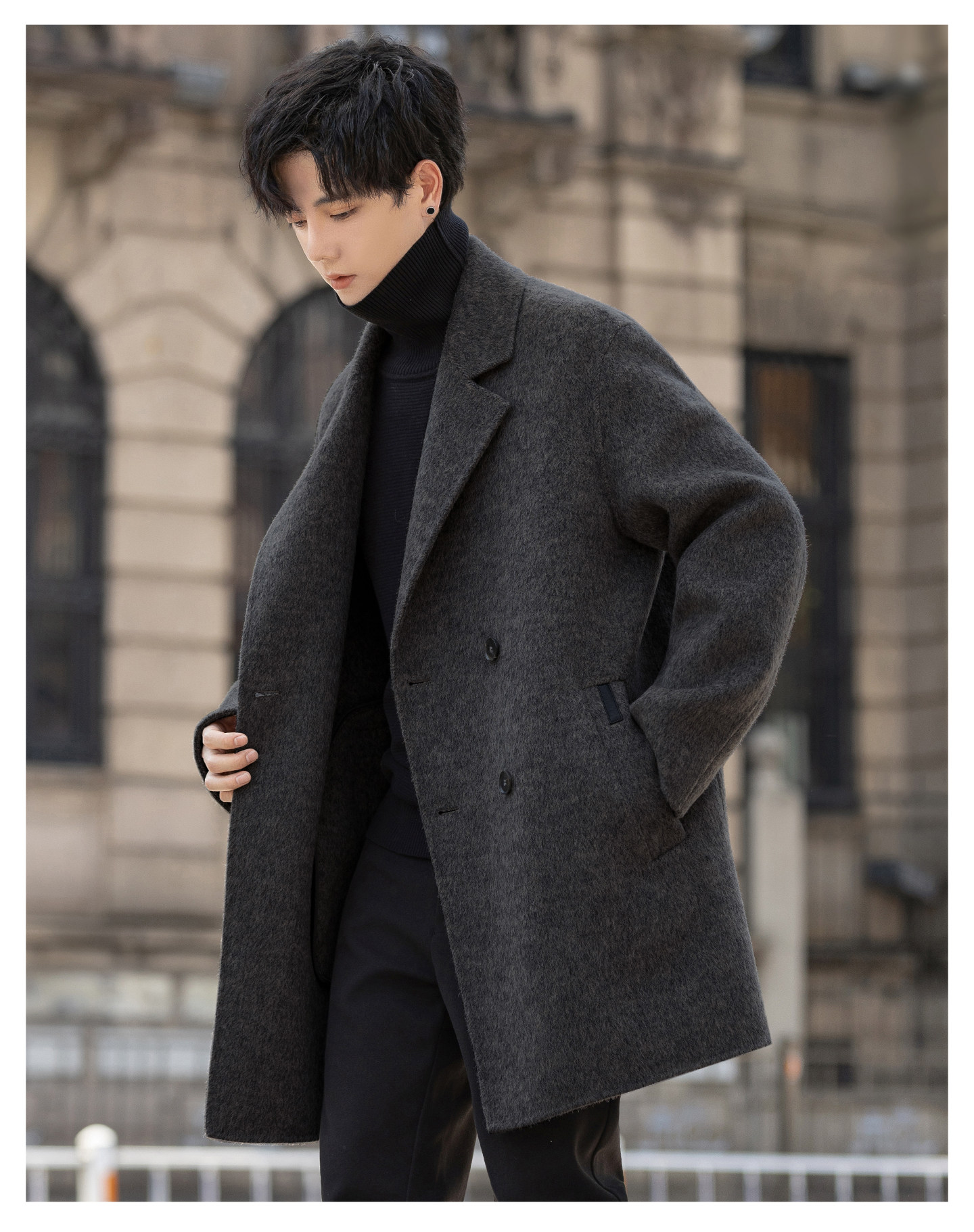 Double-Sided Fleece Coat for Men 2025 New Autumn and Winter Thickened Mid-Length Trench Coat Woolen Overcoat with a High-End Feel