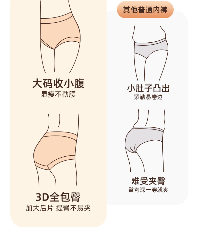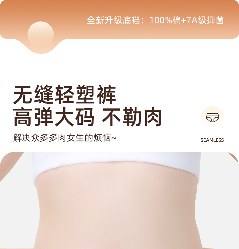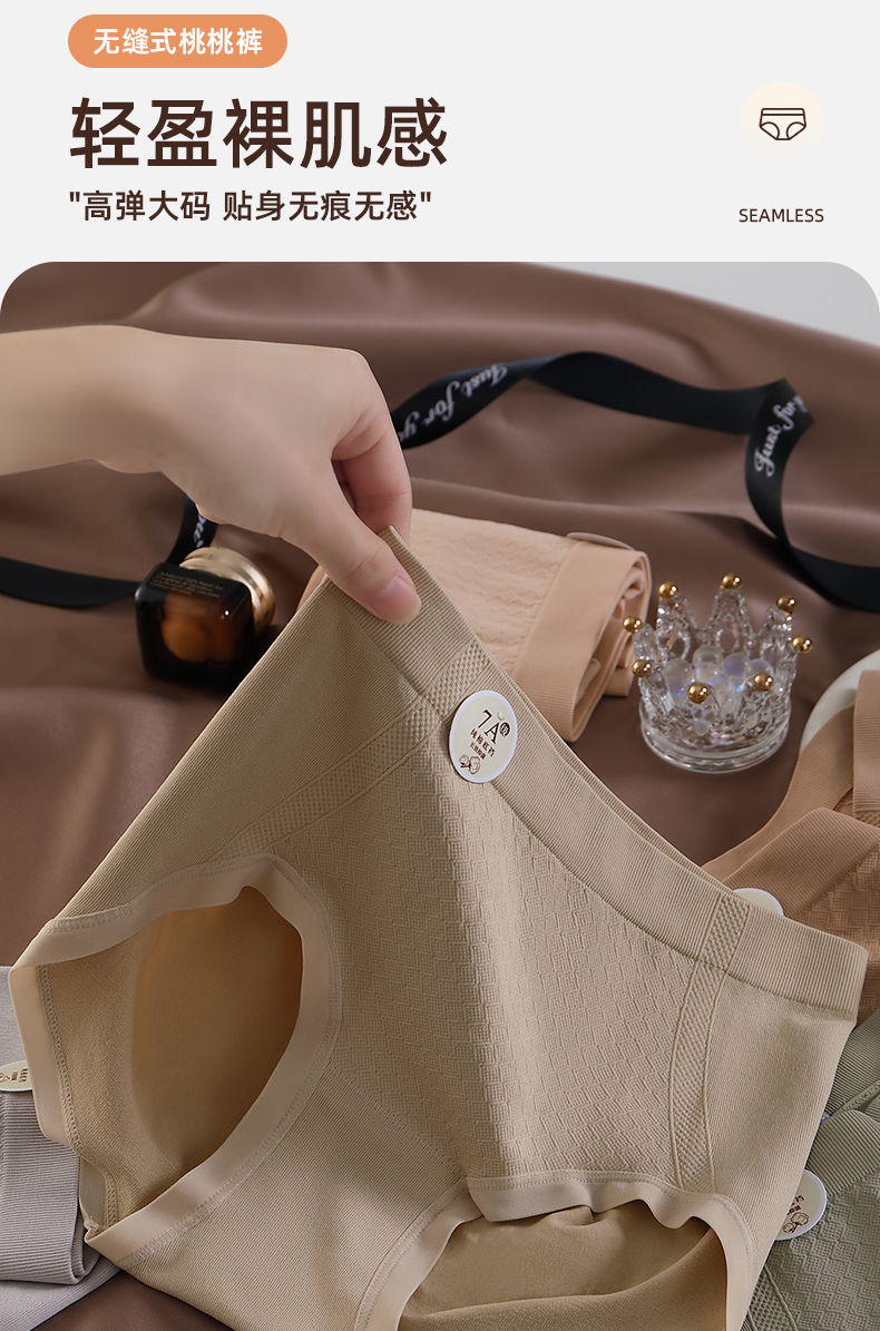 Large Butt Non-Binding Panties for Women, Slimming, High Elasticity, Non-Constricting Waist, 7A Antibacterial Pure Cotton, Antibacterial Crotch, Seamless Briefs