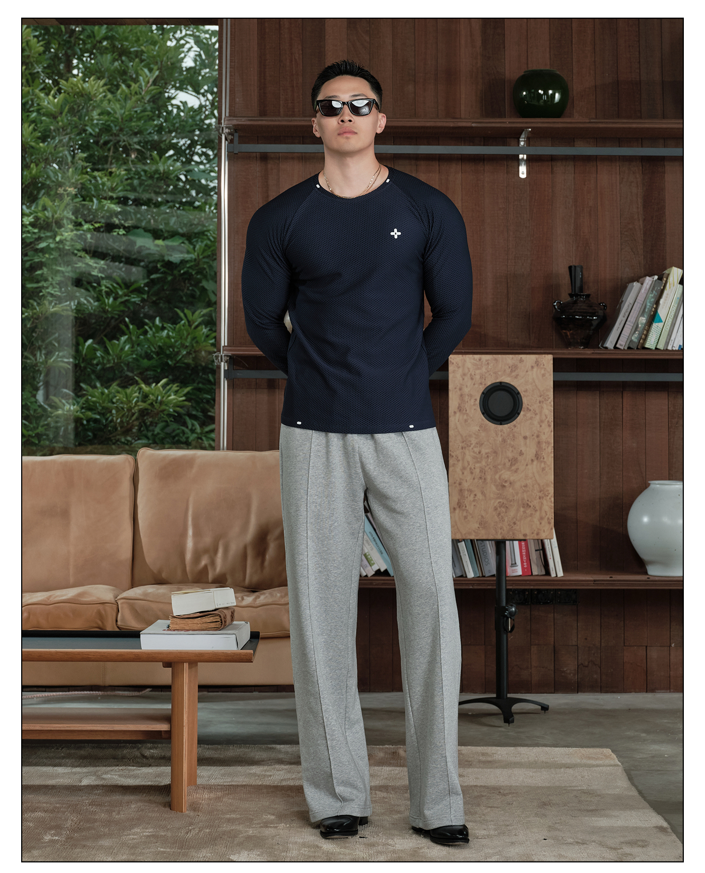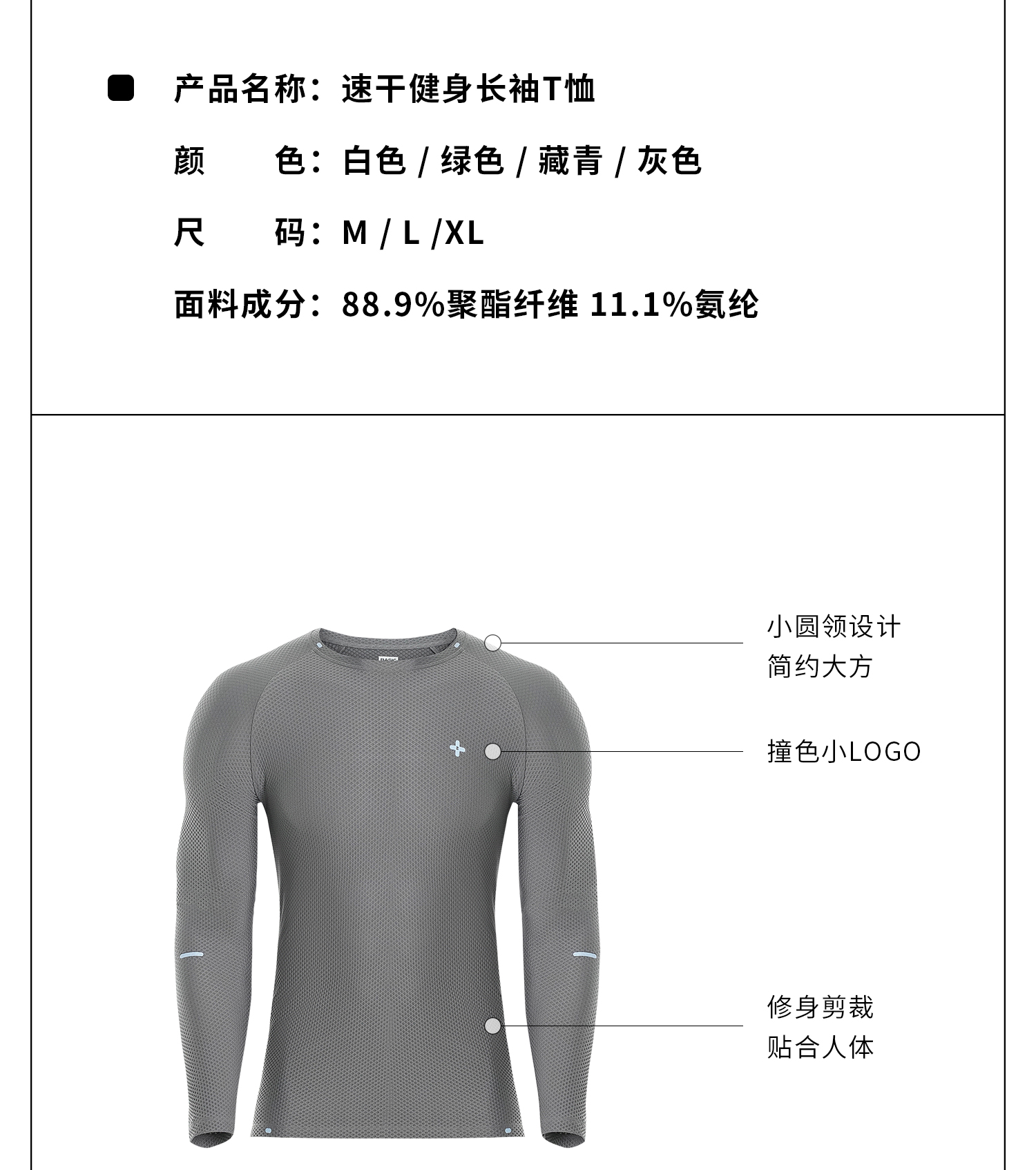 Basic Unit Mesh Stretch Tight-Fitting Sports T-Shirt for Men, Long-Sleeved Fitness Clothing That Makes You Look Bigger