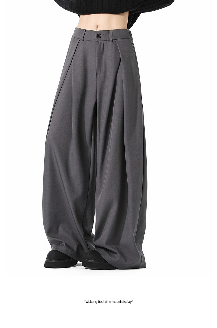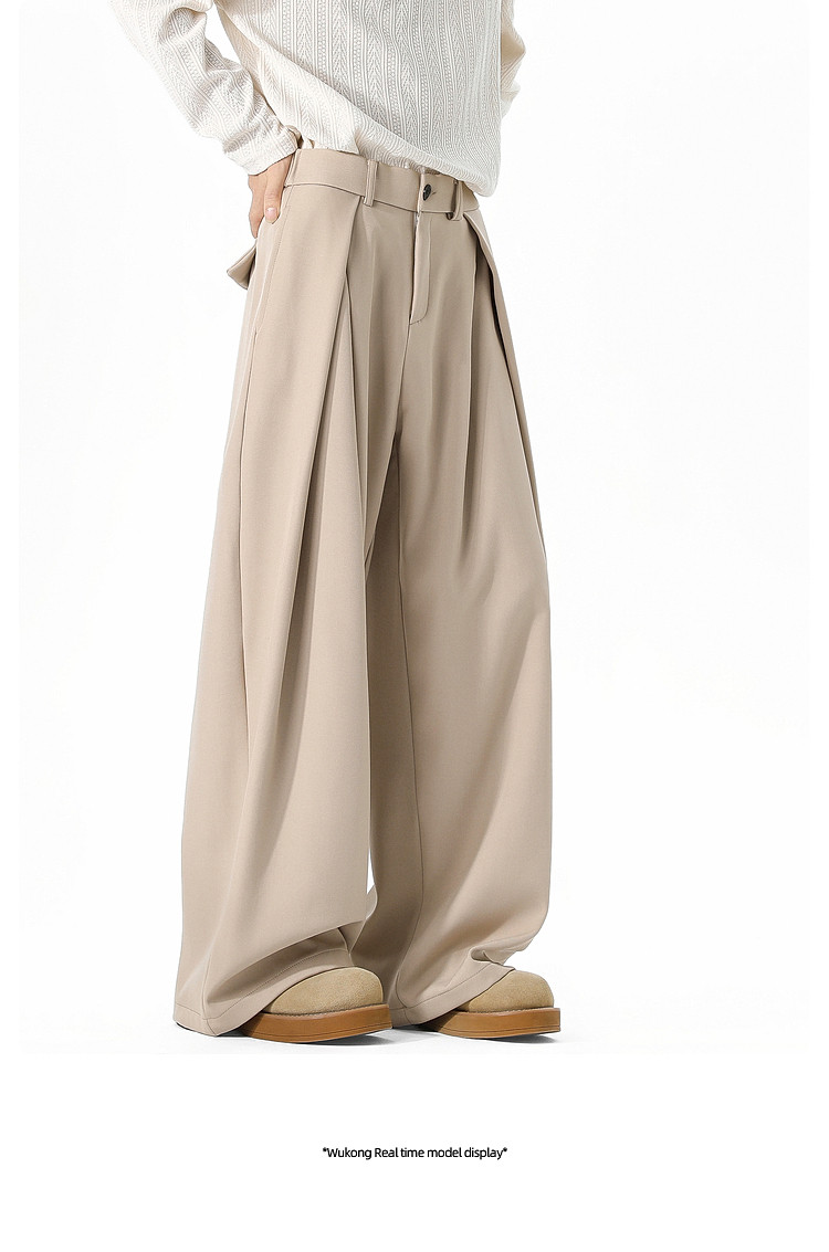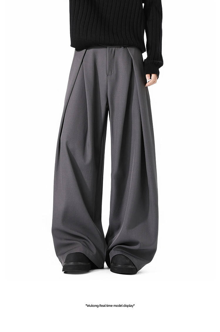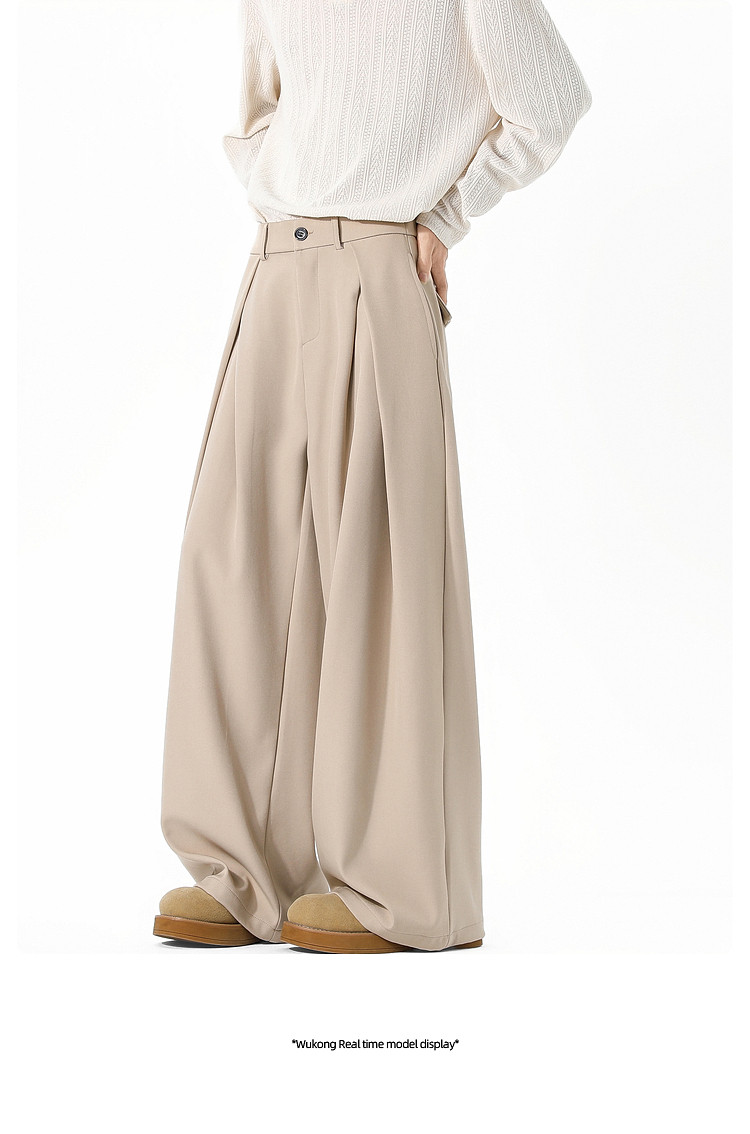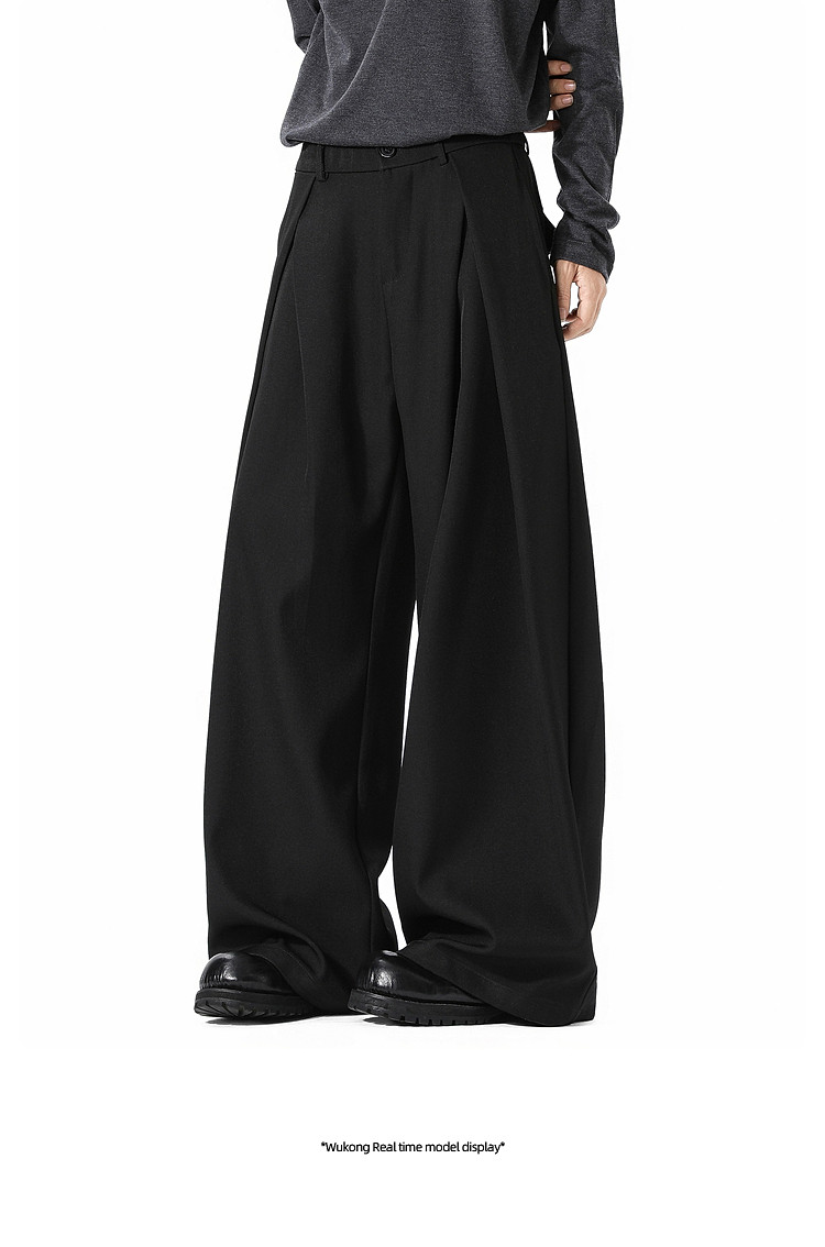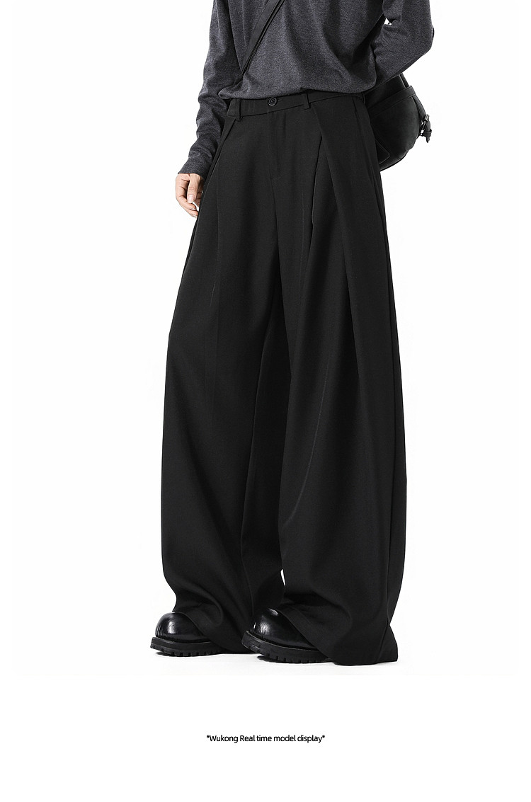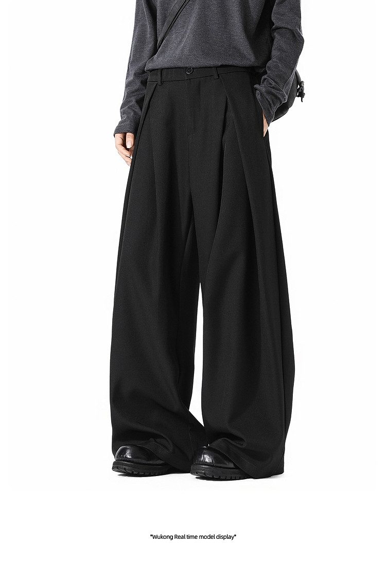 Wukong Has in Stock Retro Trendy High-End Pleated Drape Trousers for Men and Women, American-Style Loose Versatile Wide-Leg Casual Pants