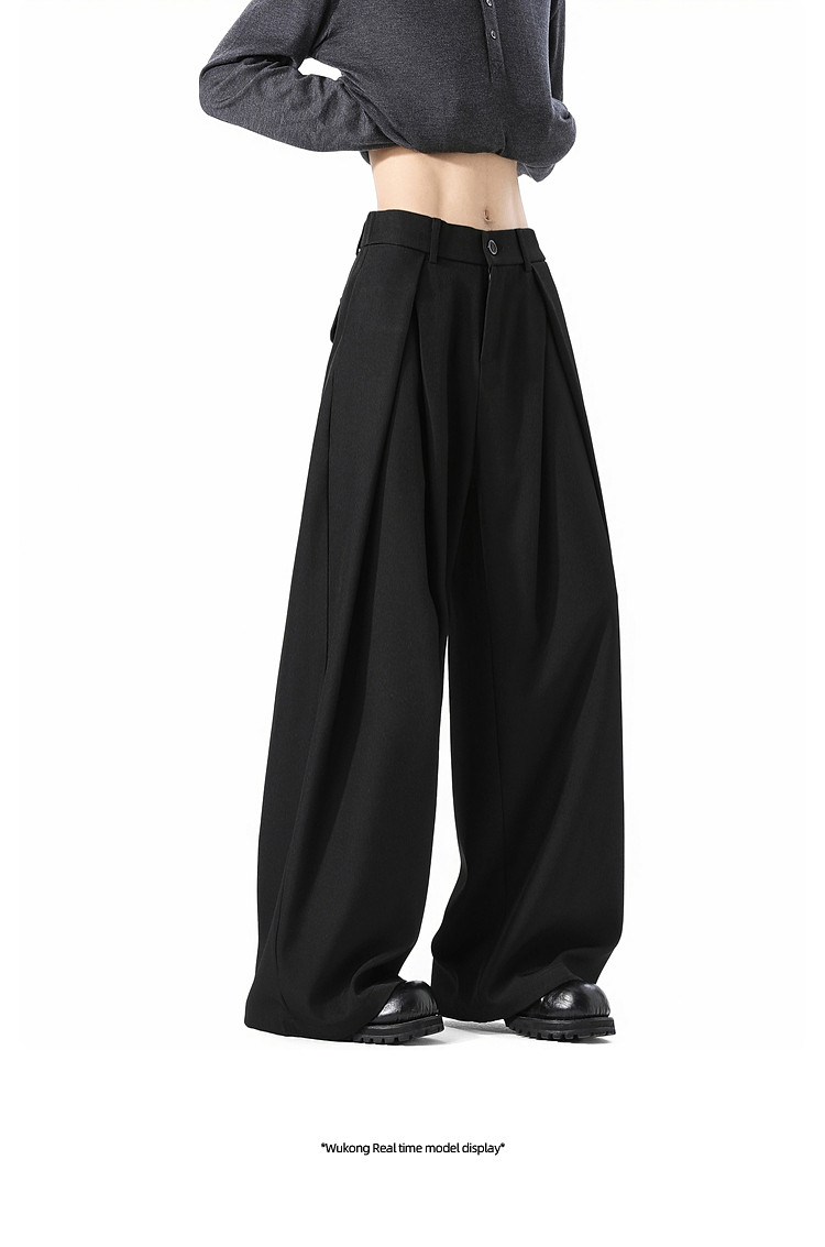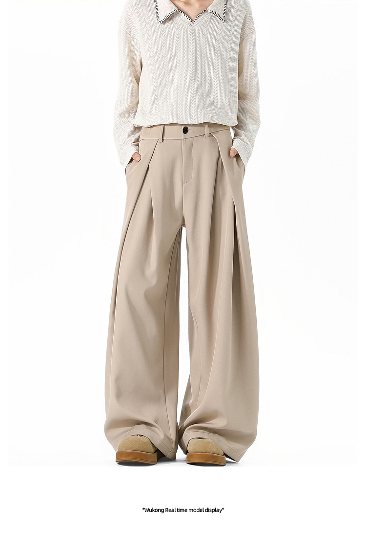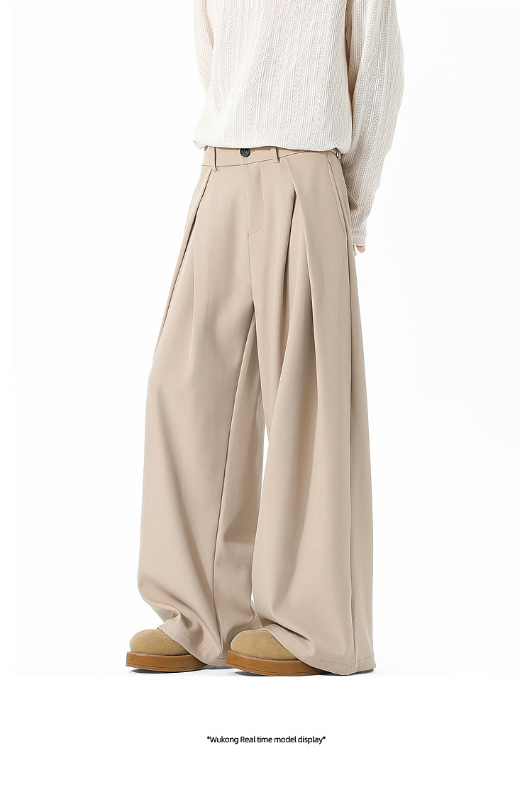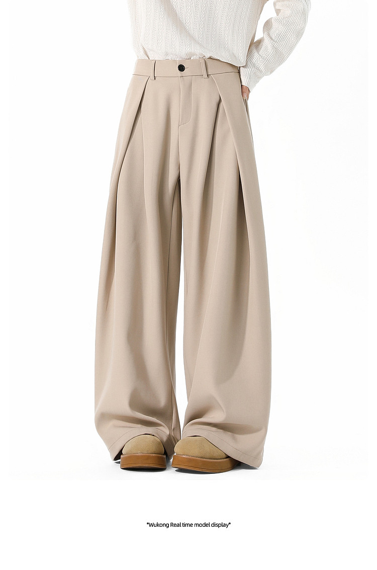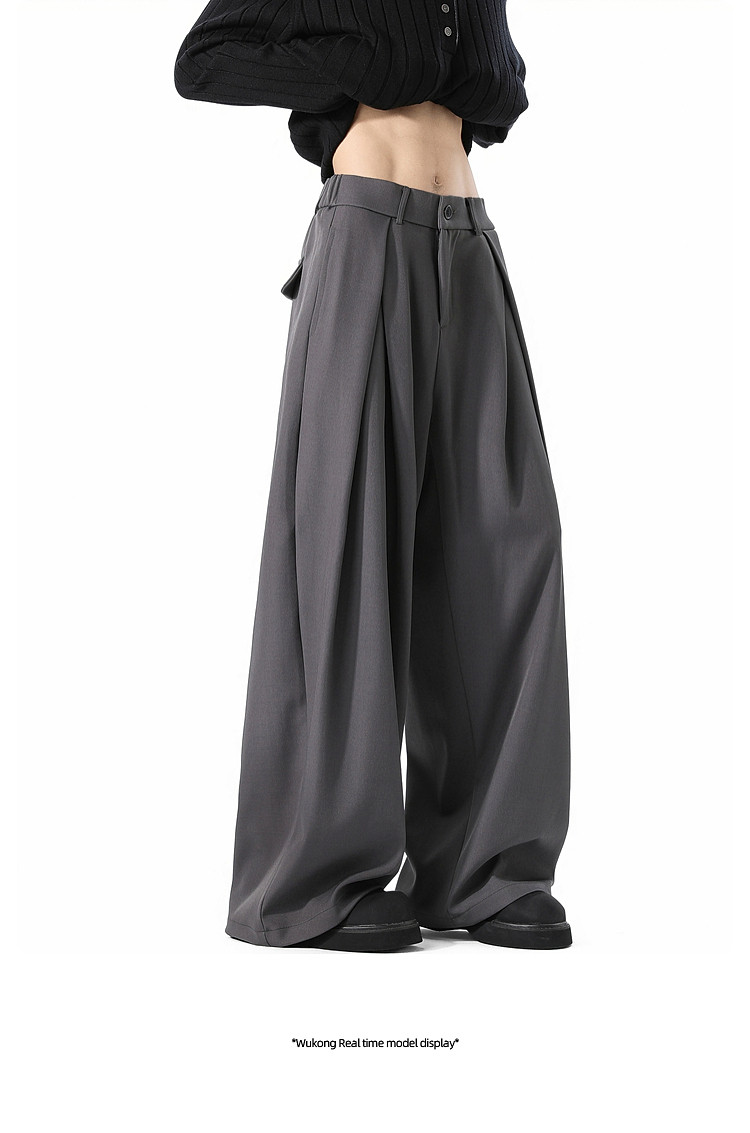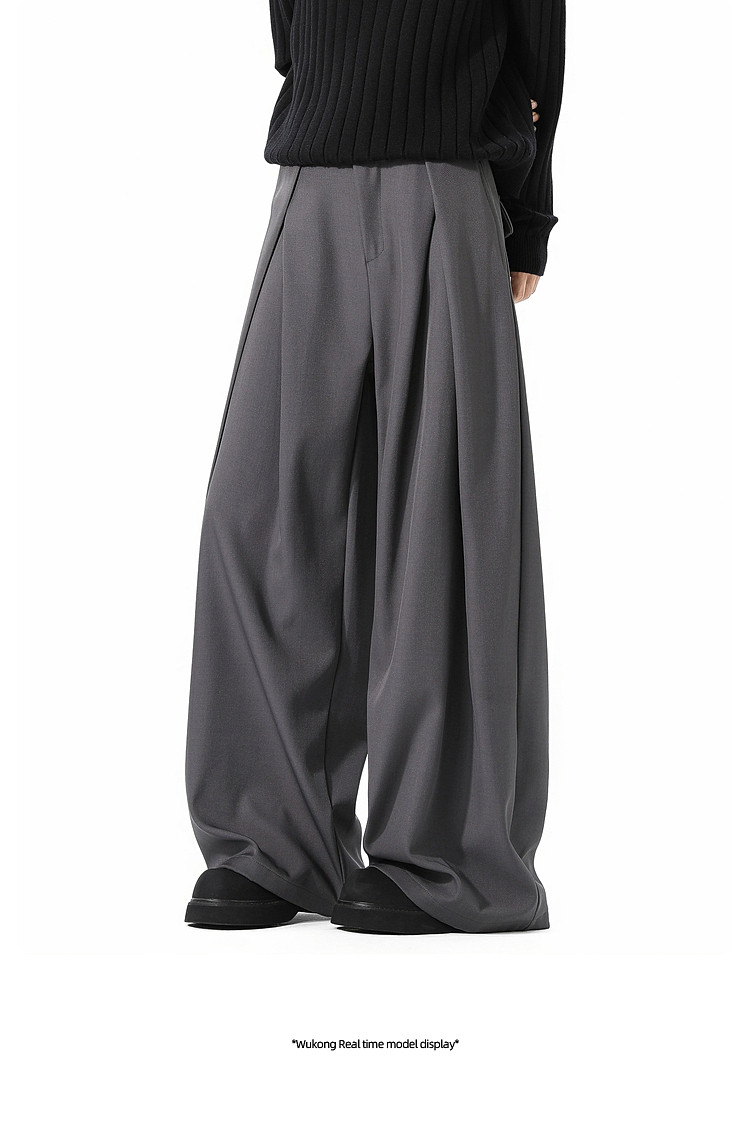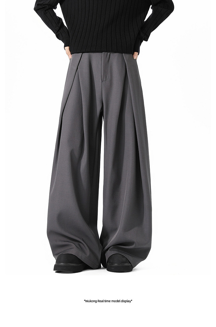 Wukong Has in Stock Retro Trendy High-End Pleated Drape Trousers for Men and Women, American-Style Loose Versatile Wide-Leg Casual Pants