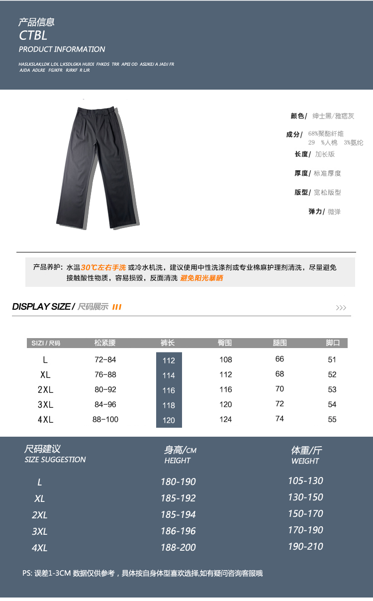 Long-Legged Uncle Tall Men's Extra-Long Pants Autumn Business Casual Extra-Long Dress Pants Loose Straight-Leg Extra-Long Men's Pants