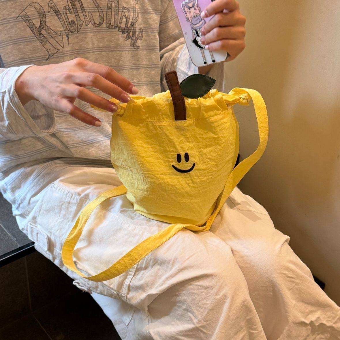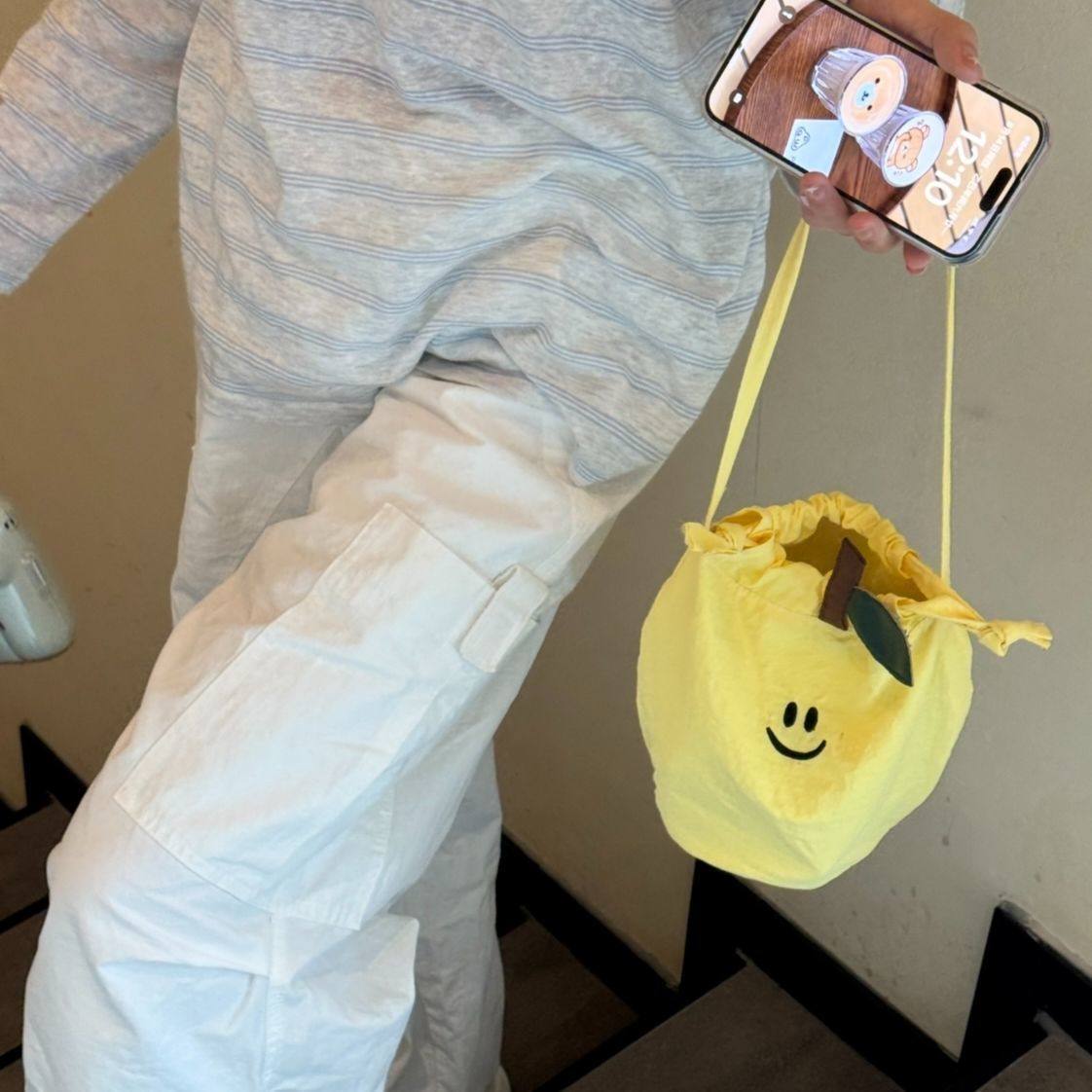 2025 New Model Local Market Children's Snow Pear Drawstring Crossbody Bag, Niche Dopamine Colorful Vacation Small Bag