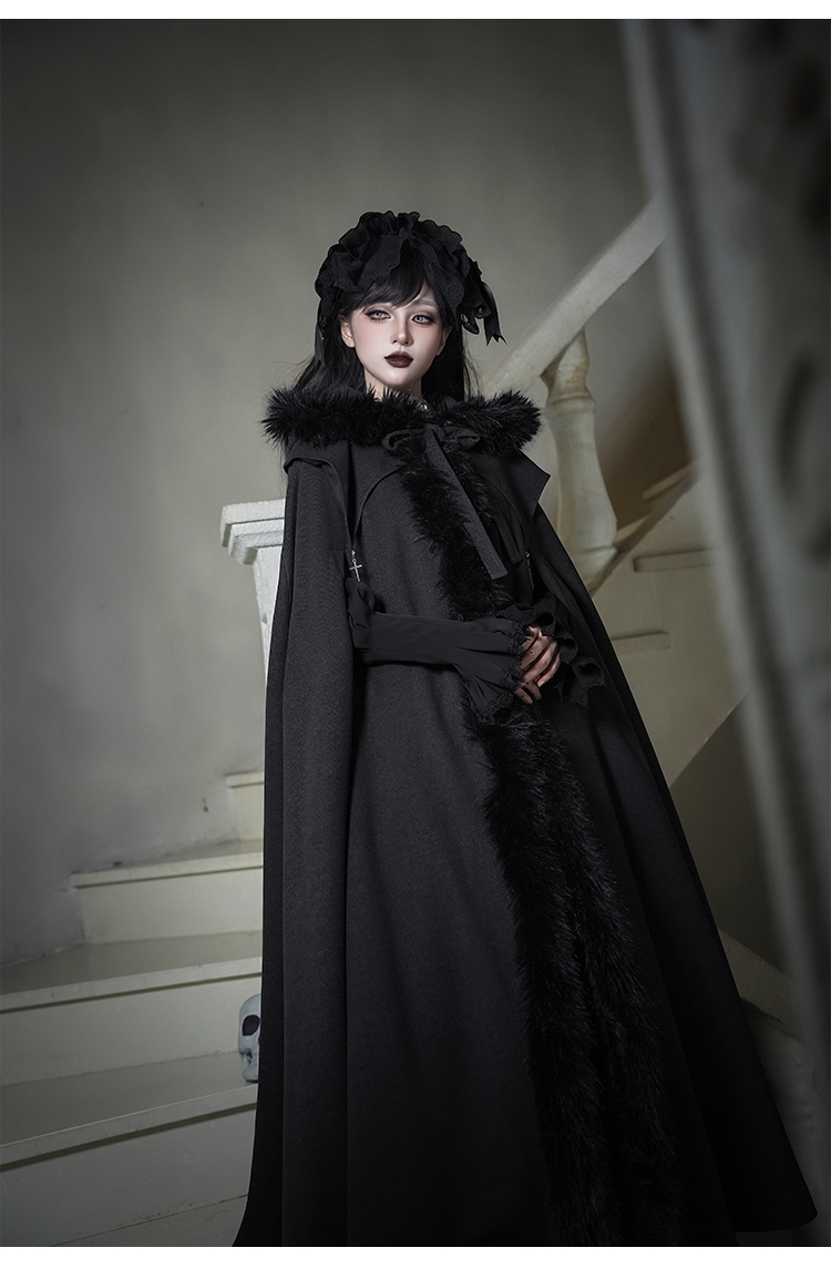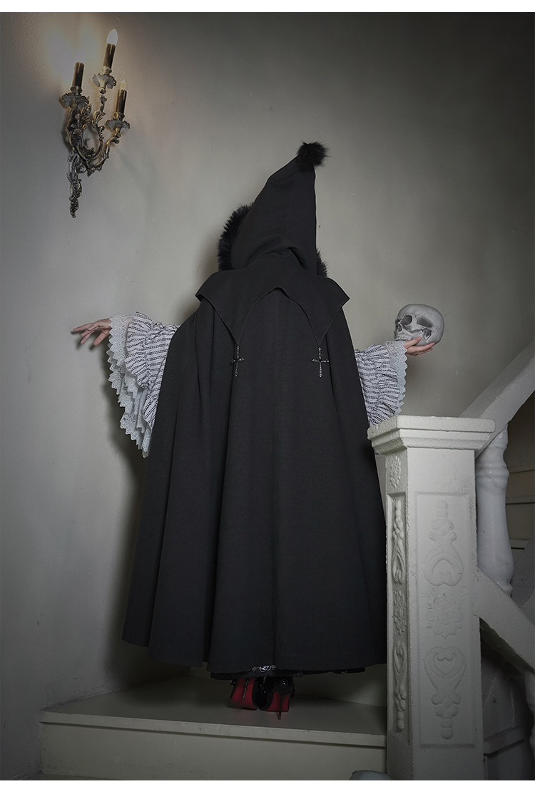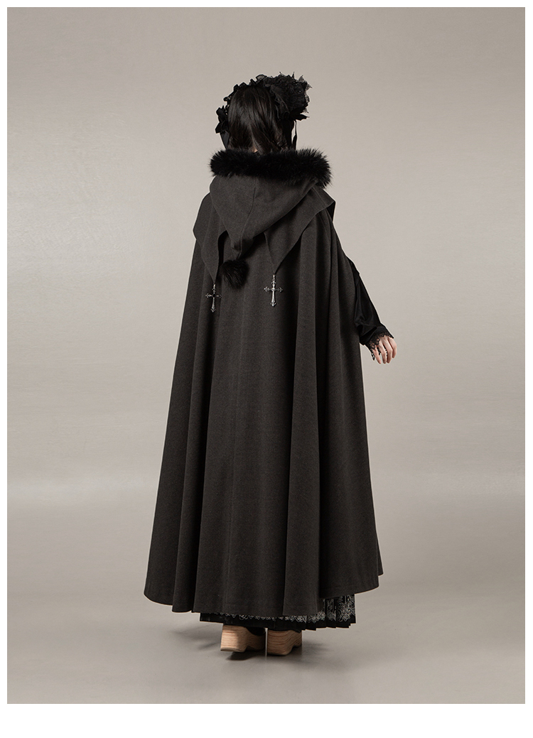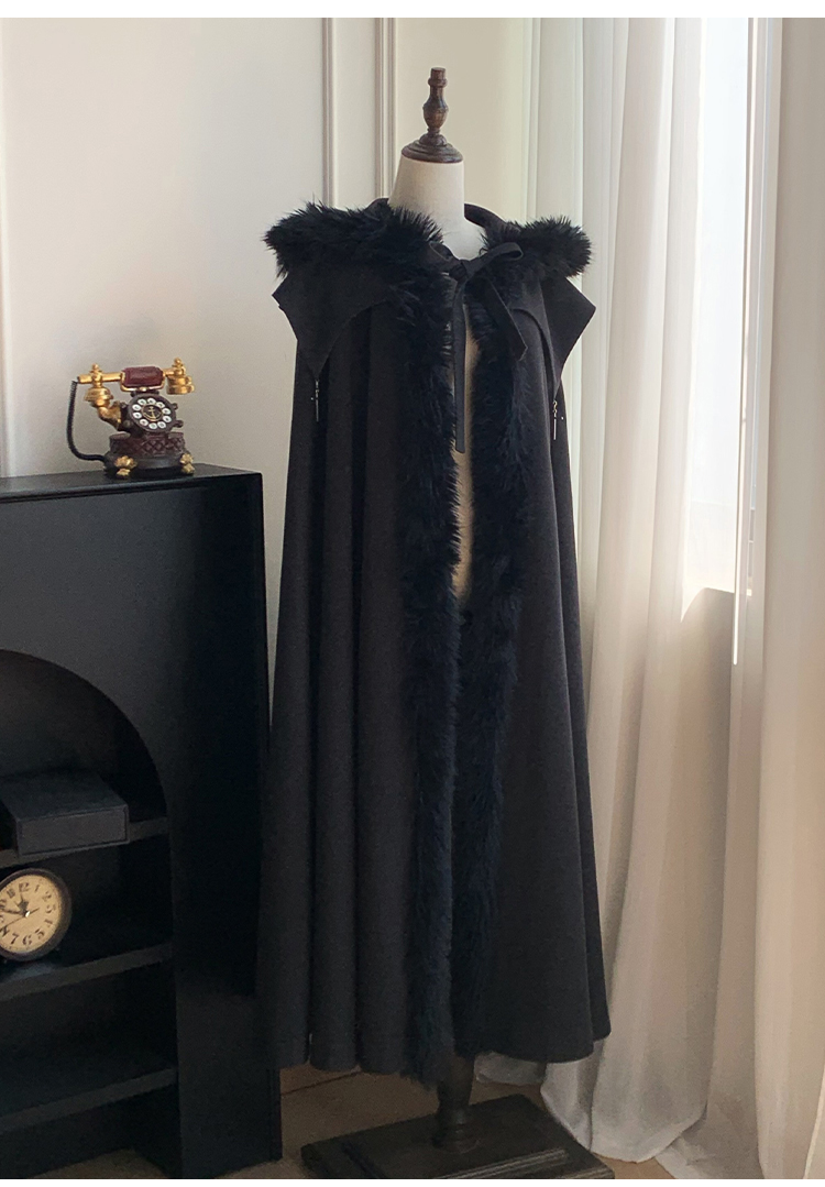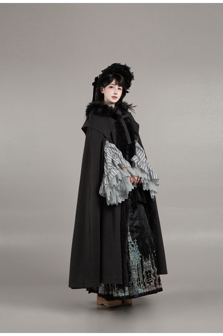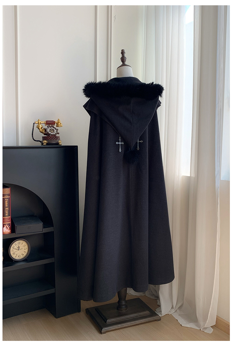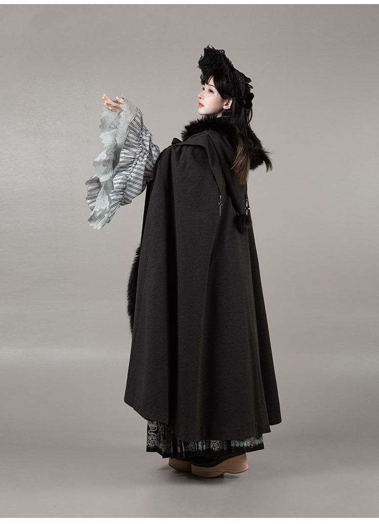 Letters and Poems·Uyeti |Wp Original Sub-Brand Dark Gothic Fleece-Lined Hooded Long Cloak for Autumn and Winter Warmth