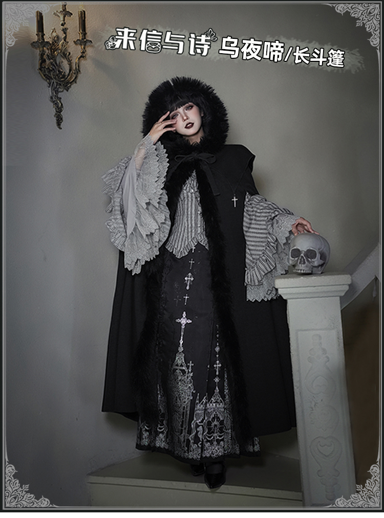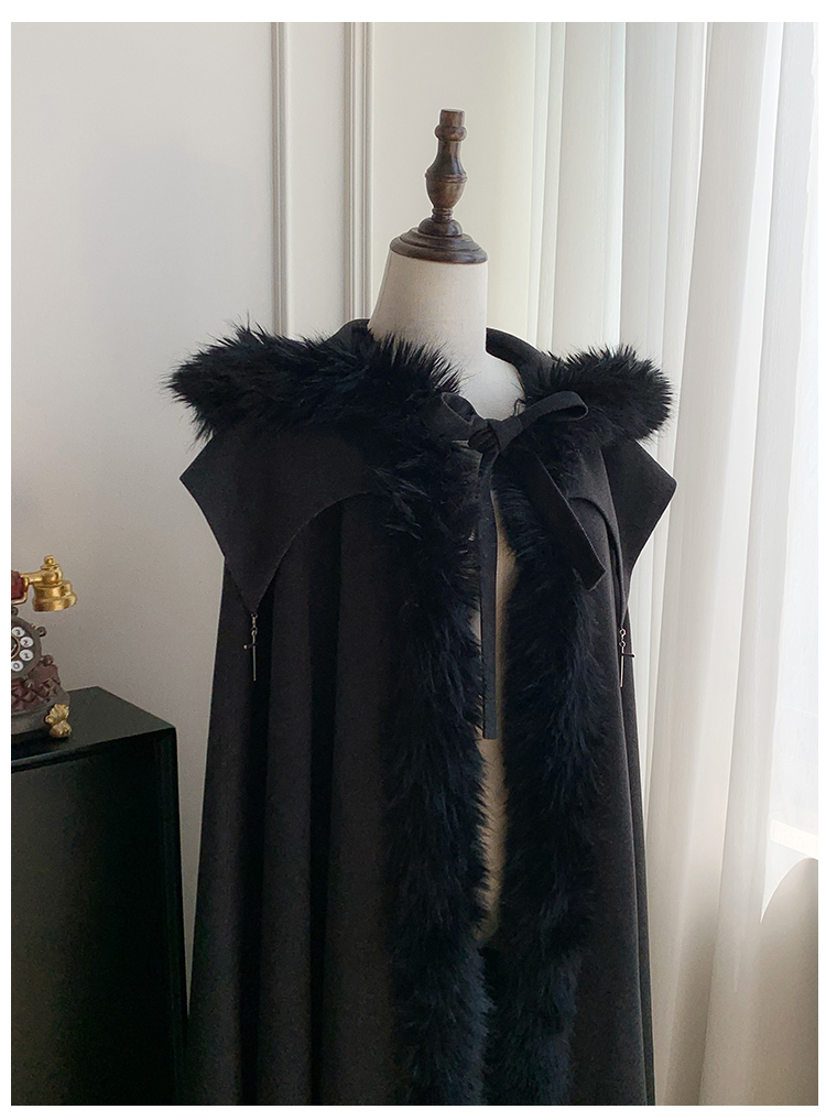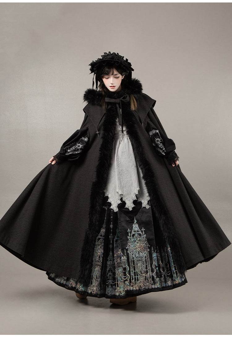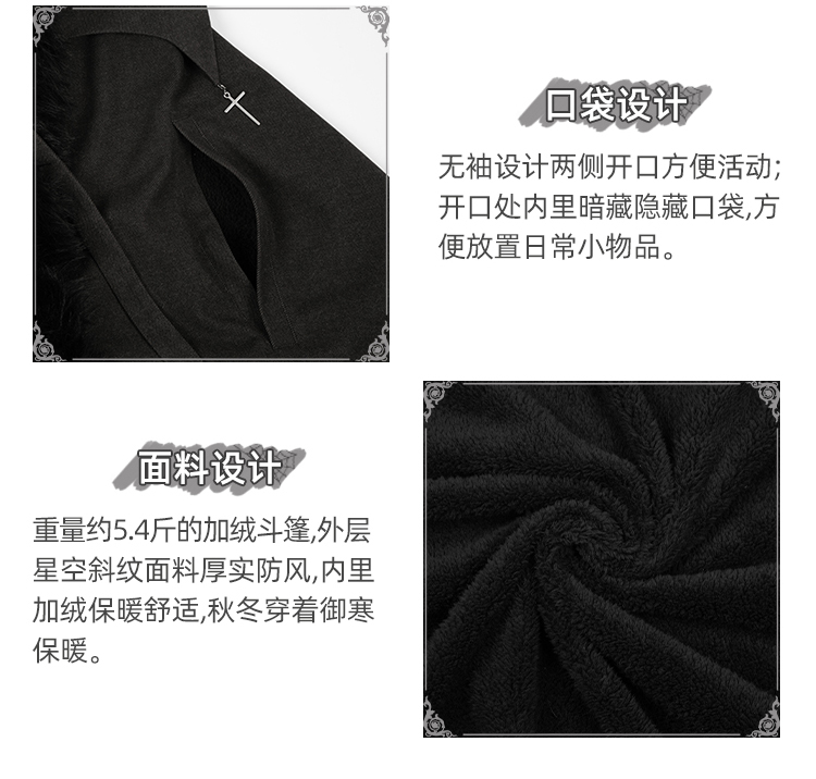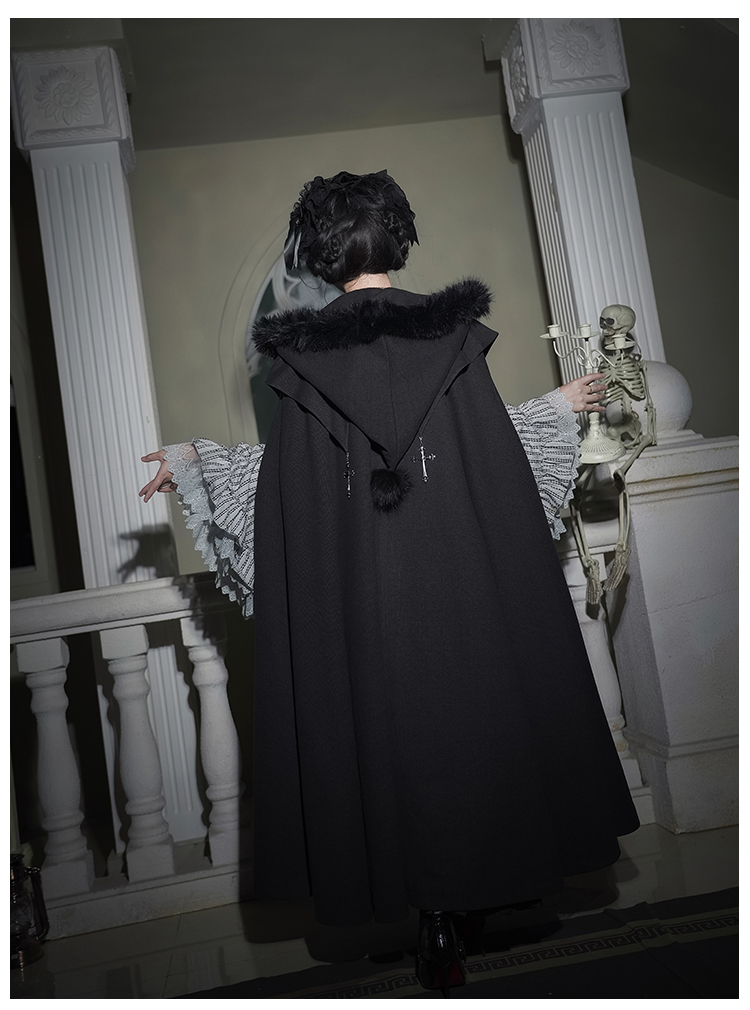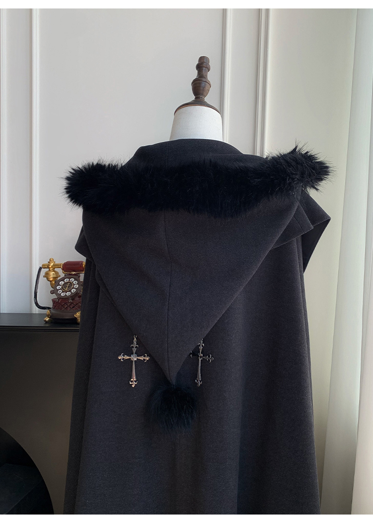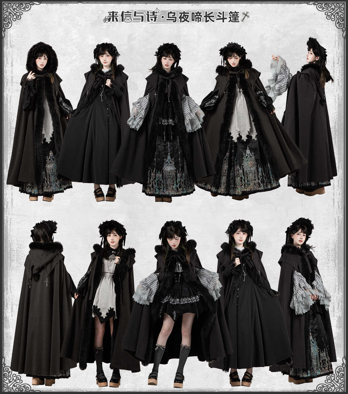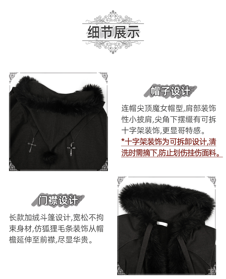 Letters and Poems·Uyeti |Wp Original Sub-Brand Dark Gothic Fleece-Lined Hooded Long Cloak for Autumn and Winter Warmth