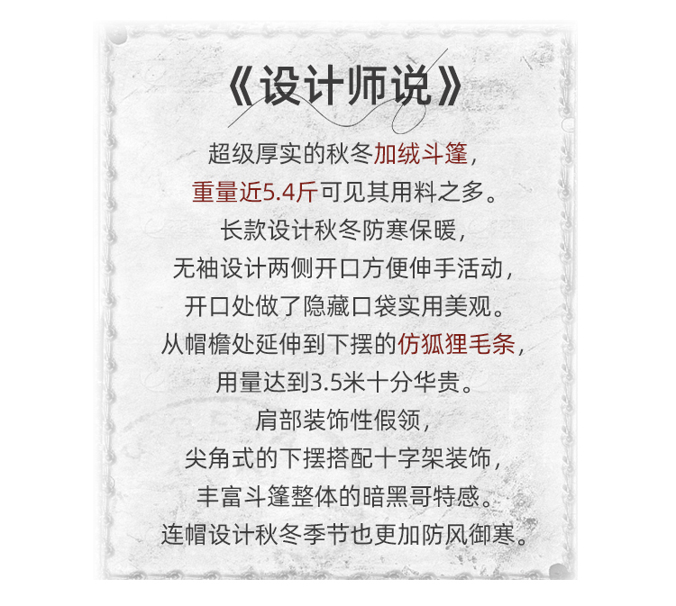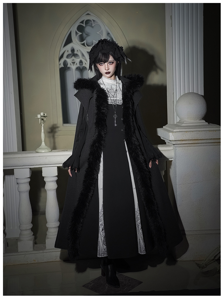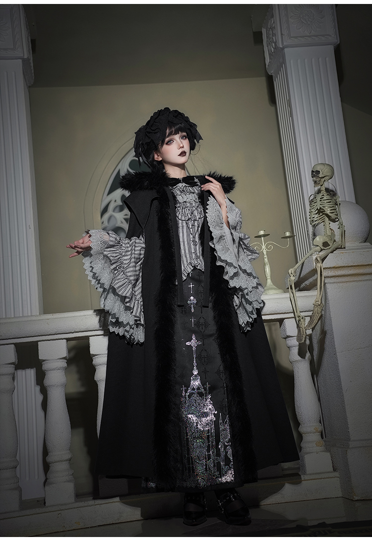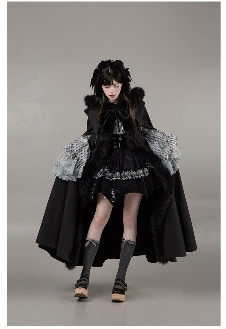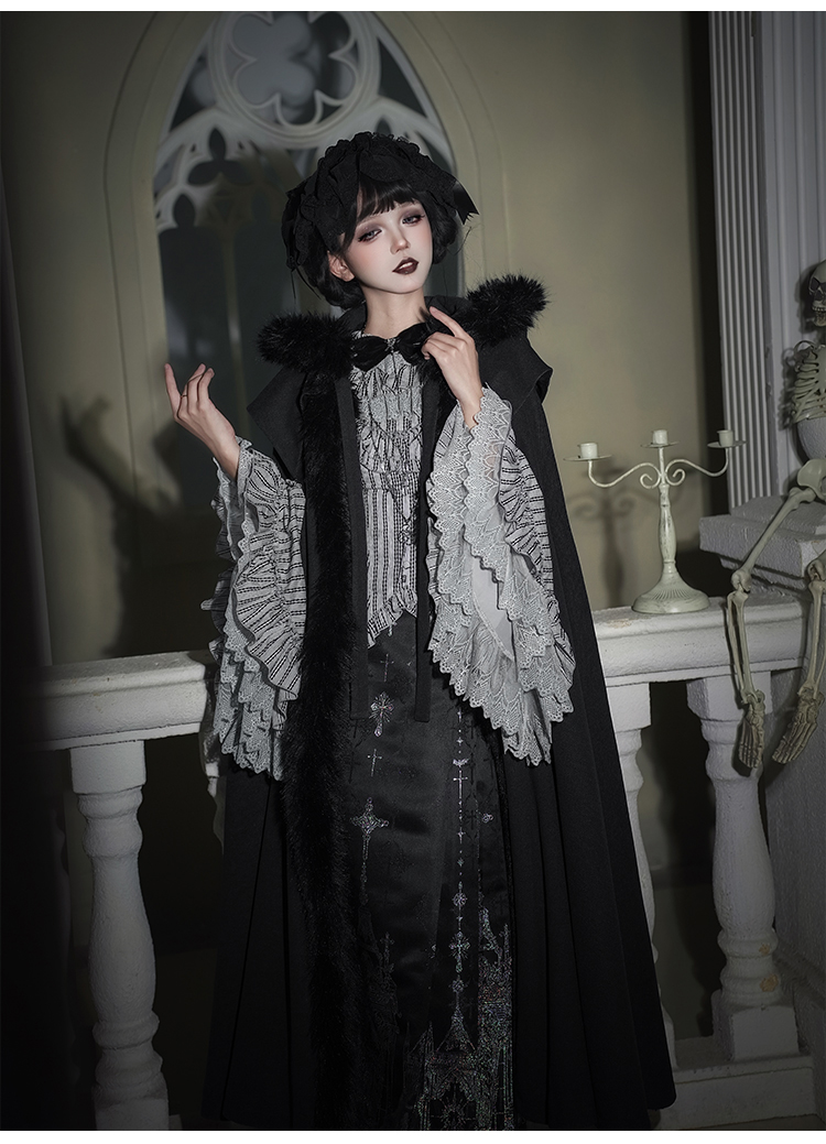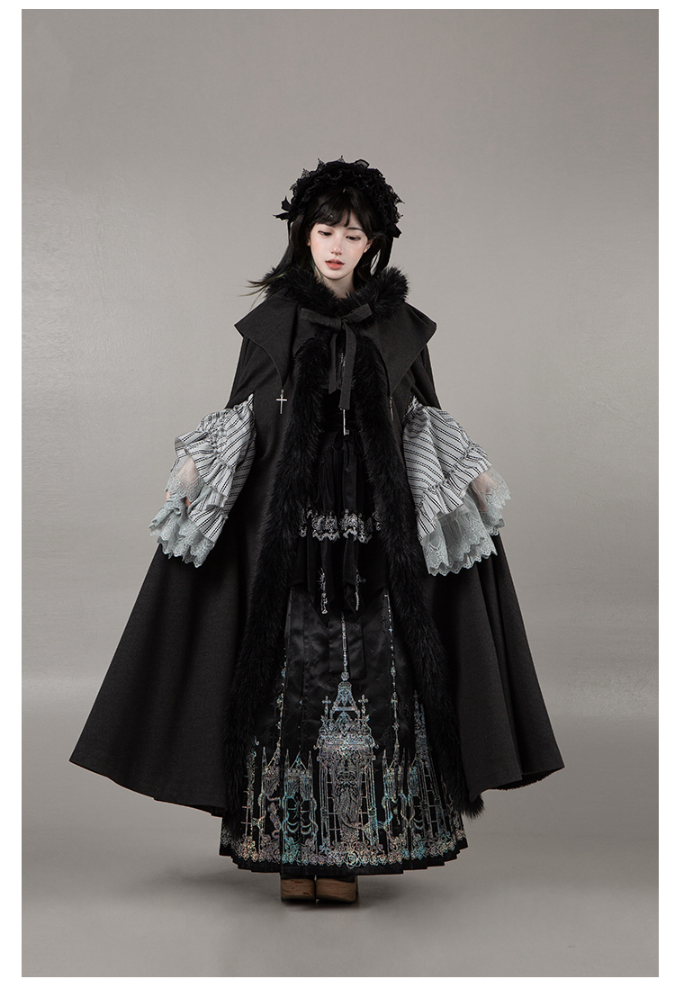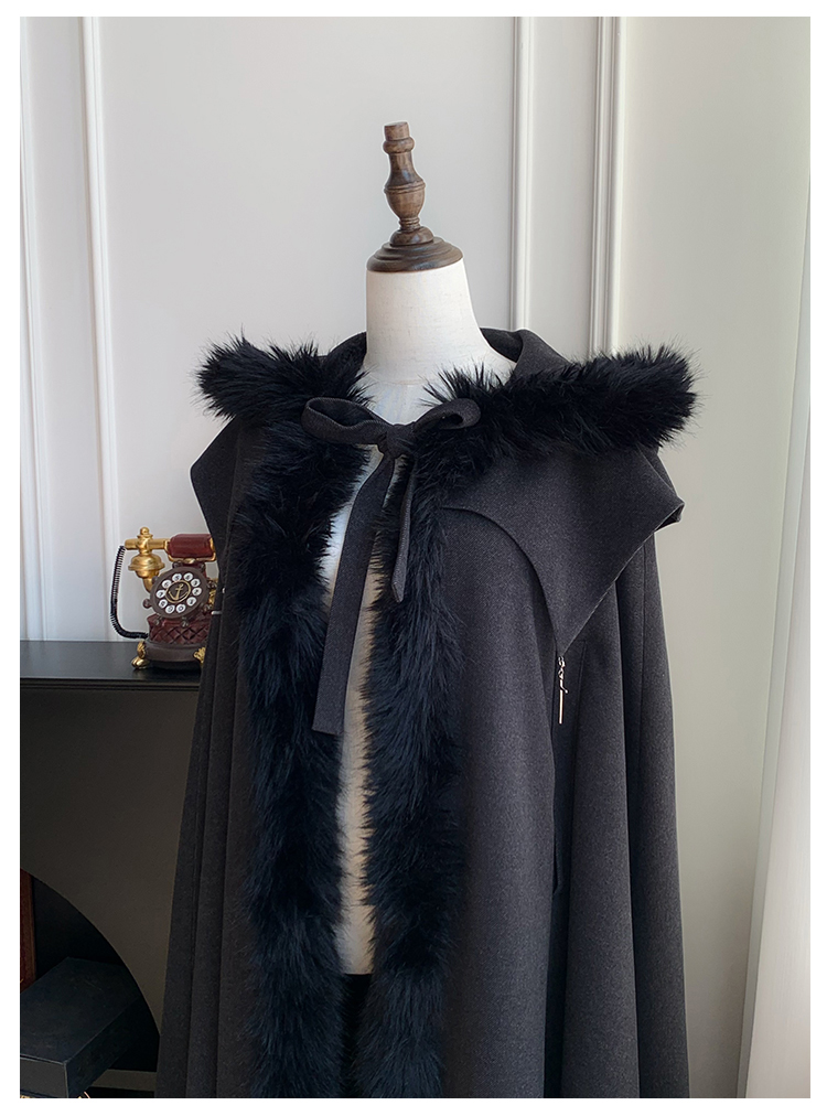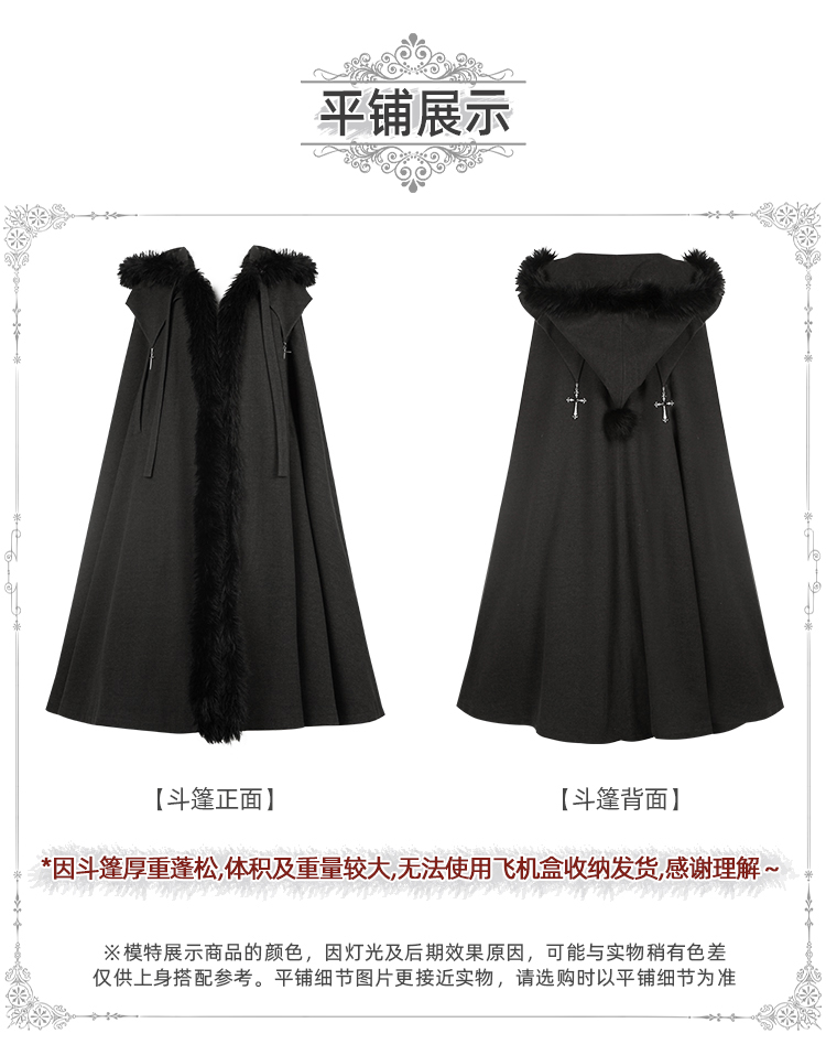 Letters and Poems·Uyeti |Wp Original Sub-Brand Dark Gothic Fleece-Lined Hooded Long Cloak for Autumn and Winter Warmth
