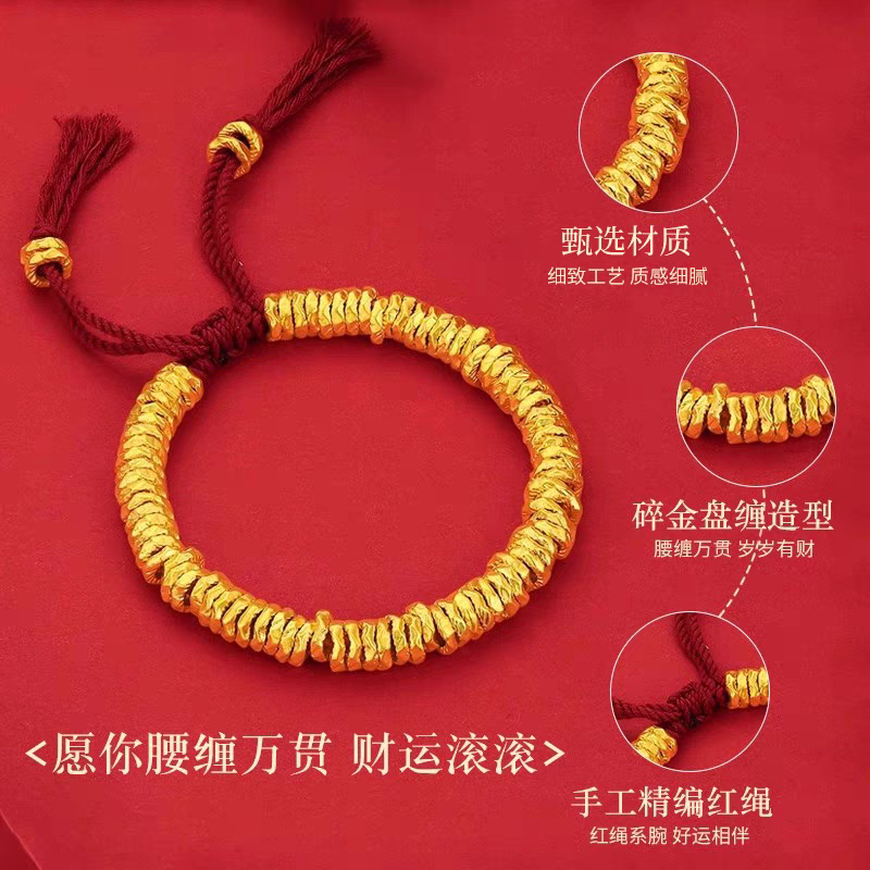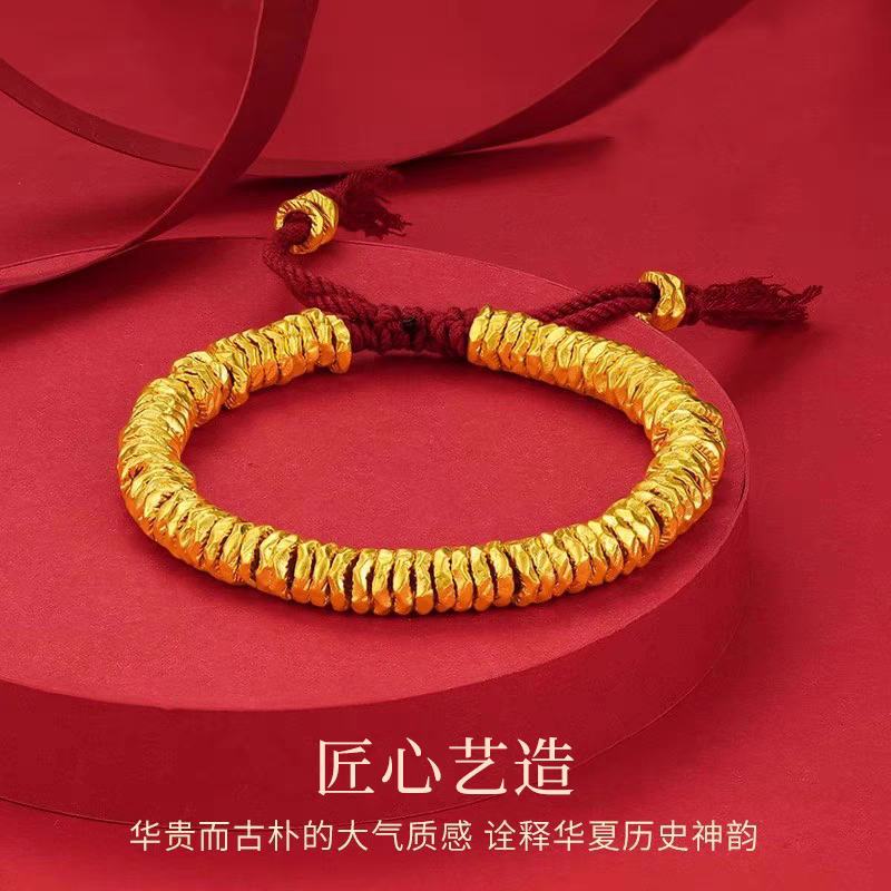 999 Pure Gold Thickened Card 7 Hammered Pattern Coiled Bracelet C7902