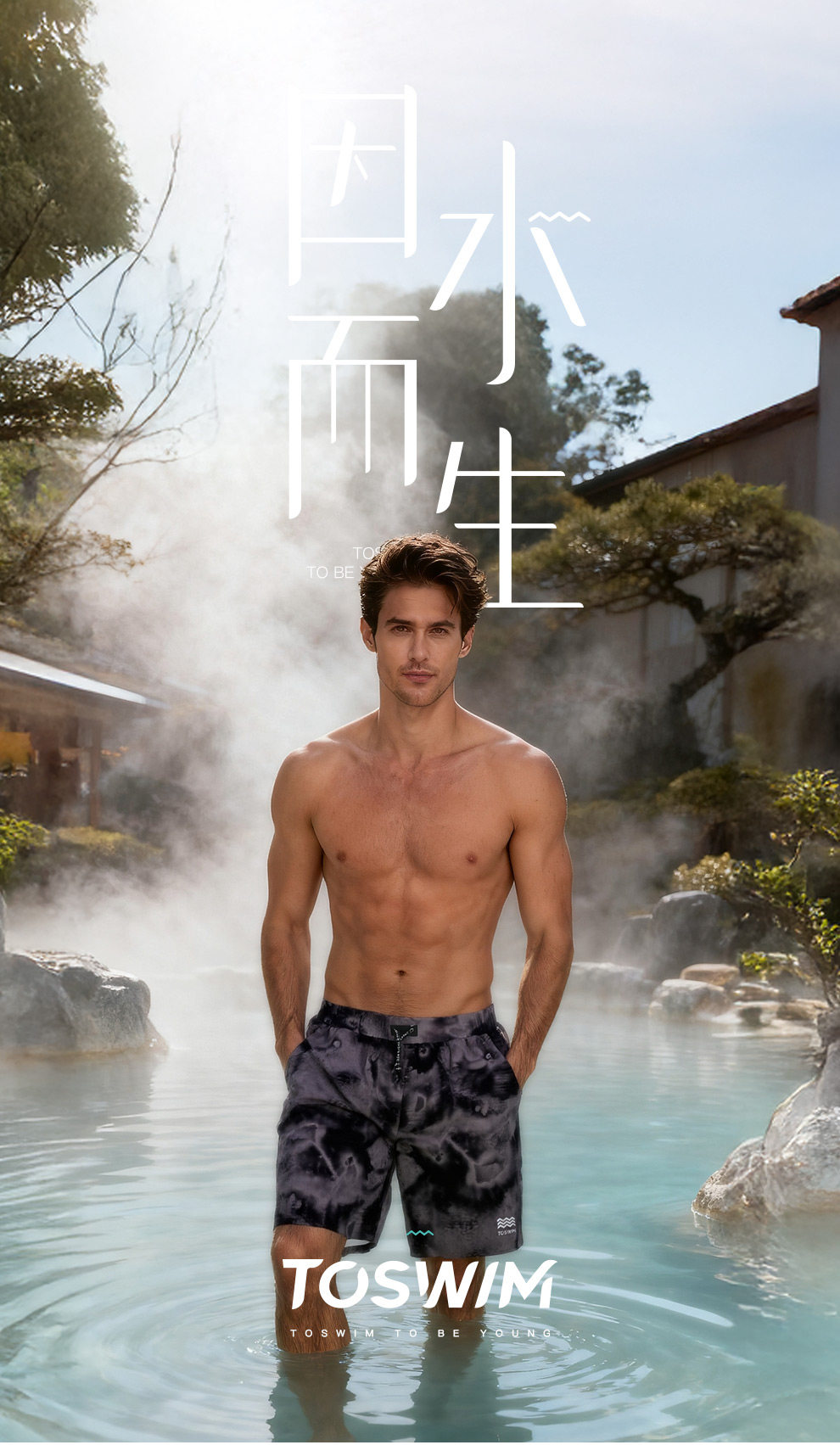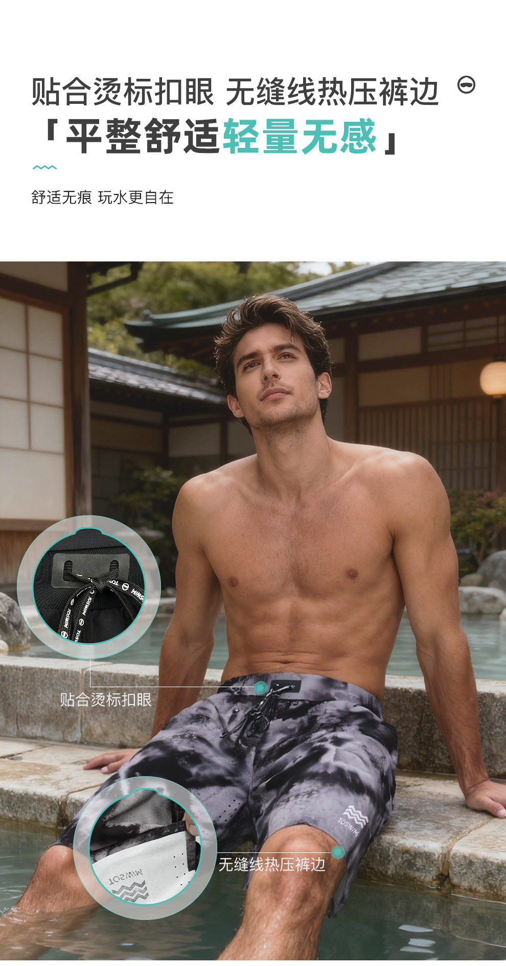 Toswim Men's Swimming Trunks, Loose Fit, Suitable for Hot Springs, Knee-Length Beach Shorts, Quick-Drying, Suitable for Swimming, 2025 New Model