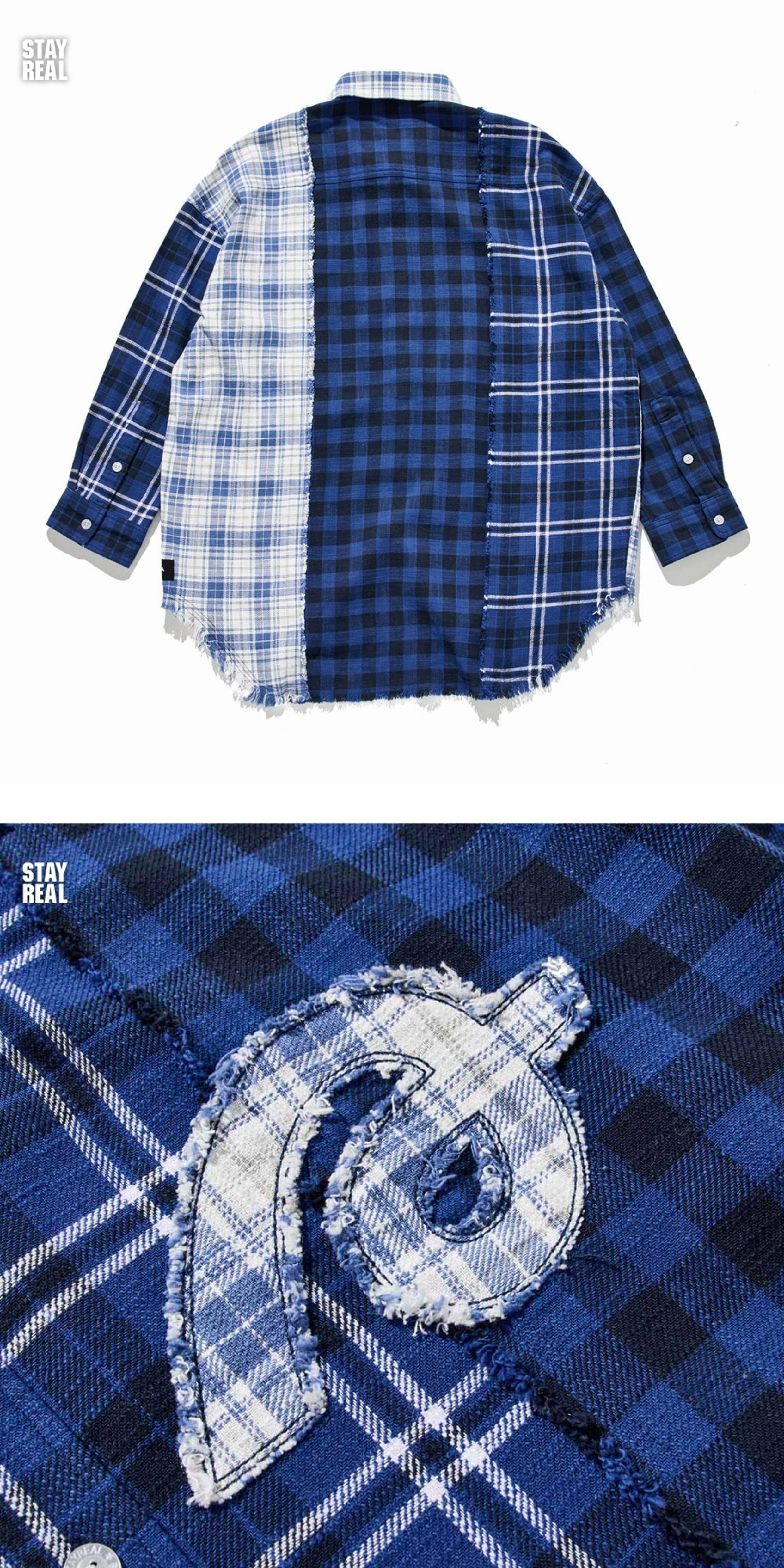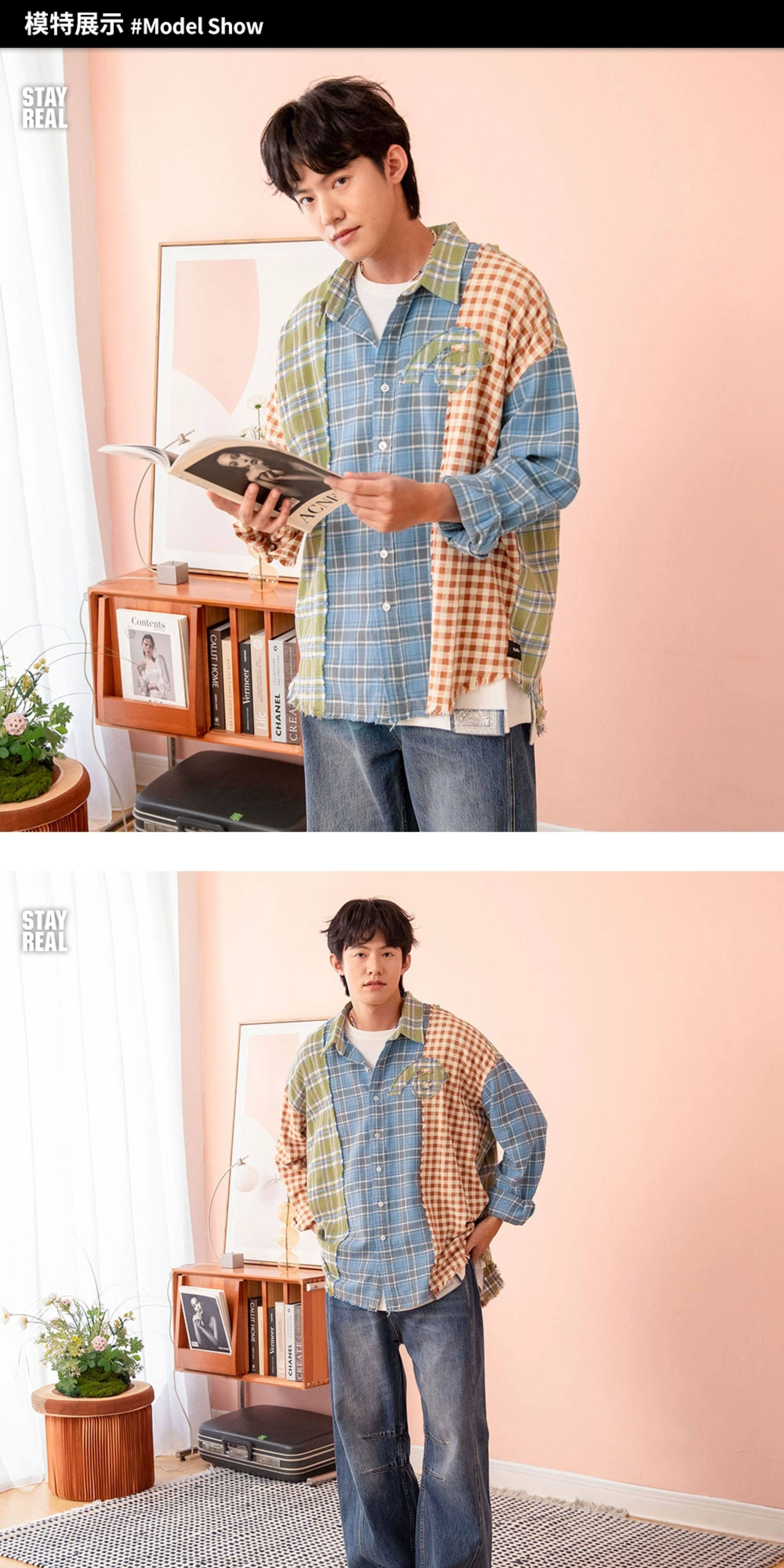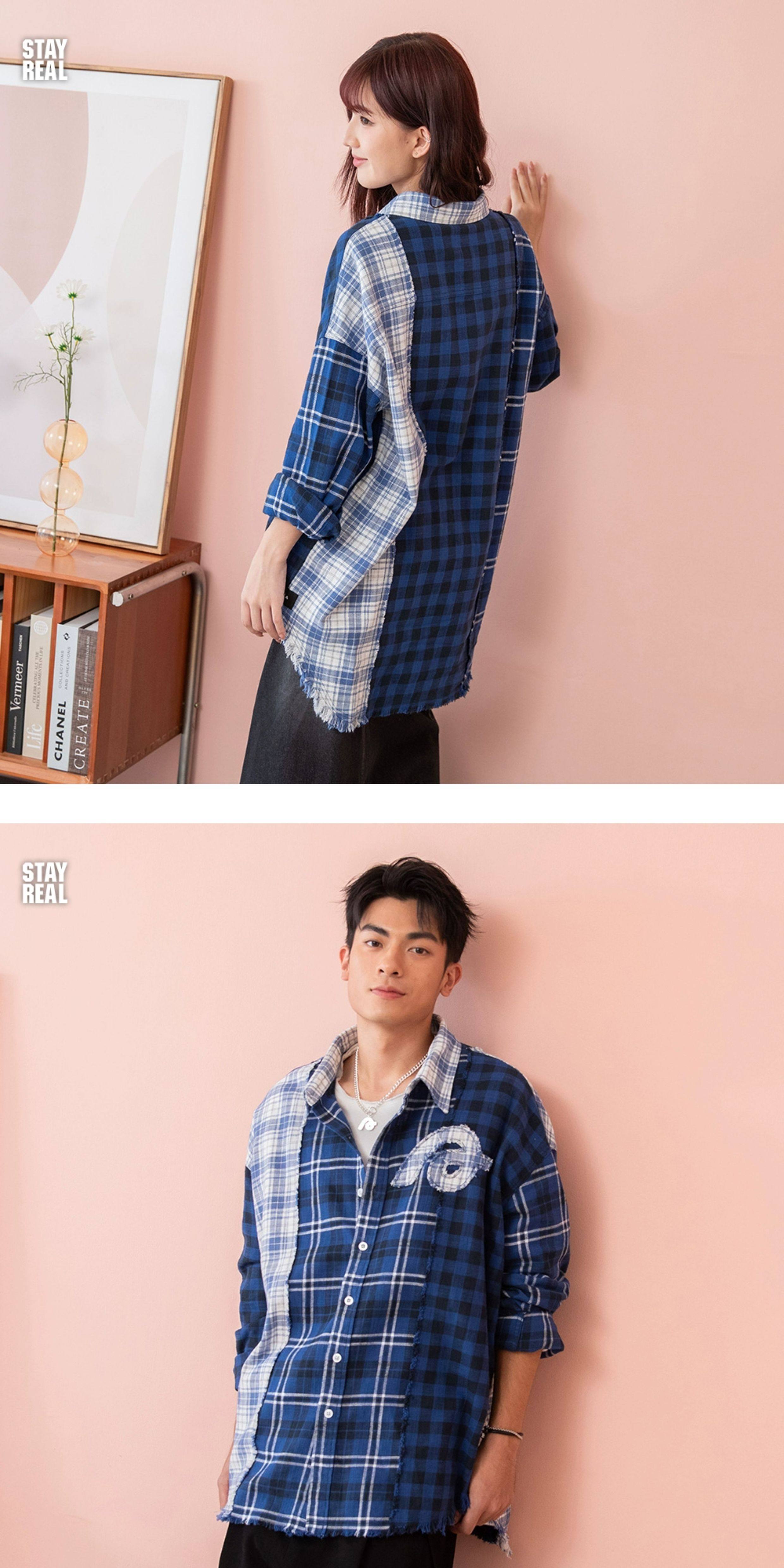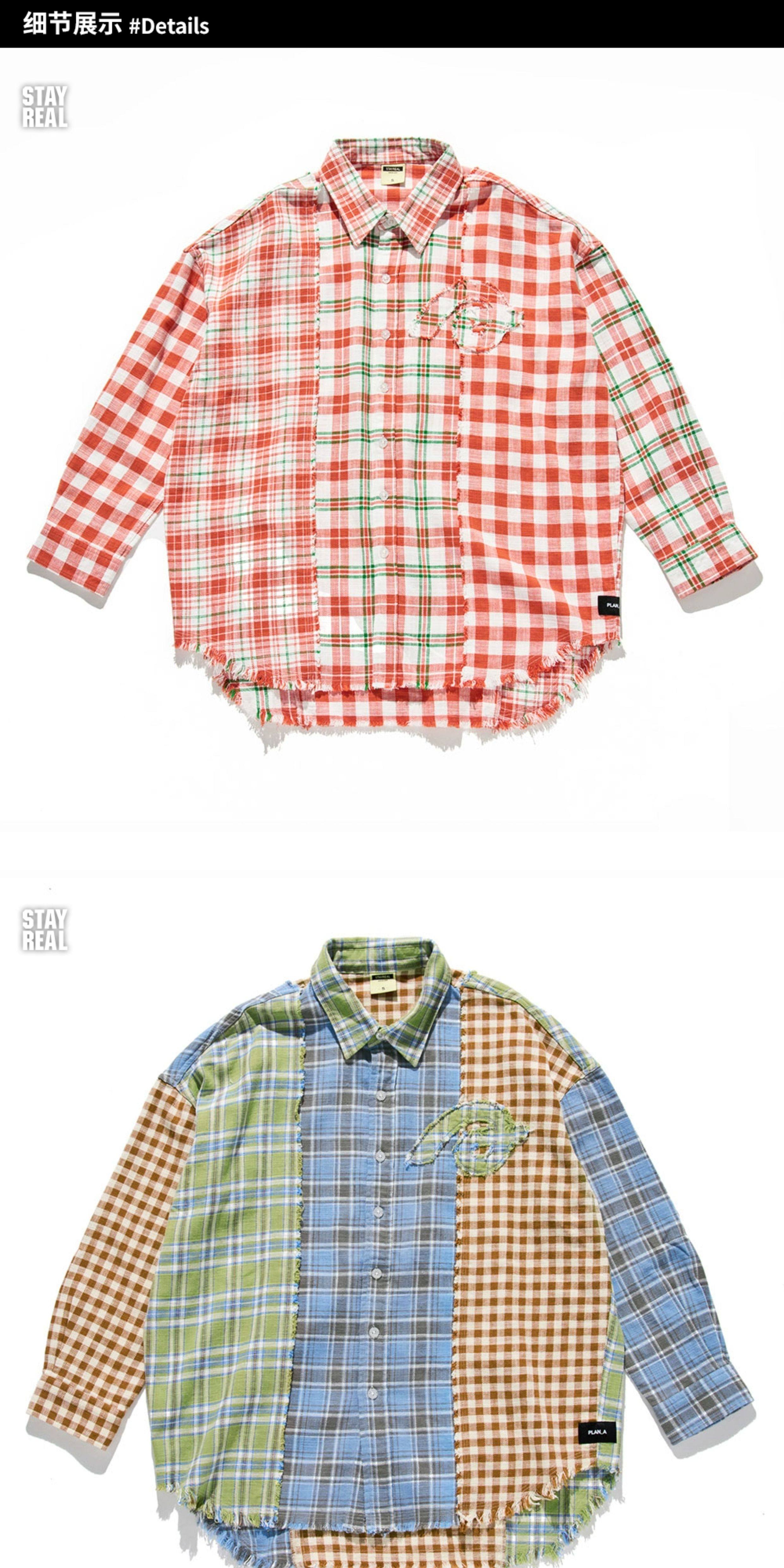 Aixin's Same Style Stayreal Trendy Brand Plan a Infinite Patchwork Plaid Shirt Unisex Long-Sleeve for Men and Women