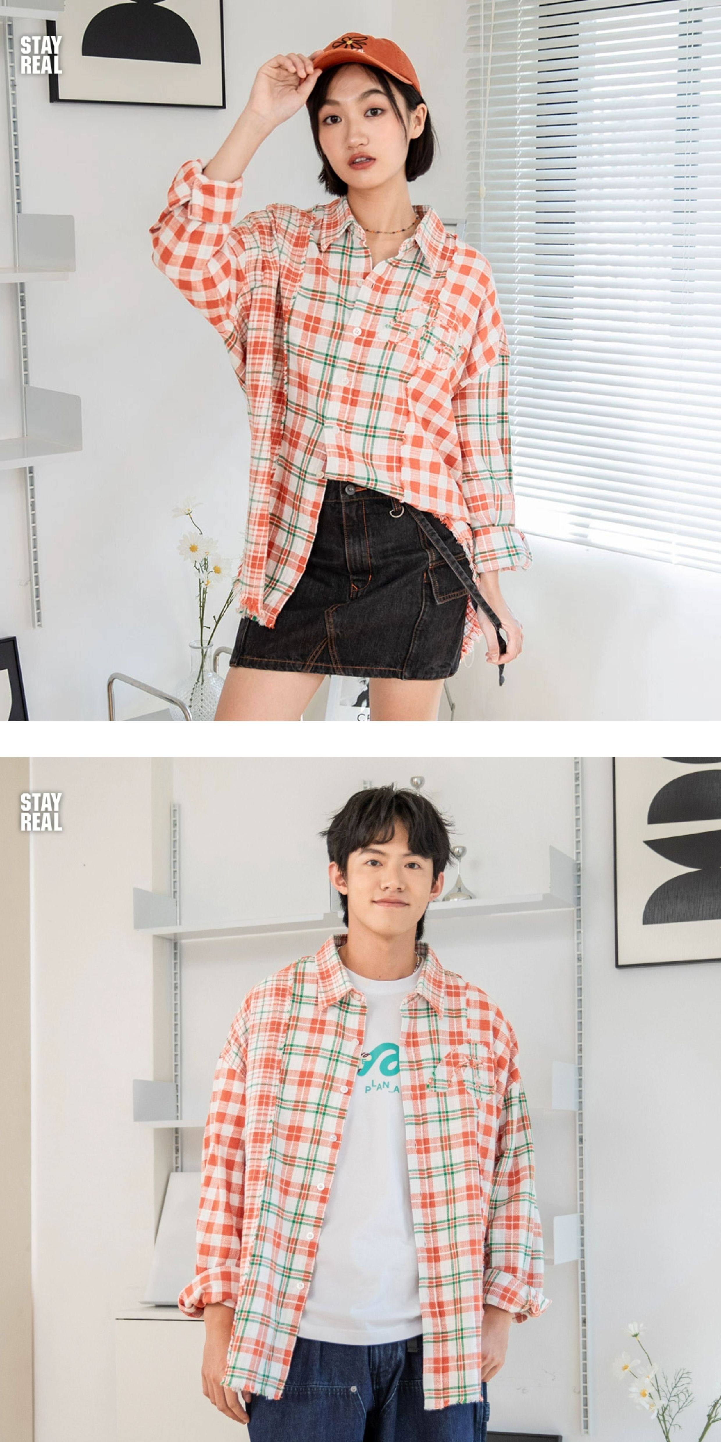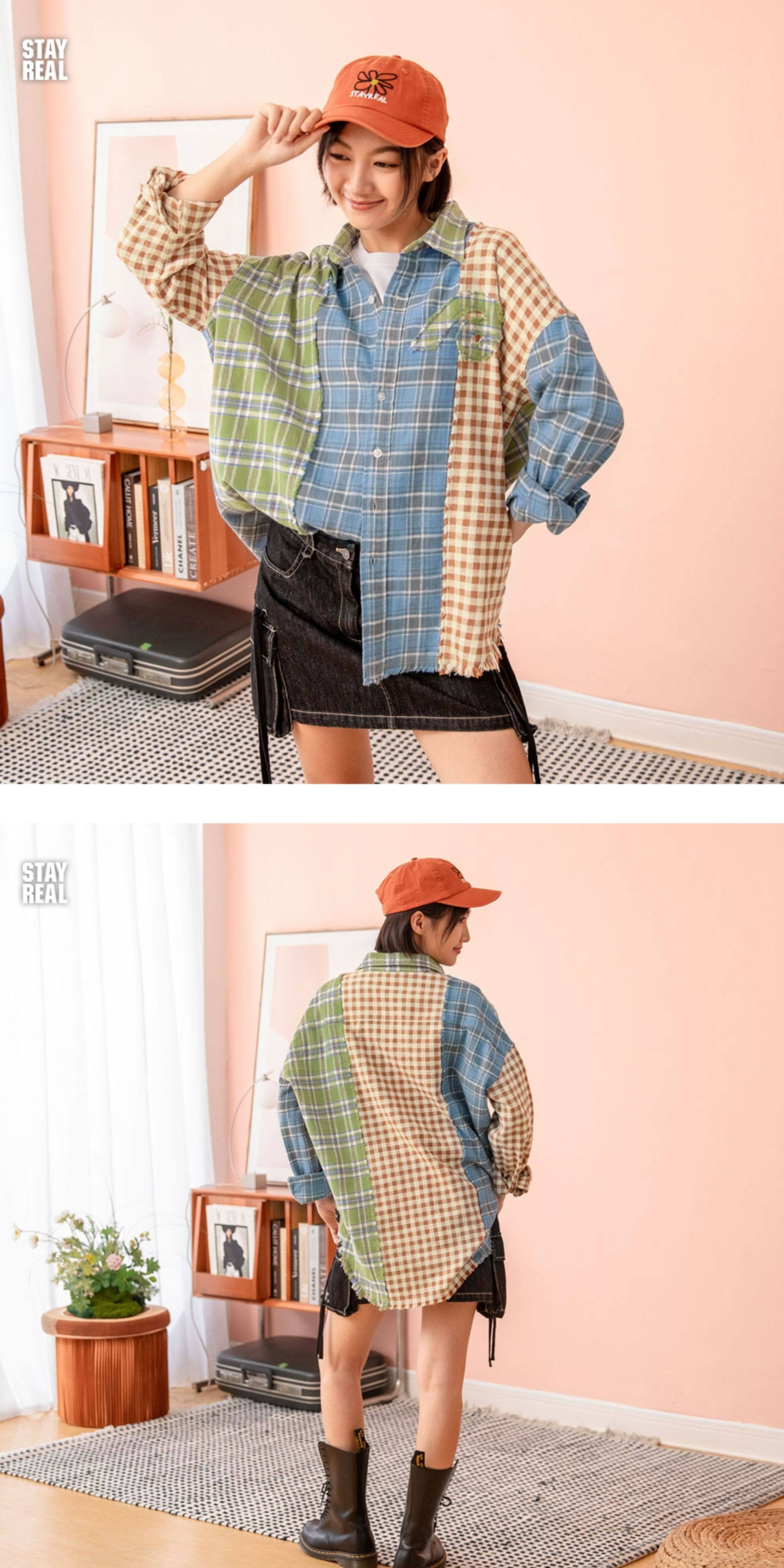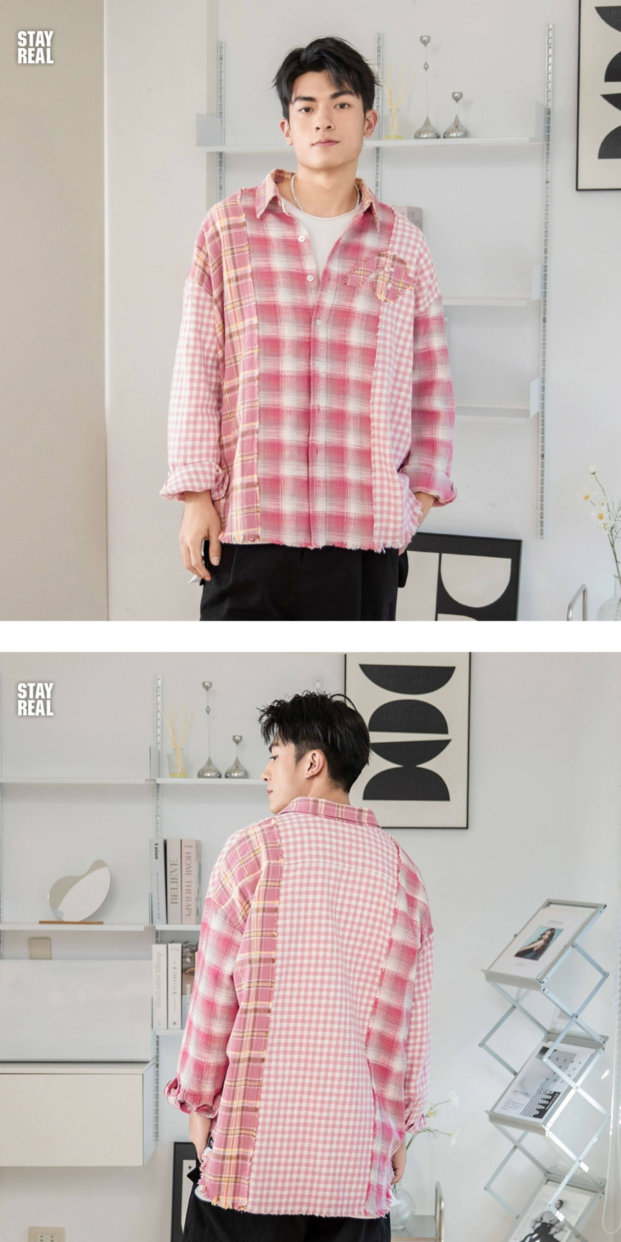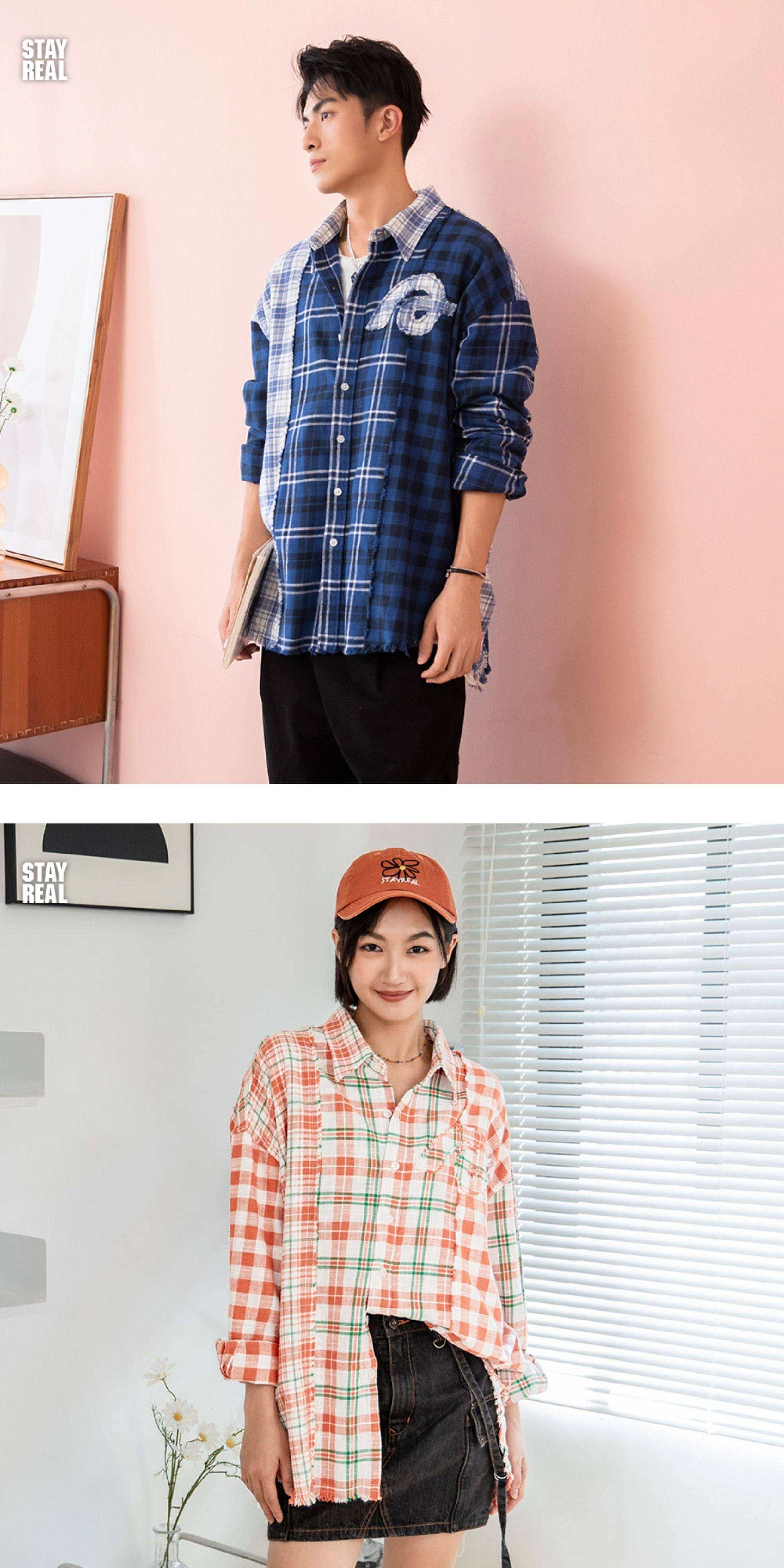 Aixin's Same Style Stayreal Trendy Brand Plan a Infinite Patchwork Plaid Shirt Unisex Long-Sleeve for Men and Women