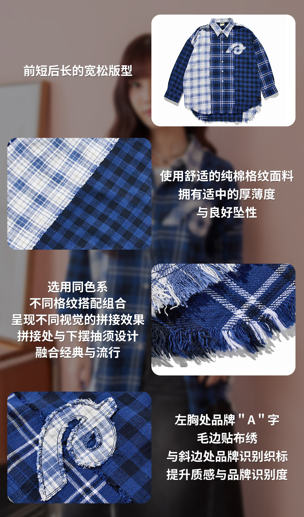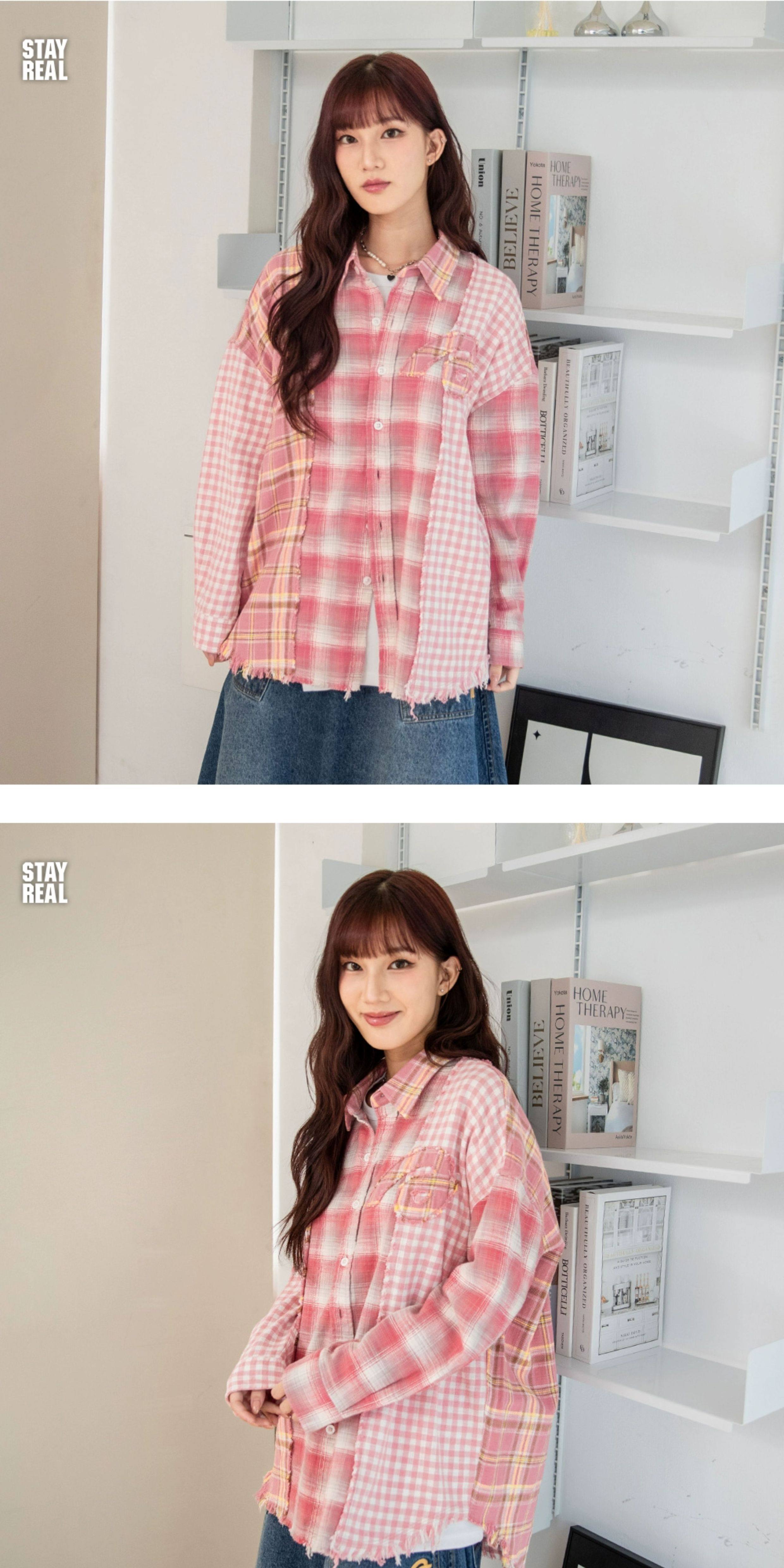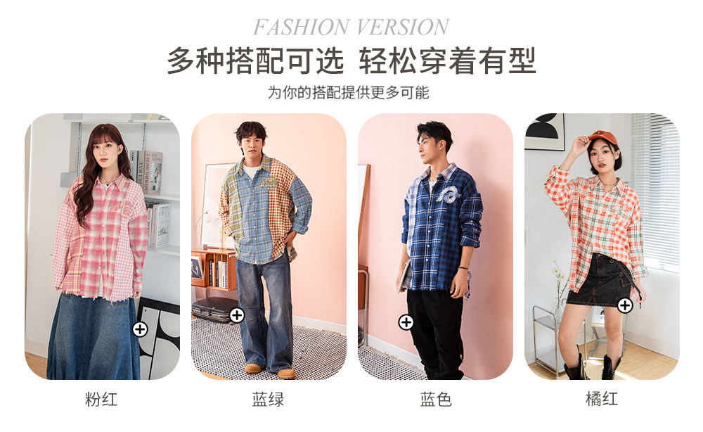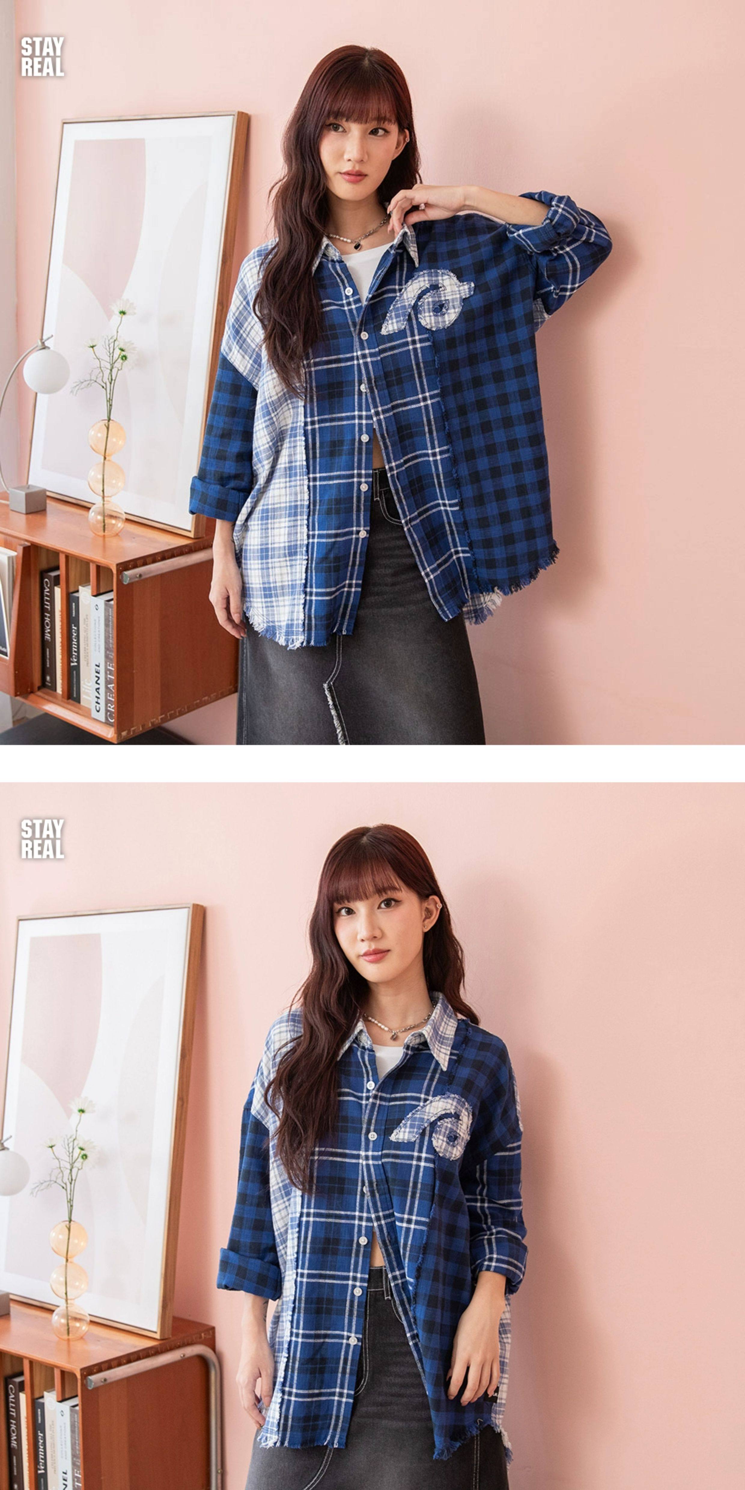 Aixin's Same Style Stayreal Trendy Brand Plan a Infinite Patchwork Plaid Shirt Unisex Long-Sleeve for Men and Women