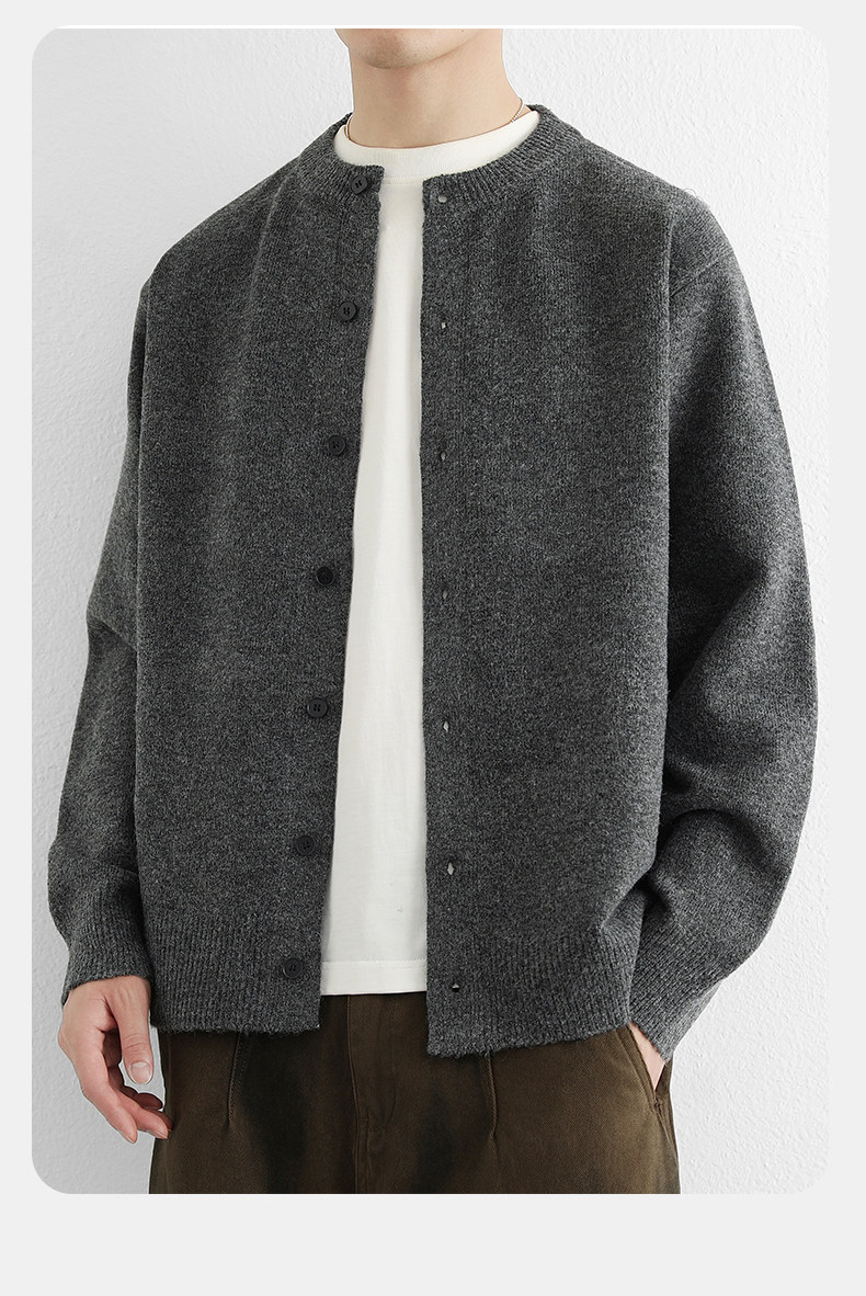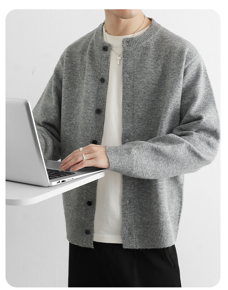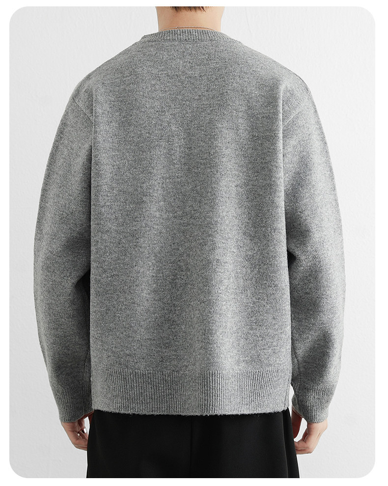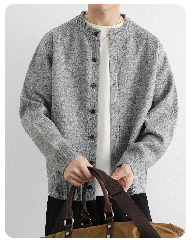 Romon Knitted Cardigan Jacket for Men, Spring and Autumn Sweater, American Style Trendy Casual Crew Neck Sweater, Loose Solid Color Jacket