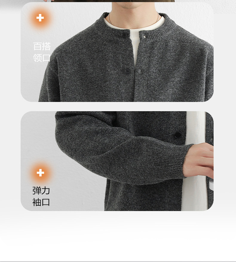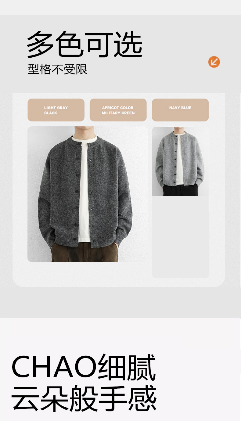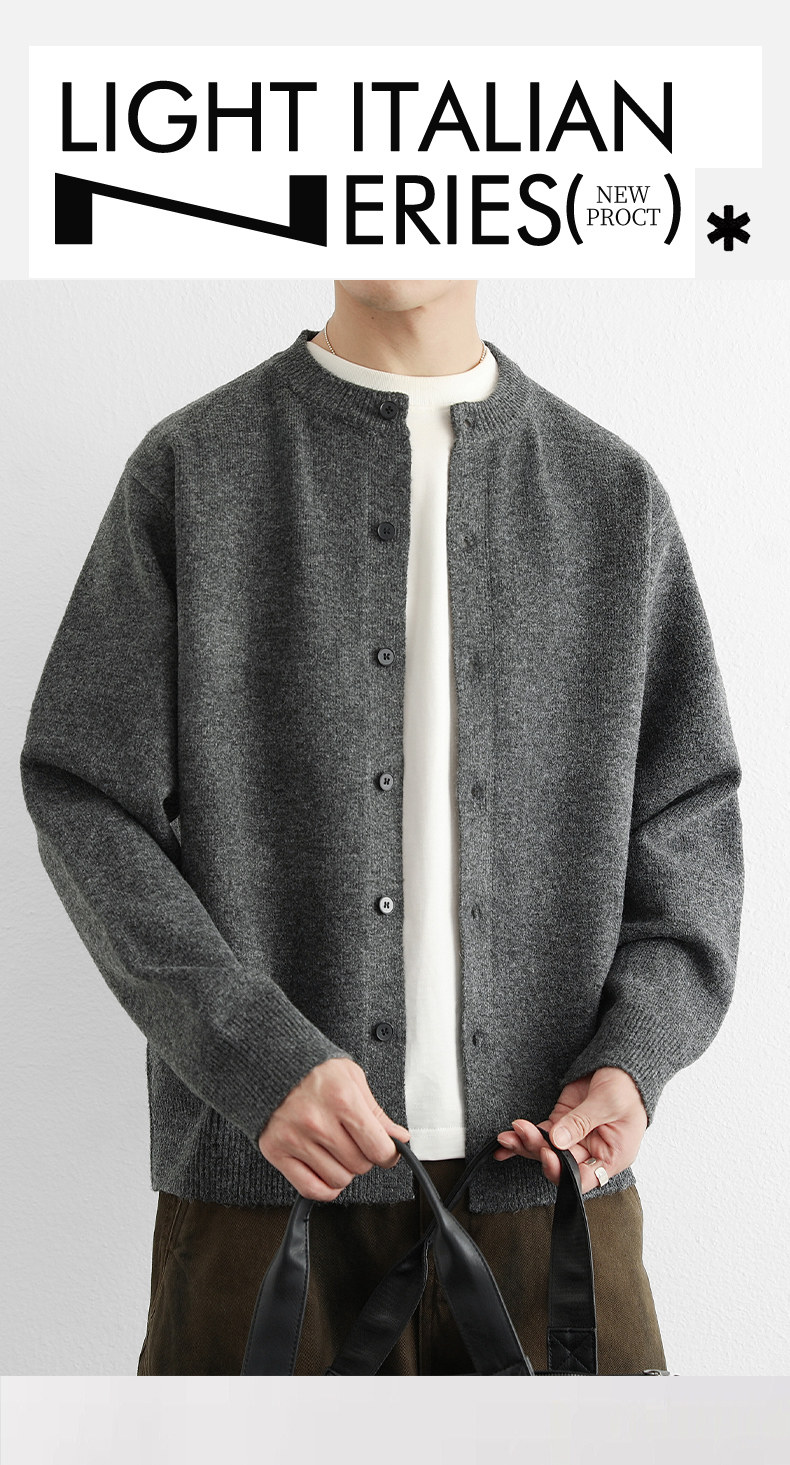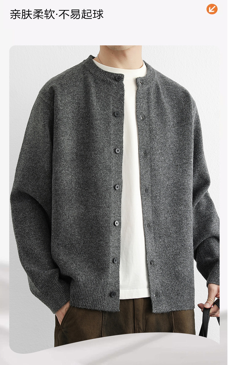 Romon Knitted Cardigan Jacket for Men, Spring and Autumn Sweater, American Style Trendy Casual Crew Neck Sweater, Loose Solid Color Jacket