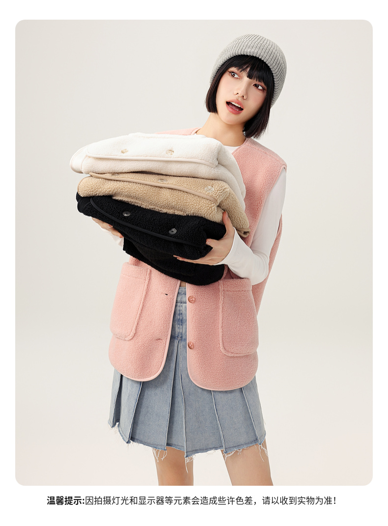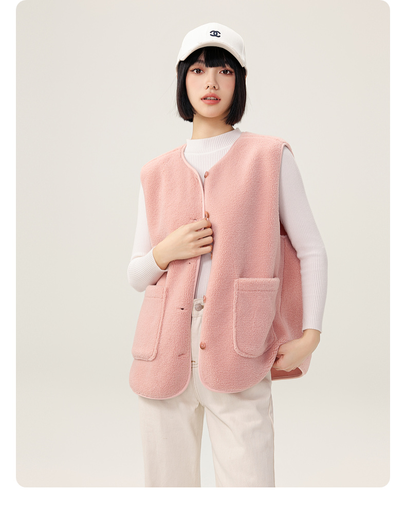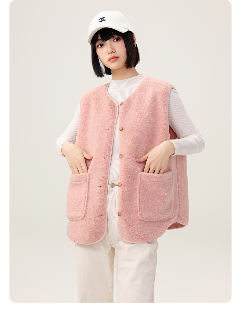 Xuezhongfei 2025 New Women's Autumn and Winter Fleece Vest/Chanel-Style Jacket, Soft, Comfortable, Warm and Casual