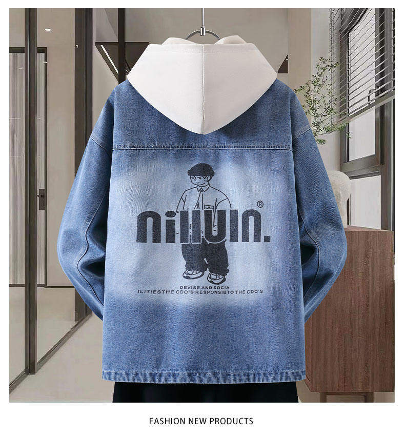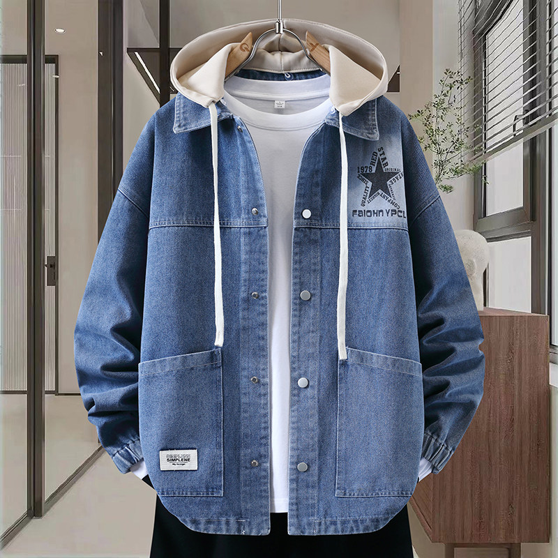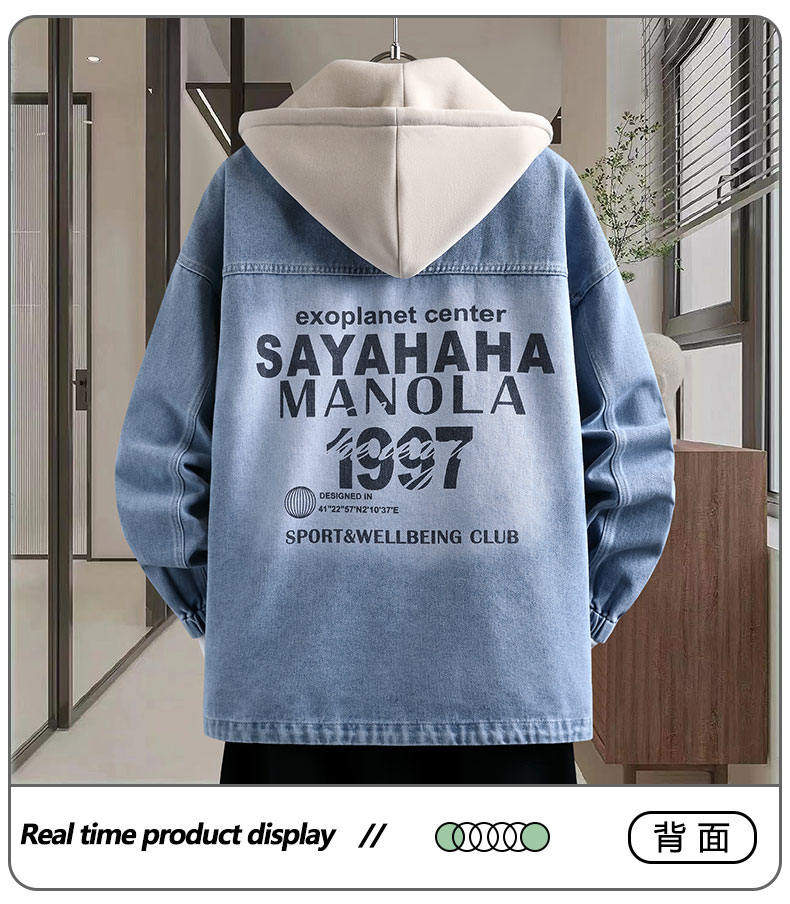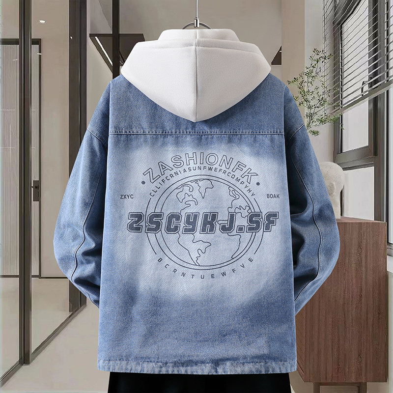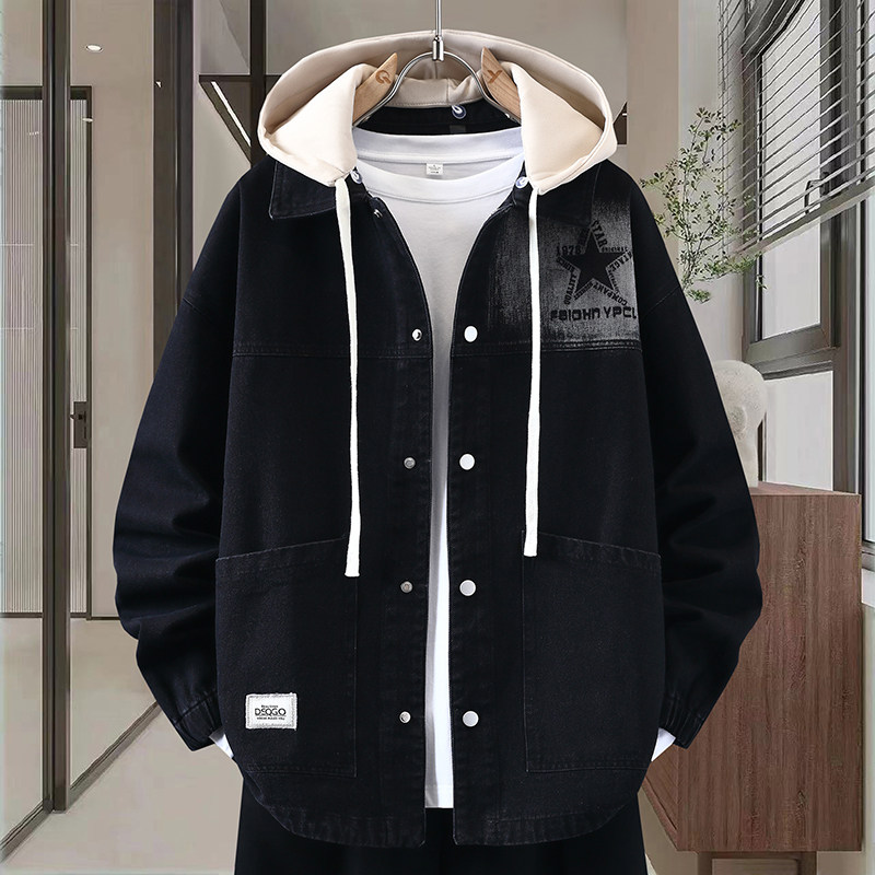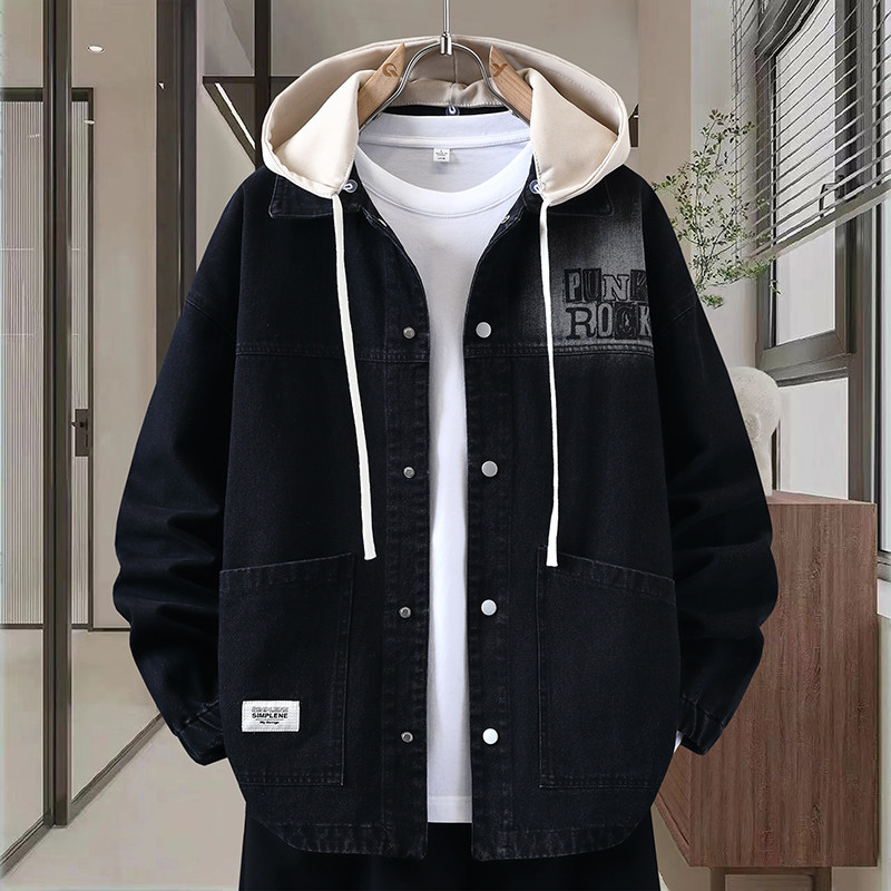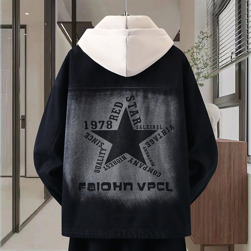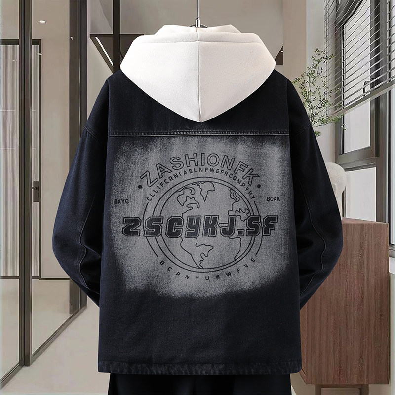 Autumn New Hong Kong Style Denim Jacket Men's Trendy Design Detachable Hooded Coat Youth Top