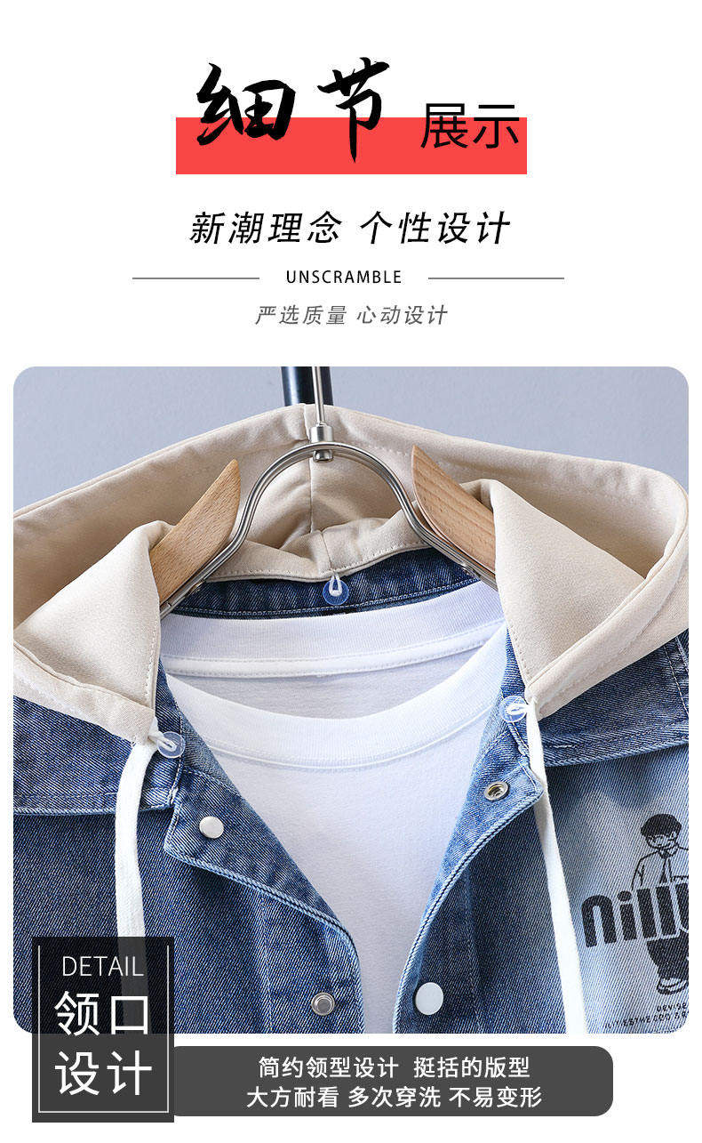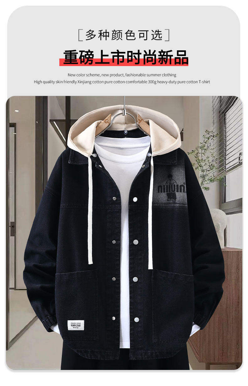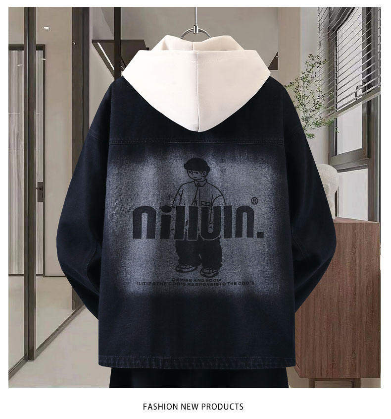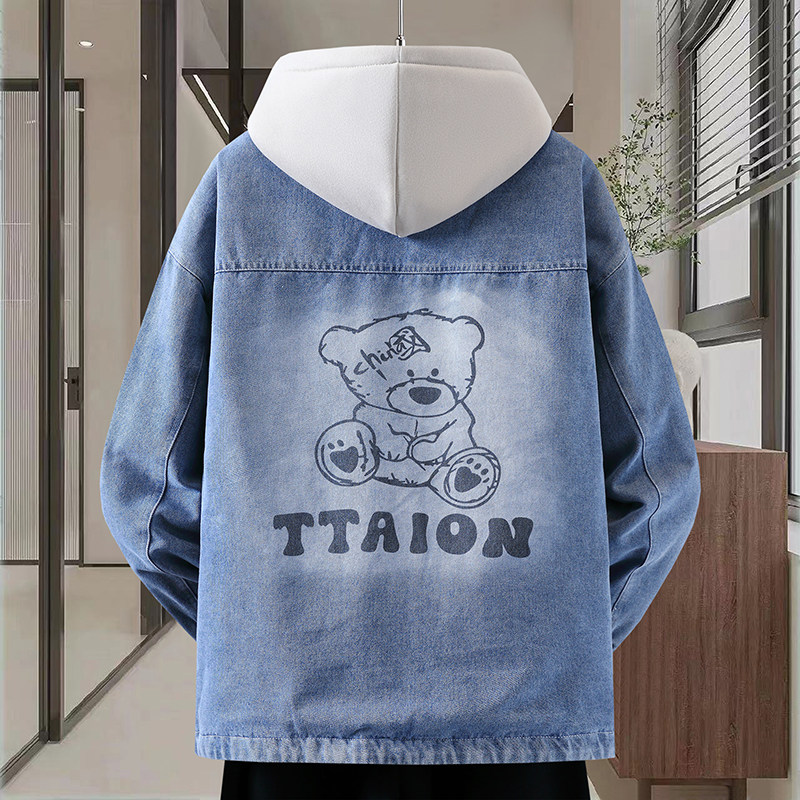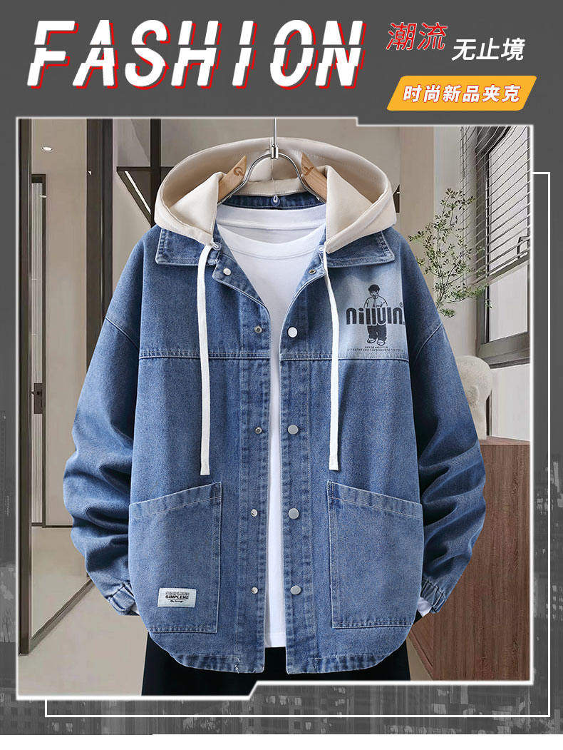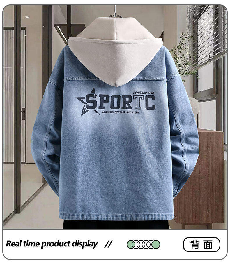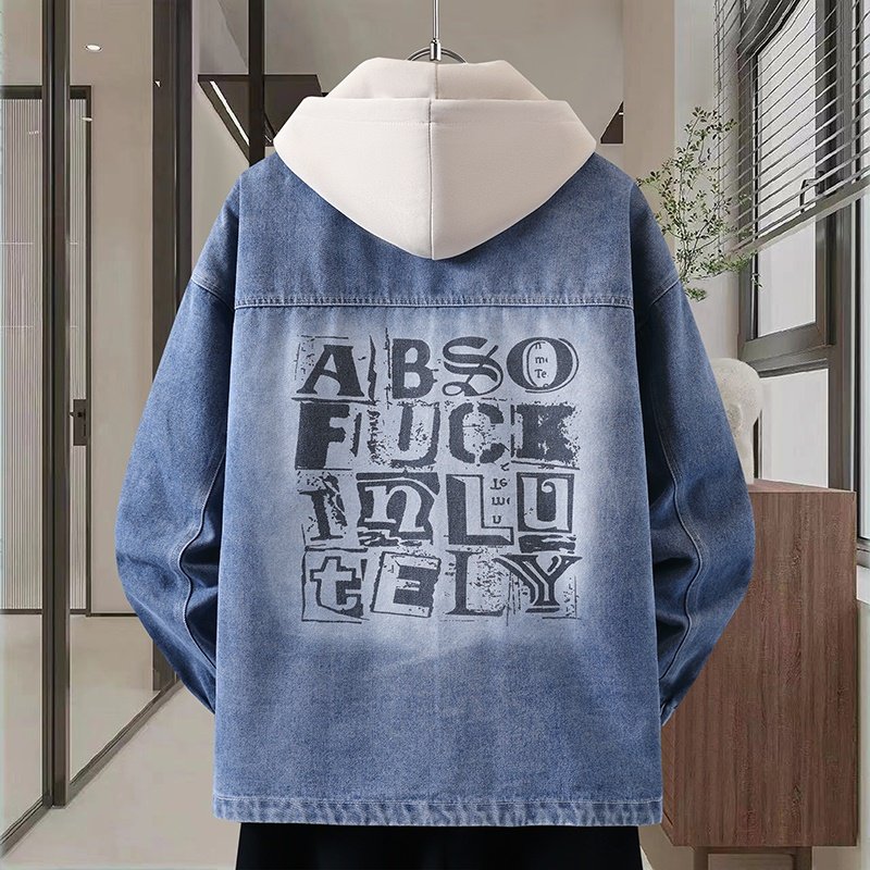 Autumn New Hong Kong Style Denim Jacket Men's Trendy Design Detachable Hooded Coat Youth Top