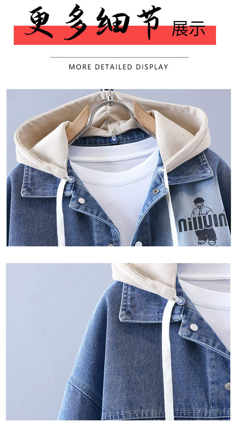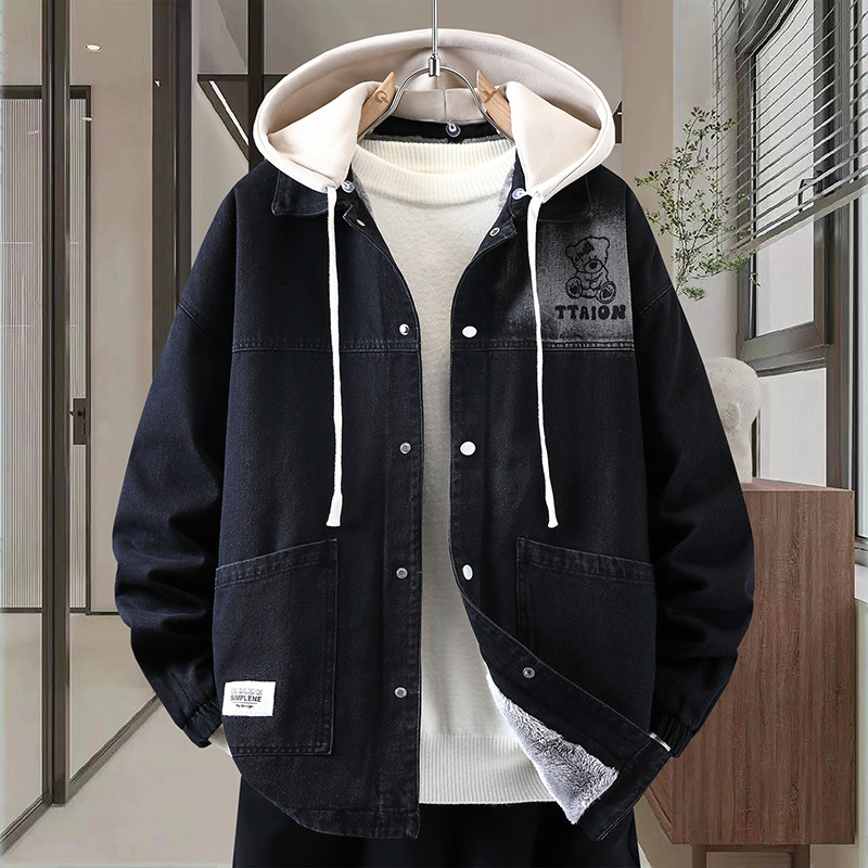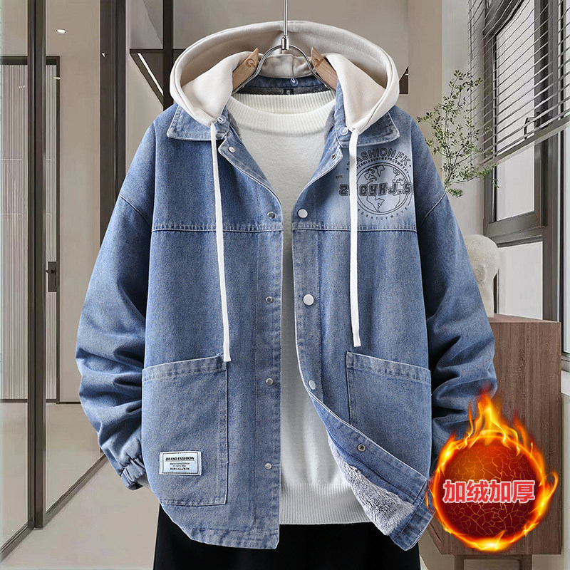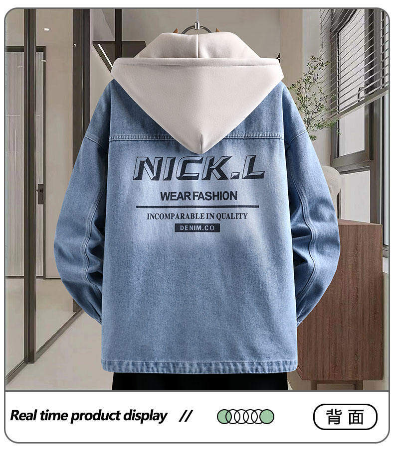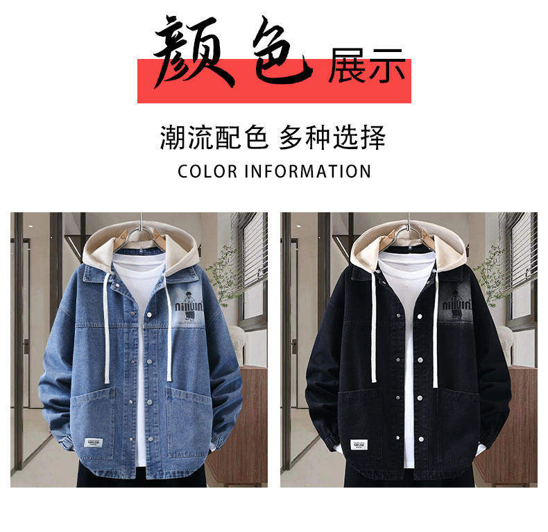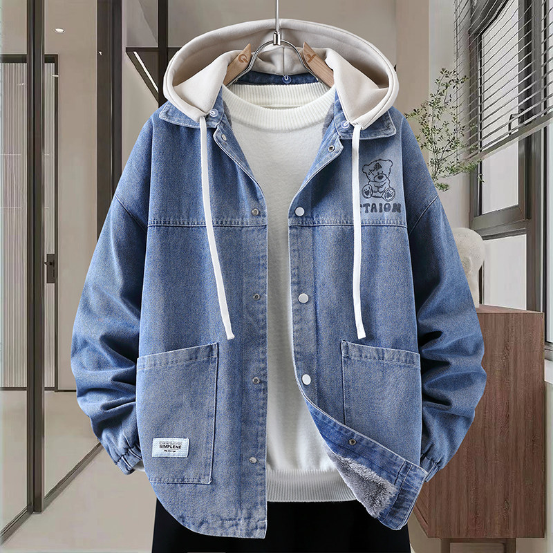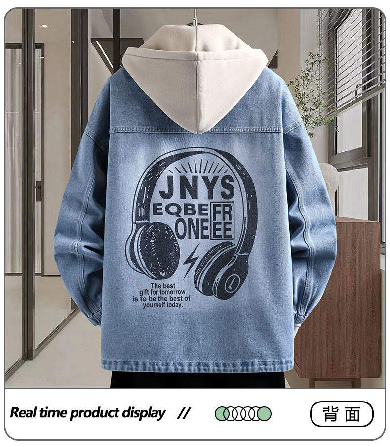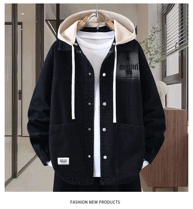 Autumn New Hong Kong Style Denim Jacket Men's Trendy Design Detachable Hooded Coat Youth Top