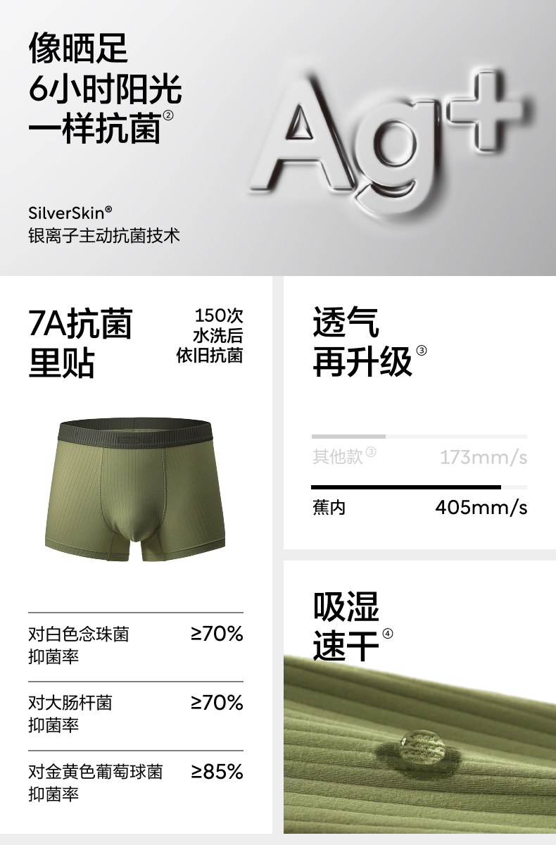 [Mushroom Comes] Banana Silver Skin 311s/311A Antimicrobial Plaid Couple Underwear for Men and Women