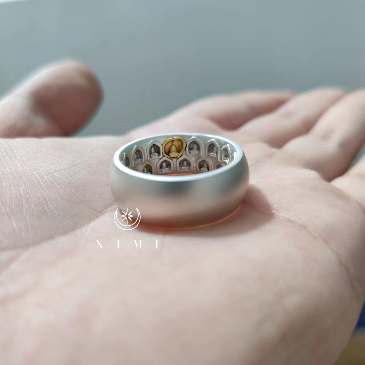Thousand-Compartment Buddha Ring with Gold Inlay Version | Sterling Silver Handmade Ring | Ximibao Shop Original Authentic Products
