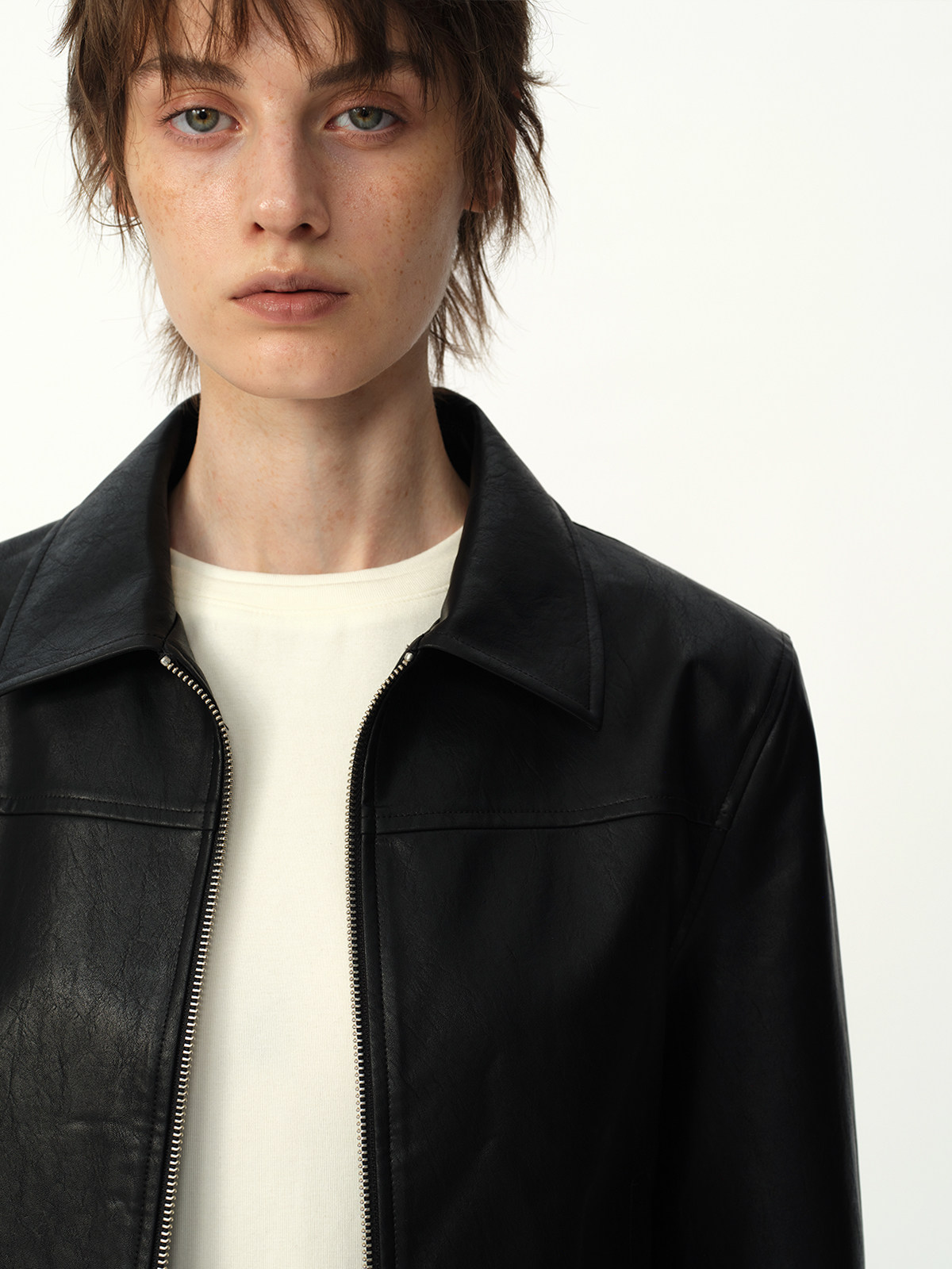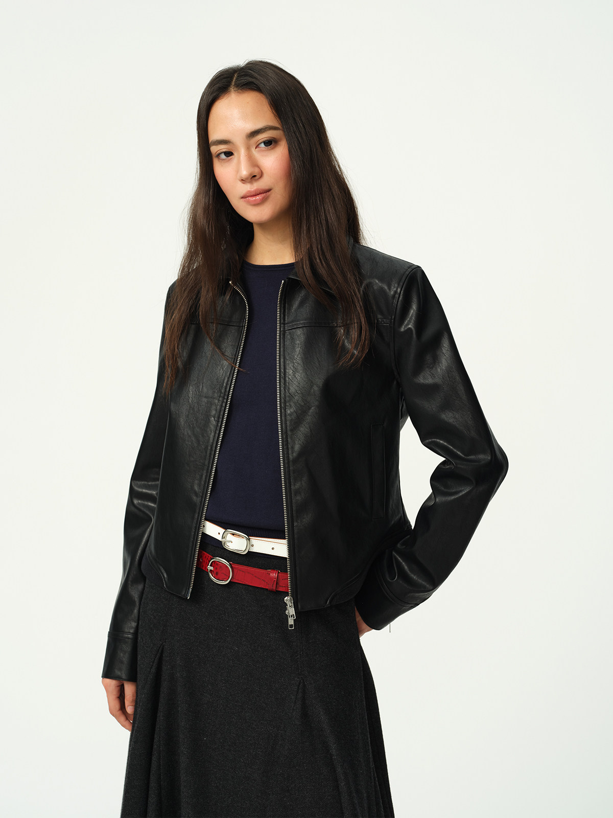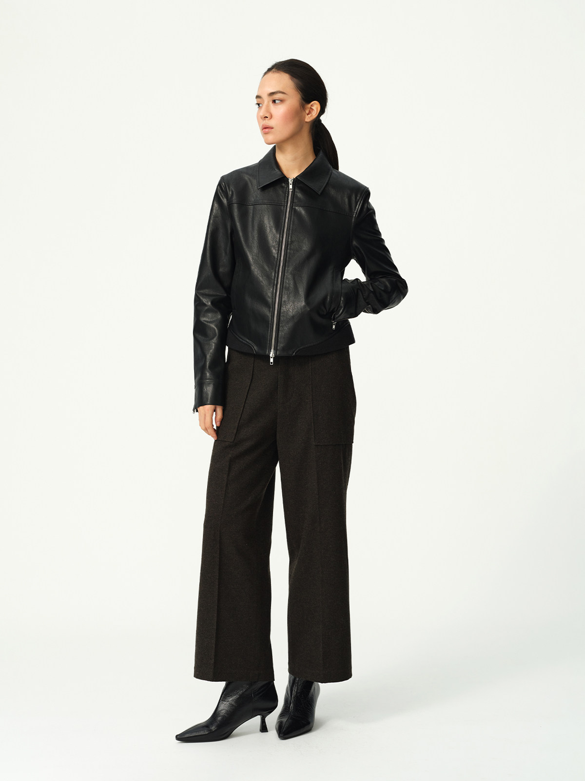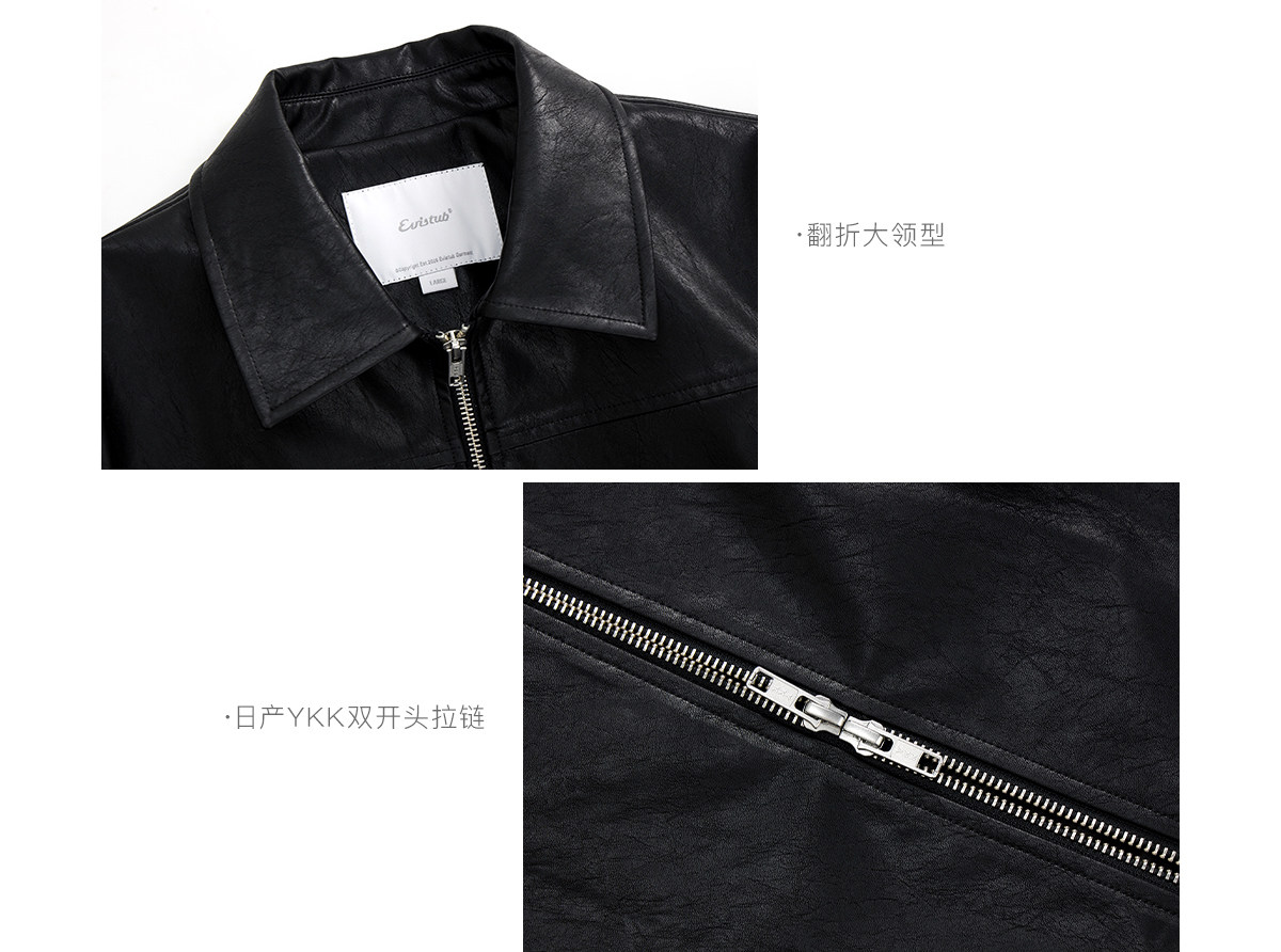 Evistub Retro Motorcycle Eco-Leather Fitted Shoulder-Zip H-Shaped Lapel Leather Jacket for Women Spring