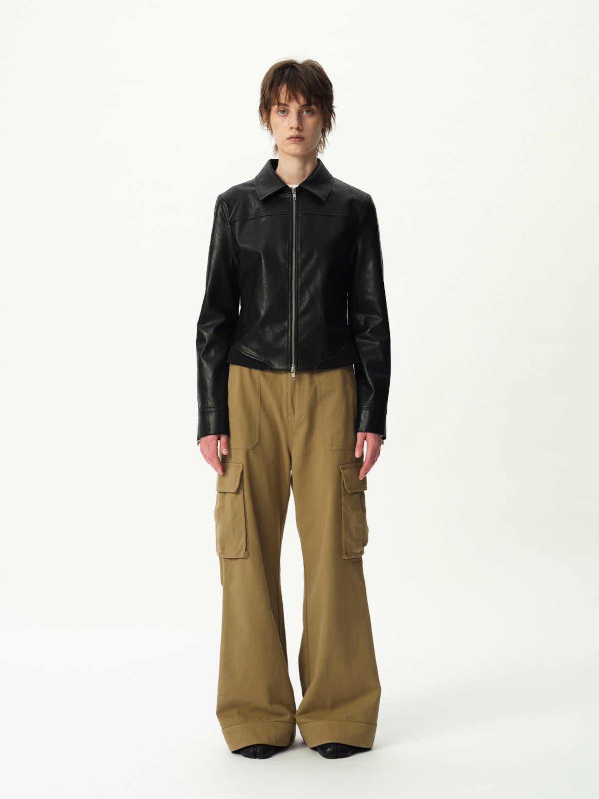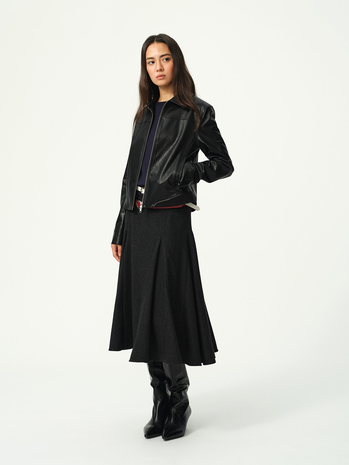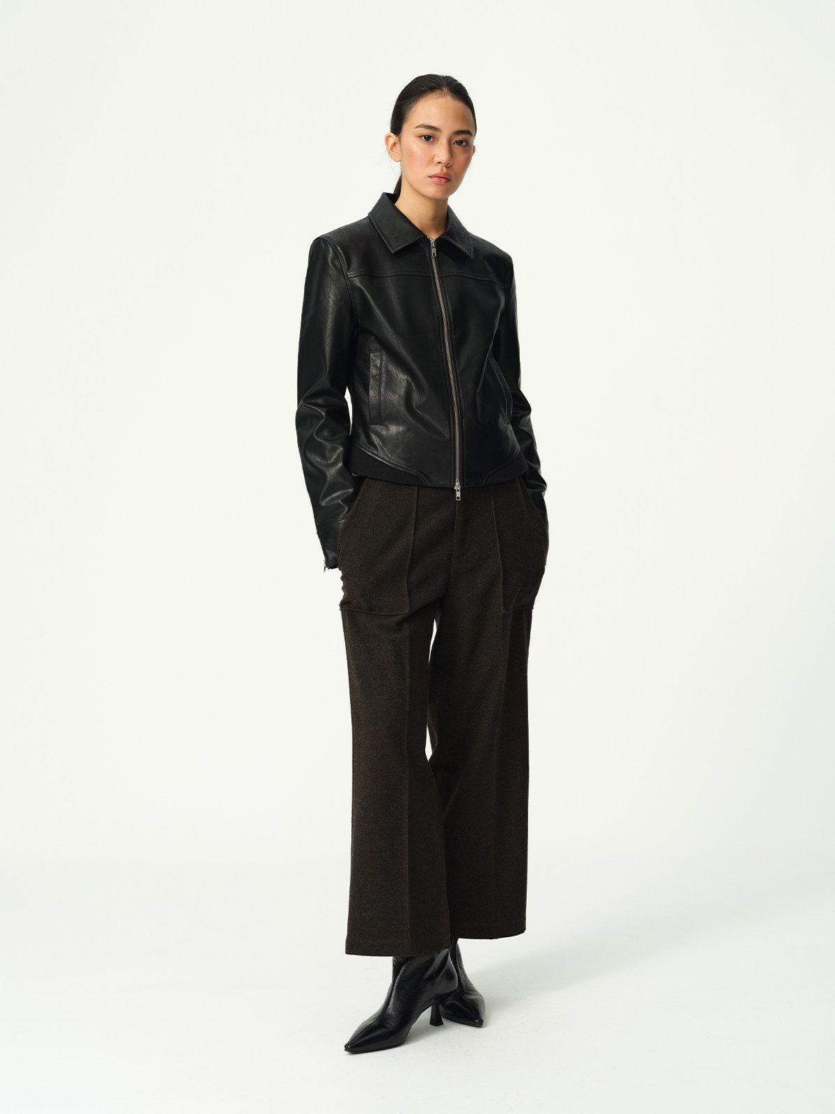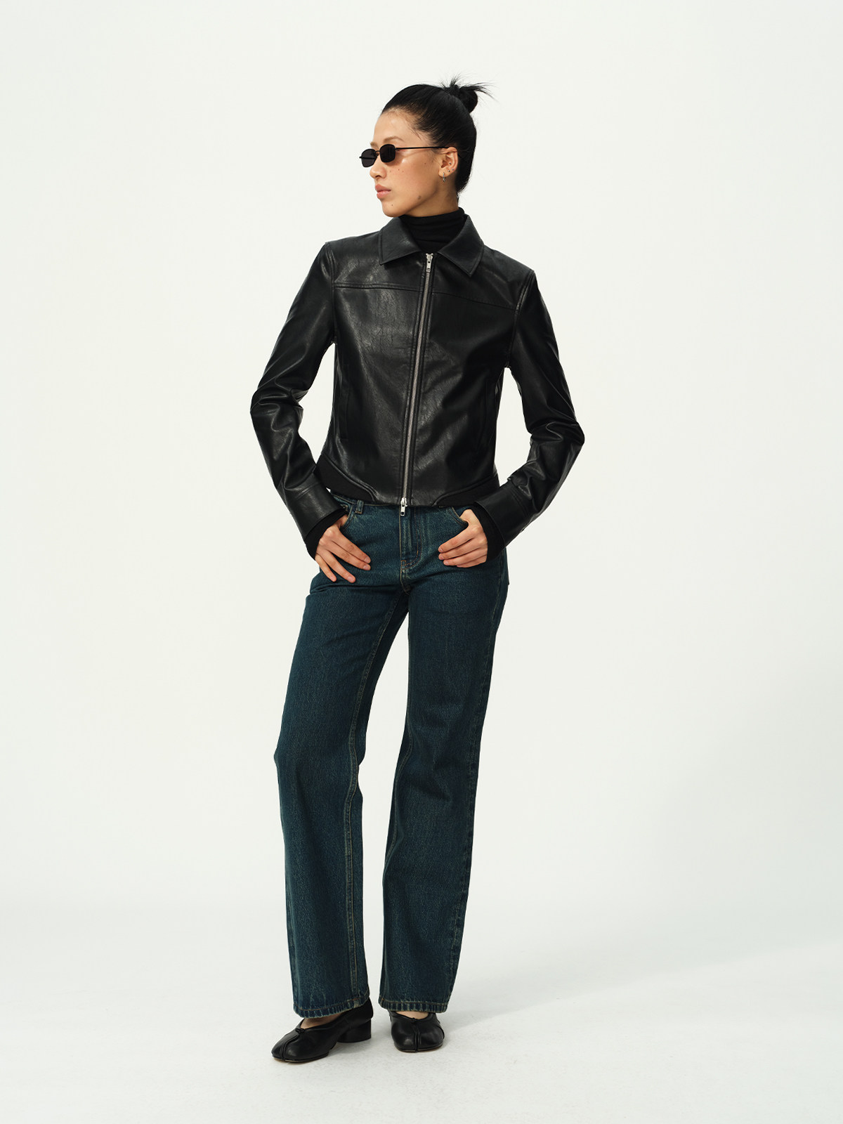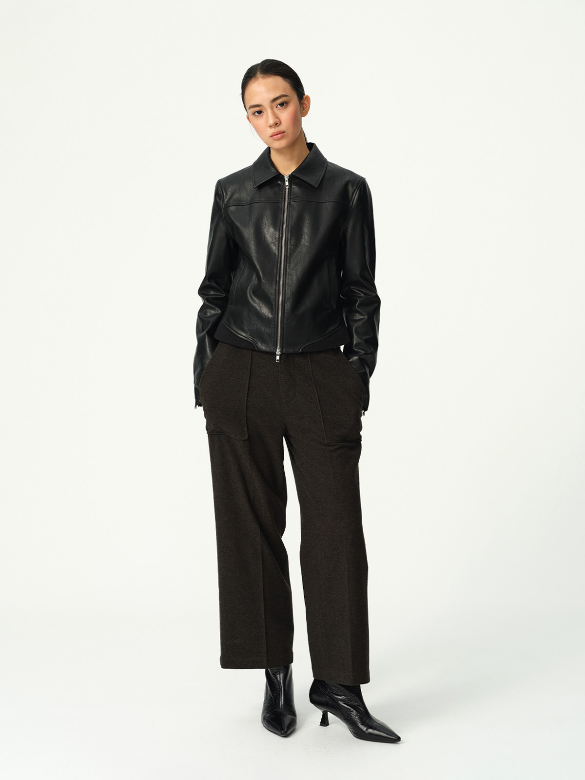 Evistub Retro Motorcycle Eco-Leather Fitted Shoulder-Zip H-Shaped Lapel Leather Jacket for Women Spring