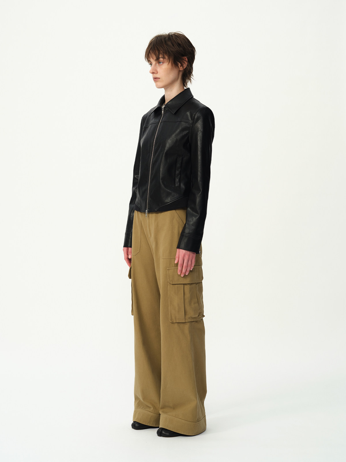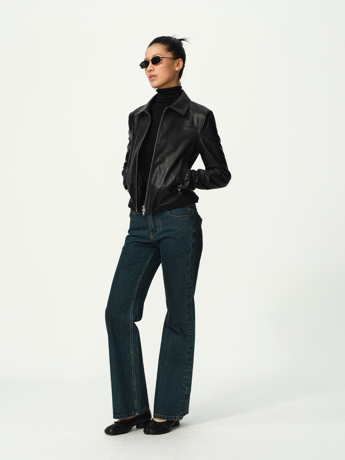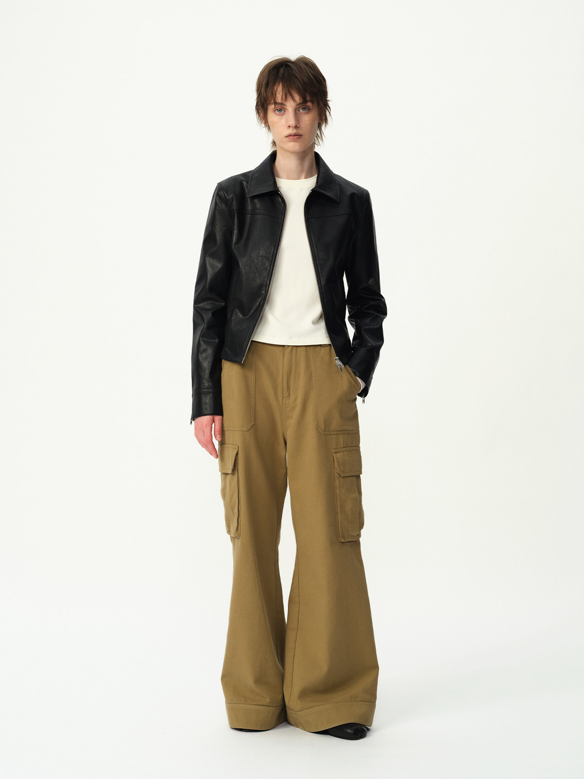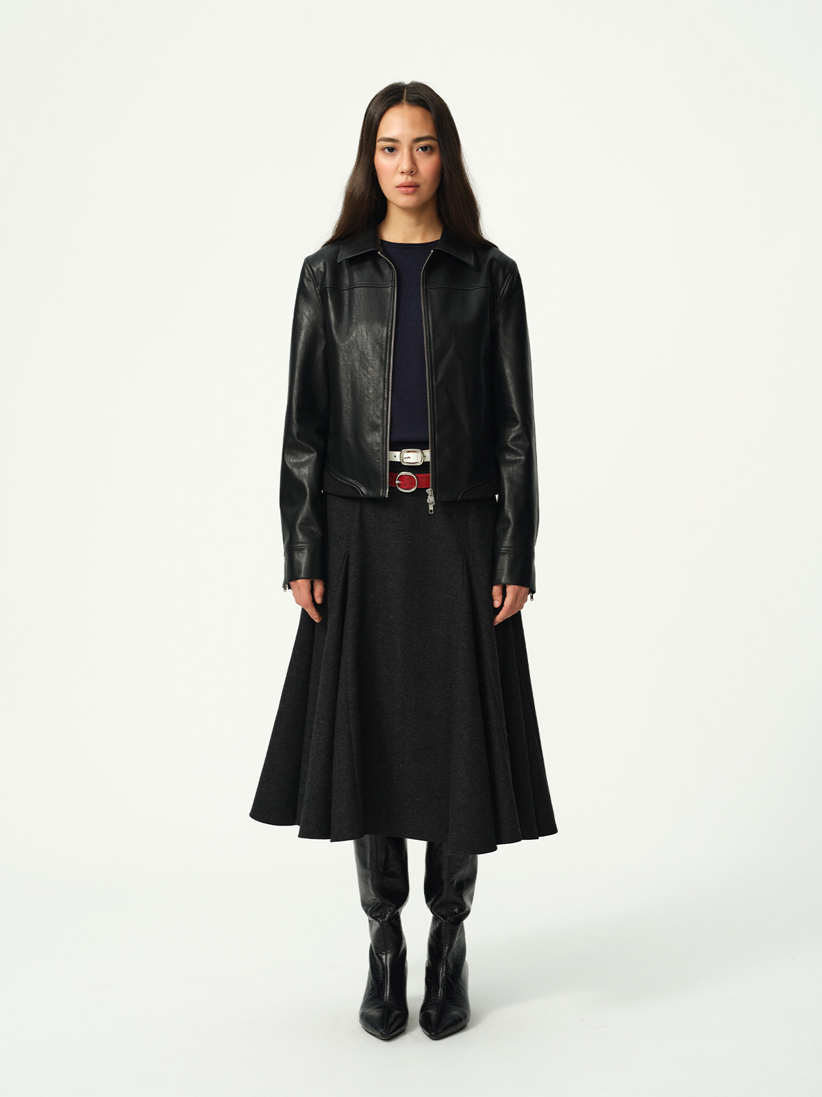 Evistub Retro Motorcycle Eco-Leather Fitted Shoulder-Zip H-Shaped Lapel Leather Jacket for Women Spring