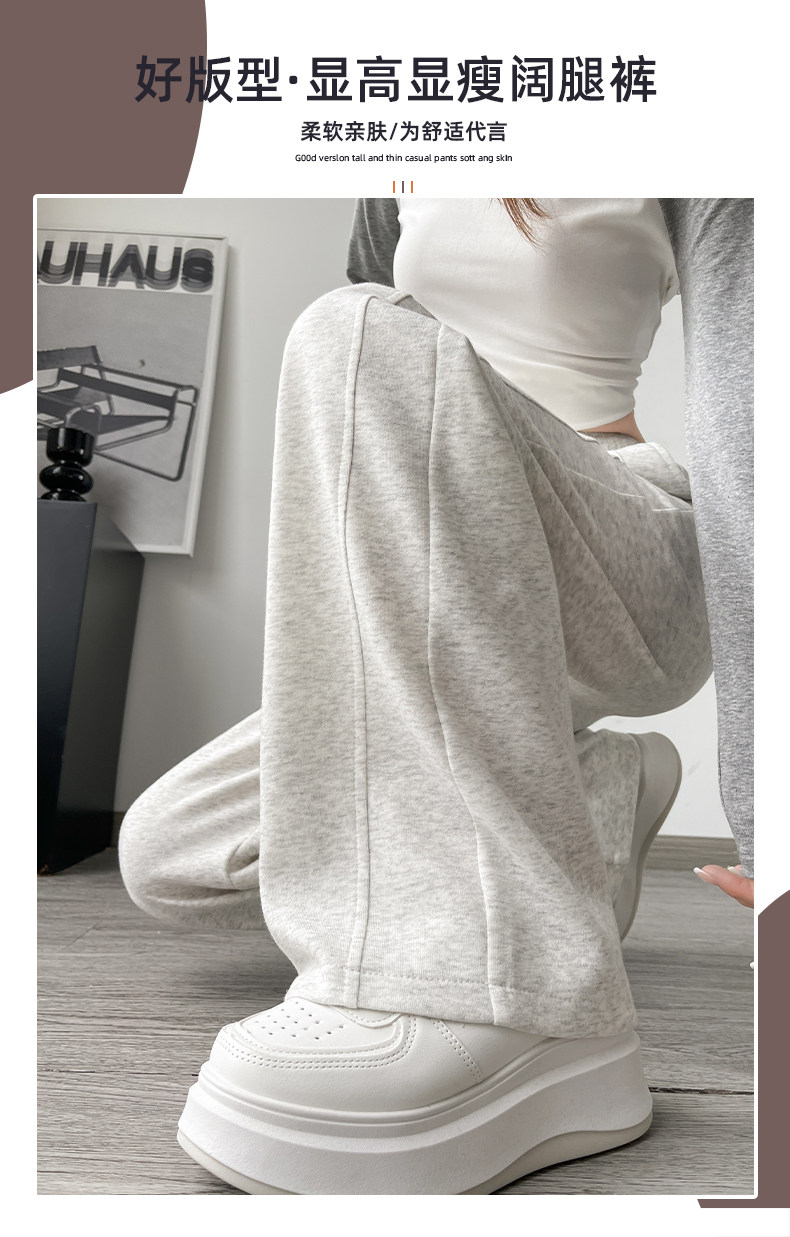 Lulu Style Sweatpants for Women, New Autumn and Winter High-Waisted, Drapey, Petite Casual Sports Pants, Pure Cotton, Slim Wide-Leg Pants